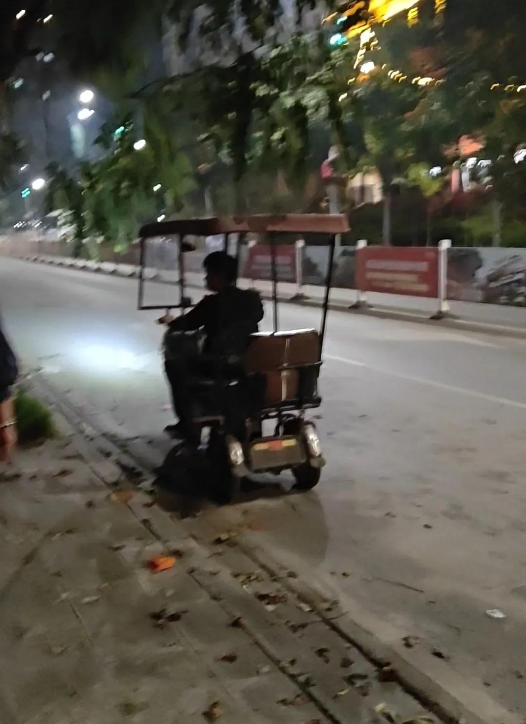 这五年在西双版纳晚上喝完酒,就差不多凌晨一点了。 从东北街走到我们旅居家园得45分钟,三更半夜路上还有从神石山下来的流浪狗,所以这几年喝完酒都是大侄子小峰驾驶他的年迈的电动小三轮,送我们回家。 电三轮,是10年前沈阳一个阿姨临走送给大侄子小峰的,当年是新车。 阿姨年轻的时候是沈阳军区前进歌舞团舞蹈演员,先后参与演出过舞剧《蝶恋花》,舞蹈《三千里江山》《董存瑞》《金山战鼓》等舞剧。 我是没有见过,据大侄子小峰说,阿姨的漂亮程度,影视剧难找。 阿姨在西双版纳旅居三个月,都是大侄子小峰大侄女小双带她玩。临走把电三轮给小峰了,说,留个纪念吧!这以后我们见不到了。 阿姨乳腺癌晚期。 所以,这台电三轮,多旧也不能扔,昨天晚上往回来,一路大下坡,电三轮自带小喇叭不厌其烦地喊,你现在已超速,请减速慢行! 我跟他阿姨坐后面,心里直突突,我说,小峰啊,这么快,轮子不能掉吧?掉了可就惨了,我就得去找电三轮主人你阿姨去了啊!