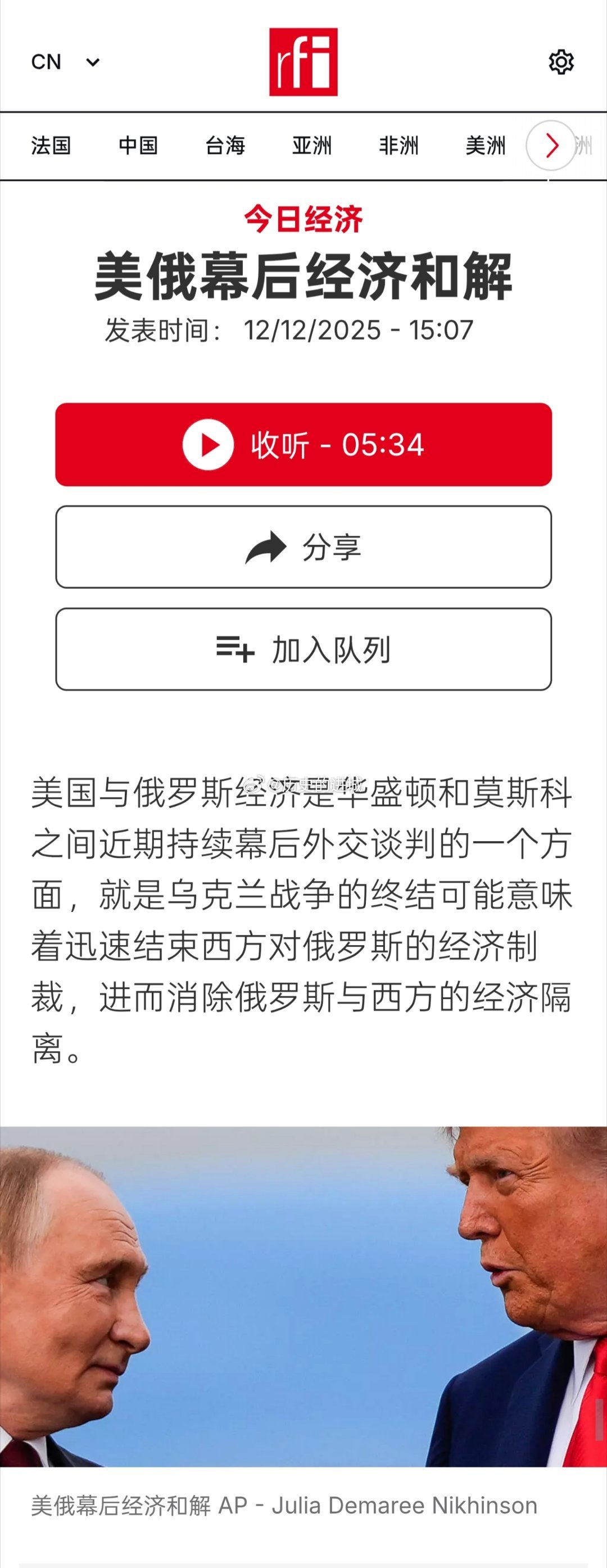 美国与俄罗斯经济是华盛顿和莫斯科之间近期持续幕后外交谈判的一个方面,就是乌克兰战争的终结可能意味着迅速结束西方对俄罗斯的经济制裁,进而消除俄罗斯与西方的经济隔离。就这样欧洲还在想冻结俄罗斯资产。