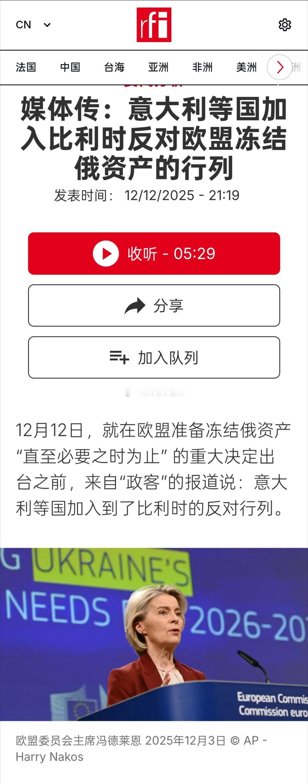 12月12日,就在欧盟准备冻结俄资产“直至必要之时为止”的重大决定出台之前,来
