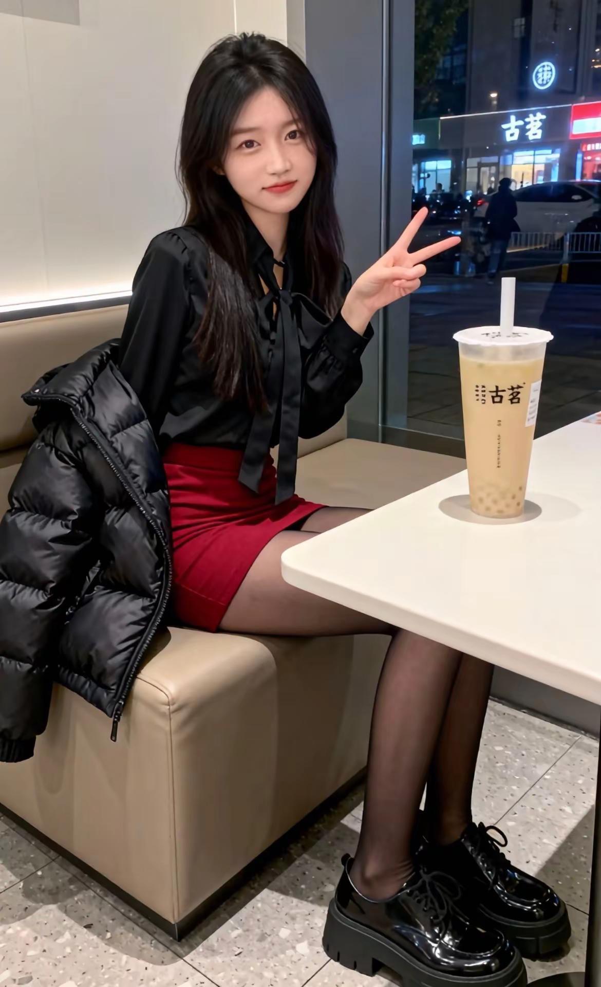 喝古茗的姿势,我最拽?穿搭 穿搭时尚 御姐 腿精本精