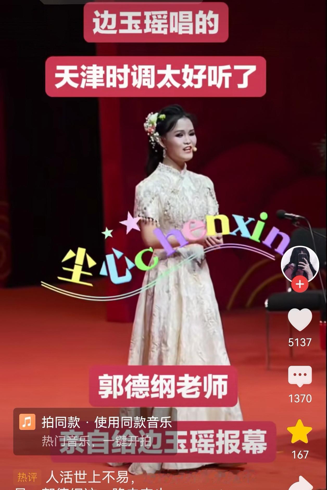 杨老五收徒弟,蛇精脸,大长腿,摸头,贴手,不亦乐乎; 老郭捧新人,边玉瑶,盲人姑娘,唱时调,有板有眼,功德无量。 老话说的好,人比人得死,货比货得扔。杨老五、老郭谁好谁歹,一目了然。