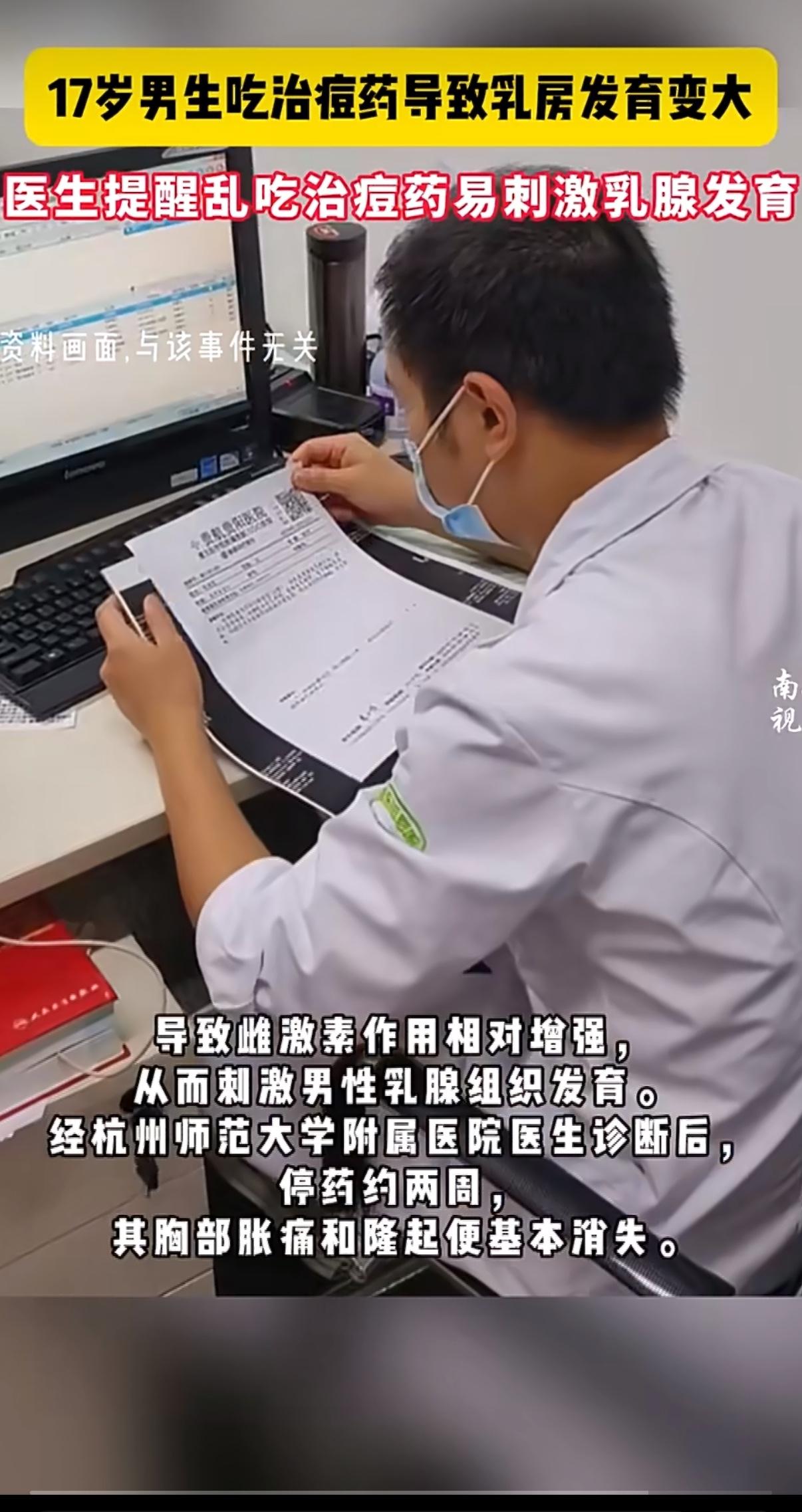 17岁男生为了祛痘瞎吃药,最后吃出乳房胀痛,这事儿真的让人又心疼又无奈。杭州这位