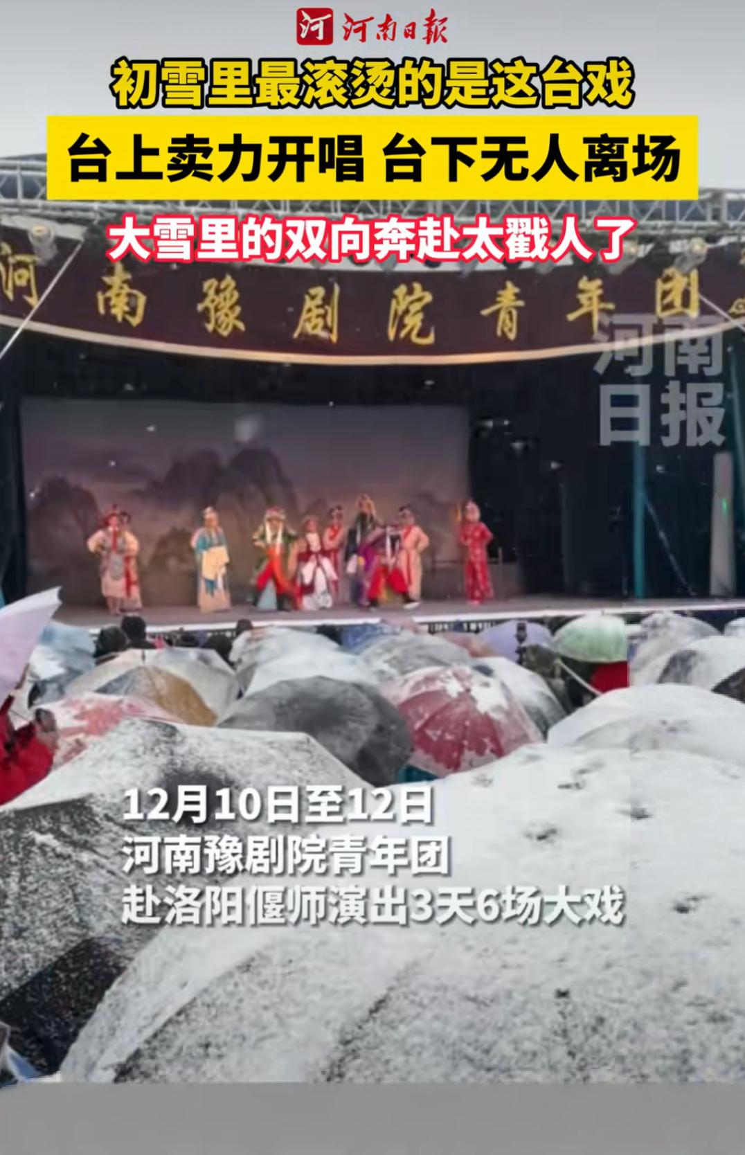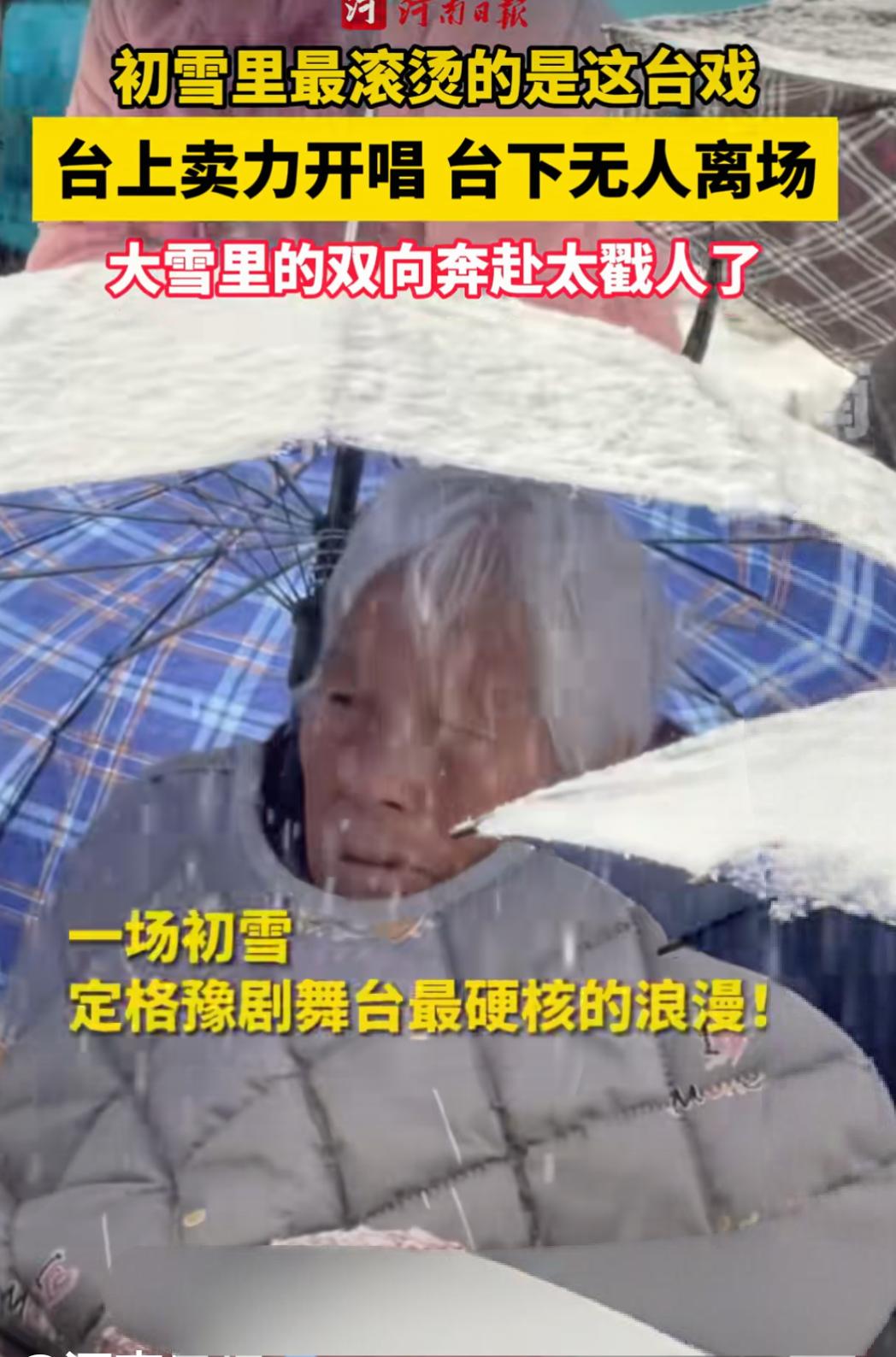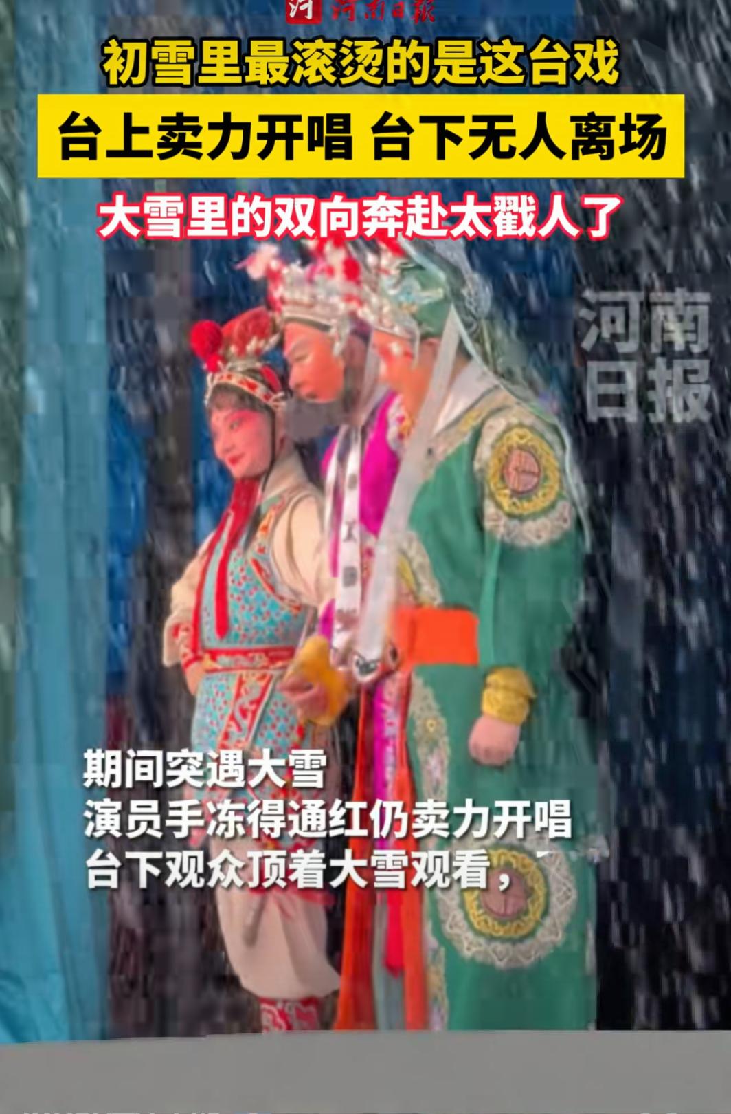 观众冒雪看戏不离场太戳人了 初雪里最滚烫的是这台戏 台上卖力开唱台下无人离场