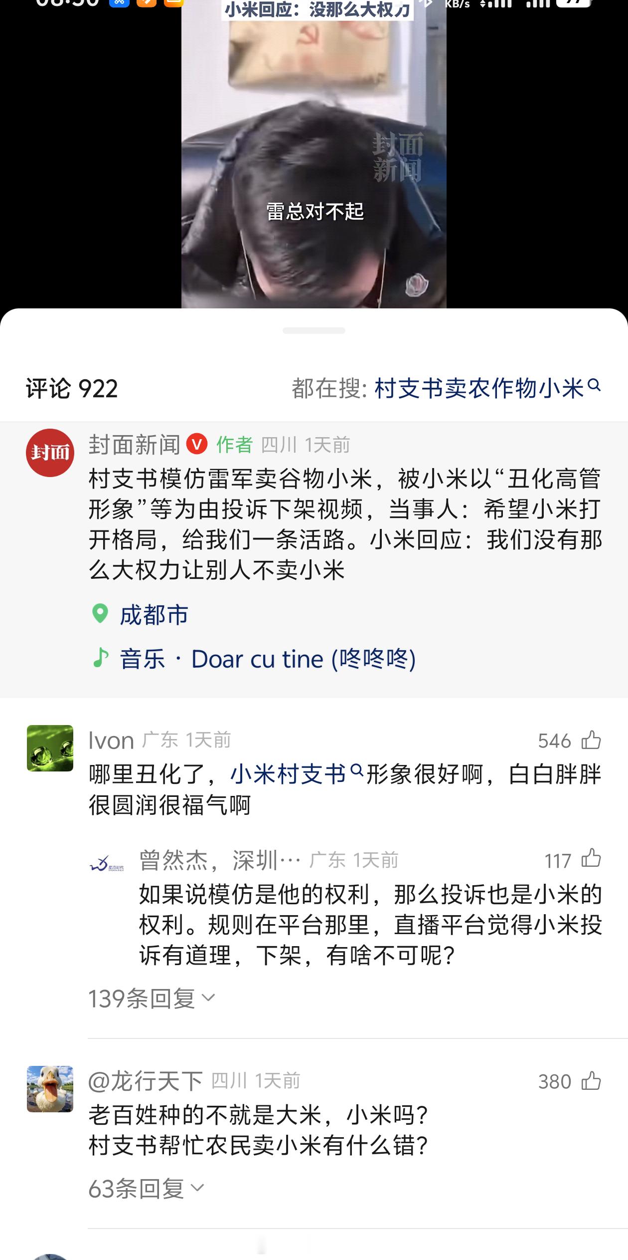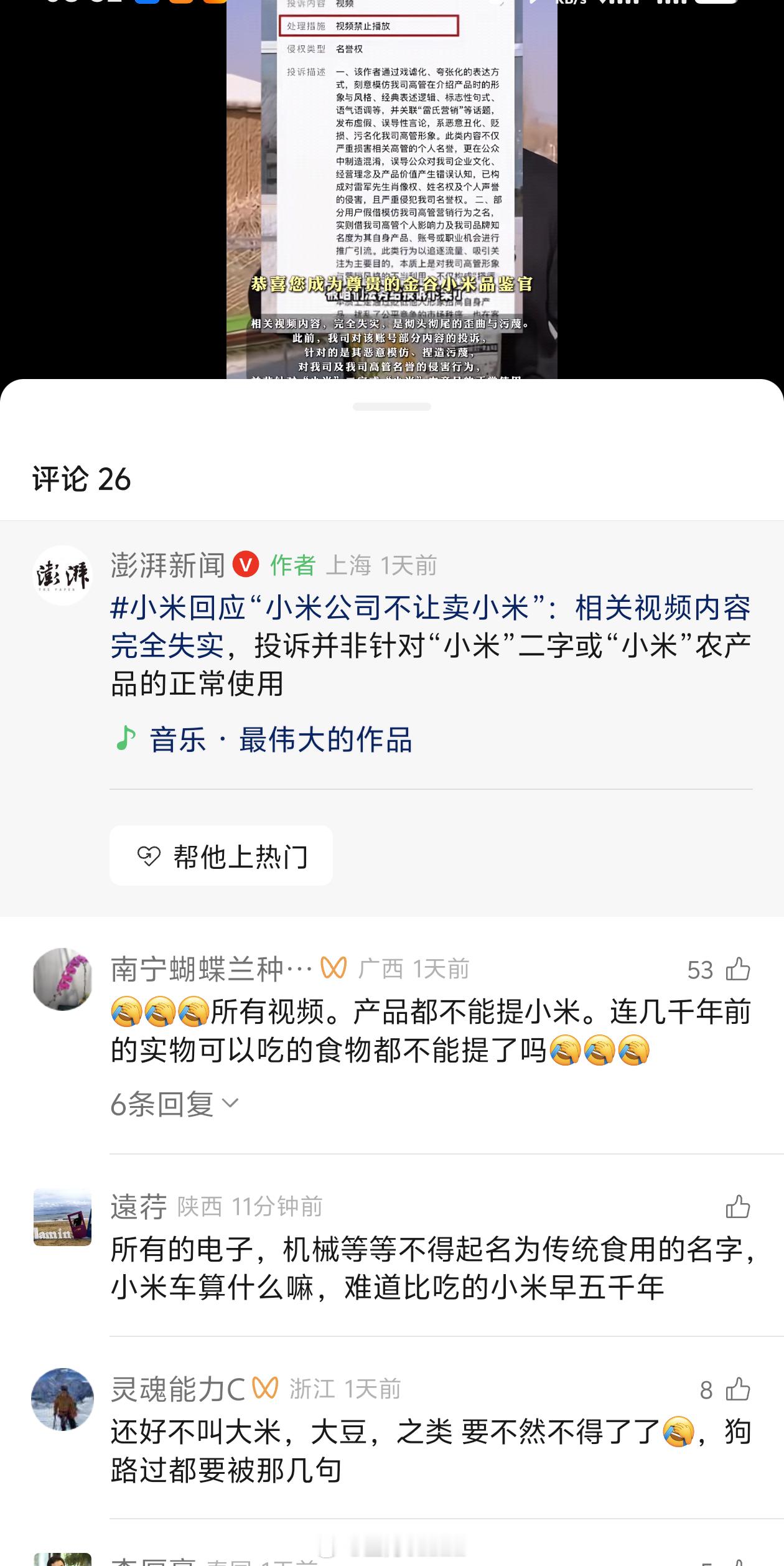 卖小米被投诉真侵权还是太敏感 昨天早上说过这次不能用对抗思维,因为那套是对方抹黑我们雷总黑品牌的逻辑,对完全破圈的公共话题来说根本没用——老百姓的生计和小米品牌的美誉度、雷总的名誉权孰轻孰重?后面小米发言人依然用对方抹黑我们那套来发声明解释了;各大媒体也不带立场的发了这条相关的内容。观察了一晚上各条高赞内容的评论区,相关舆论相比声明发布之前没有任何反转。品牌不应该和普通人做敌人,TOP500级别的公司更应该重视社会责任。但愿那个声明不是唯一的行动吧…