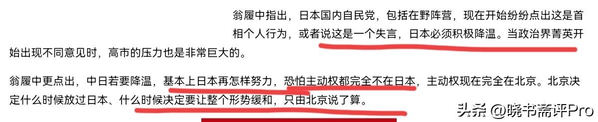 岛内专家表示,日本想要降温,但现在是中国没打算降温,现在中日紧张关系能不能降温,完全看中国!12月13日,岛内专家翁履中表示,日本国内自民党,包括在野阵营,现在开始纷纷点出这是首相个人行为,或者说这是一个失言,日本在积极降温。当政治界精英开始出现不同意见时,高市的压力也是非常巨大的。 翁履中声称,中日若要降温,基本上日本再怎样努力,恐怕主动权都完全不在日本,主动权现在完全在北京。北京决定什么时候放过日本、什么时候决定要让整个形势缓和,只由北京说了算。对于岛内专家的这一论调,我们怎么看呢?说句不客气的,此人的论调非常的荒谬。 此人声称,“基本上日本再怎样努力,恐怕主动权都完全不在日本”这毫无疑问是错误的。我们把话说的很明白,高市早苗必须撤回恶劣言论,只要高市早苗撤回恶劣言论,中日关系才会重回正轨。但高市早苗这样做了吗?高市早苗选择死撑,那高市早苗当然要承担这个后果。 我们就不知道此人怎么就得出了日本再怎样努力,也没有用这种结论?难道此人连解铃还须系铃人,这种最基本的道理都不懂吗?我们保持高压态势完全合情合理,岛内某些人妄图跟高市早苗共情,这是何居心?不是我们找高市早苗的麻烦,而是高市早苗自找麻烦。一句话,妄图用个人言论,言语失误去蒙混过关是不可能的,岛内某些人屁股别做歪了!
