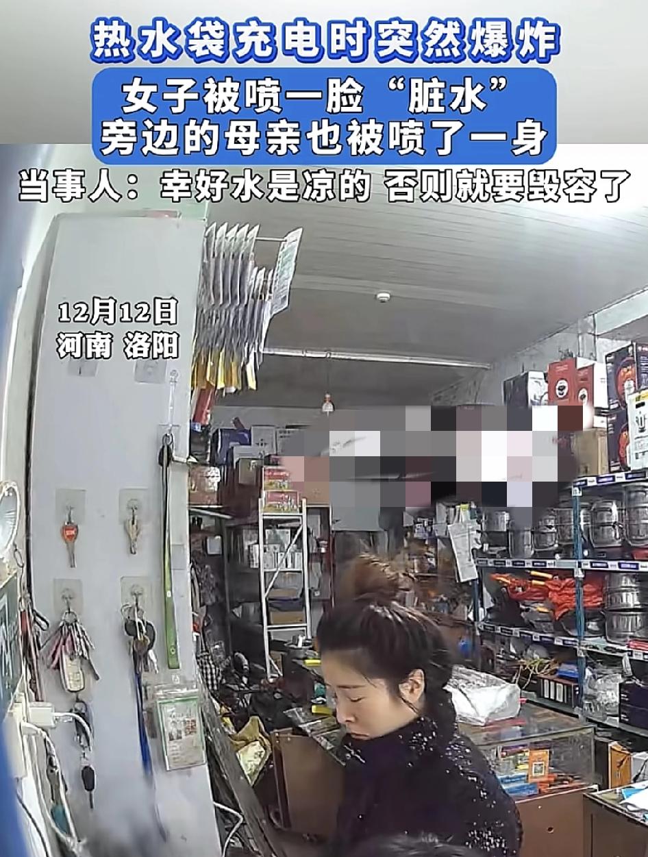 河南洛阳一女子在给热水袋充电时,刚插上电没几分钟就突然爆炸,热水袋里的水把女子溅了一身,旁边的母亲也被水溅到,两人当时都吓懵了,幸亏水还没有烧热,如果里面是开水的话,那人都会被整毁容。这样的情况,希望生产厂家能给出一个说法,到底是产品质量的问题,还是操作不当。