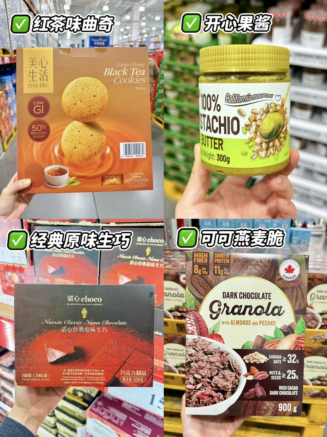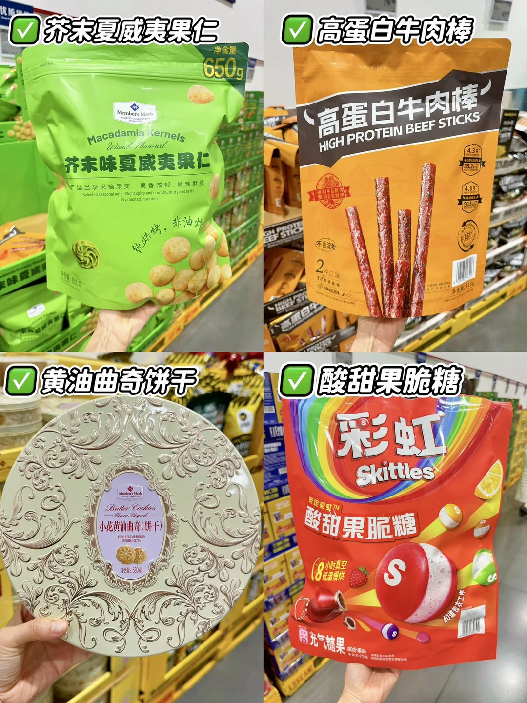 ✔️零食区:红茶曲奇、开心果酱、经典原味生巧、可可燕麦脆、芥末夏威夷果仁、高蛋白牛肉棒、黄油曲奇饼干、酸甜果脆糖