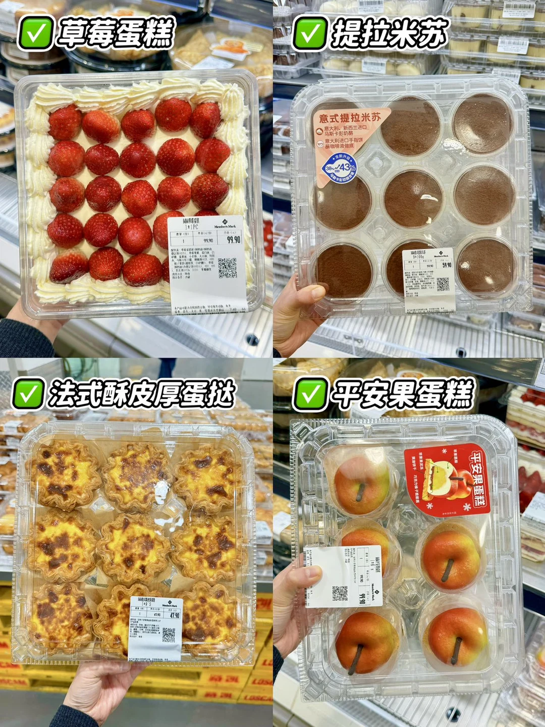 ✔️烘焙区:草莓蛋糕、提拉米苏、法式酥皮厚蛋挞、平安果蛋糕