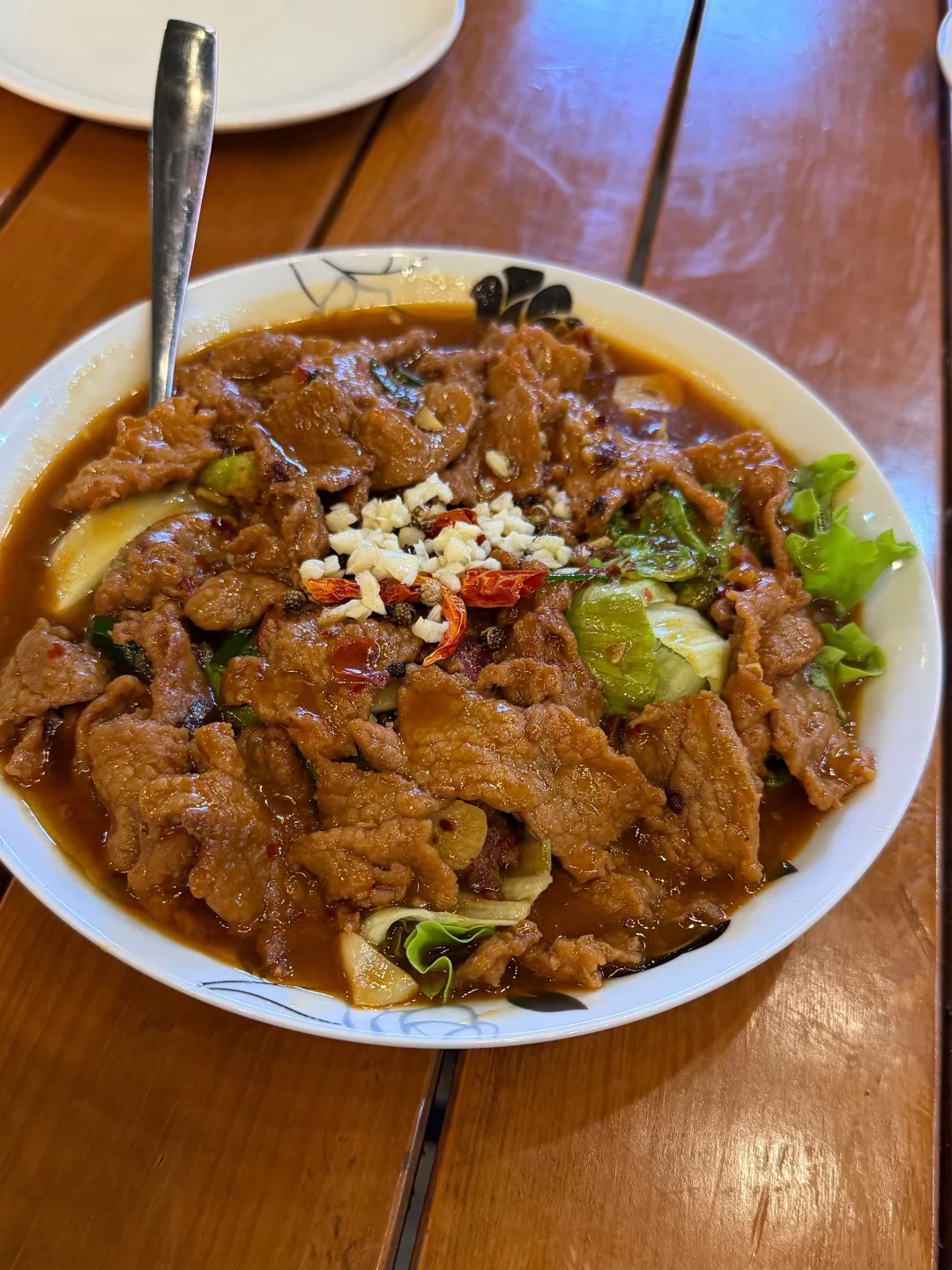 在格鲁吉亚🇬🇪待了几天,你就会发现,一碗炒青菜🥬是多么的美味,他们家的水煮牛肉味道真的不错,肉量也很大,大肠也是特别的上头,没有啥异味,绝对推荐!