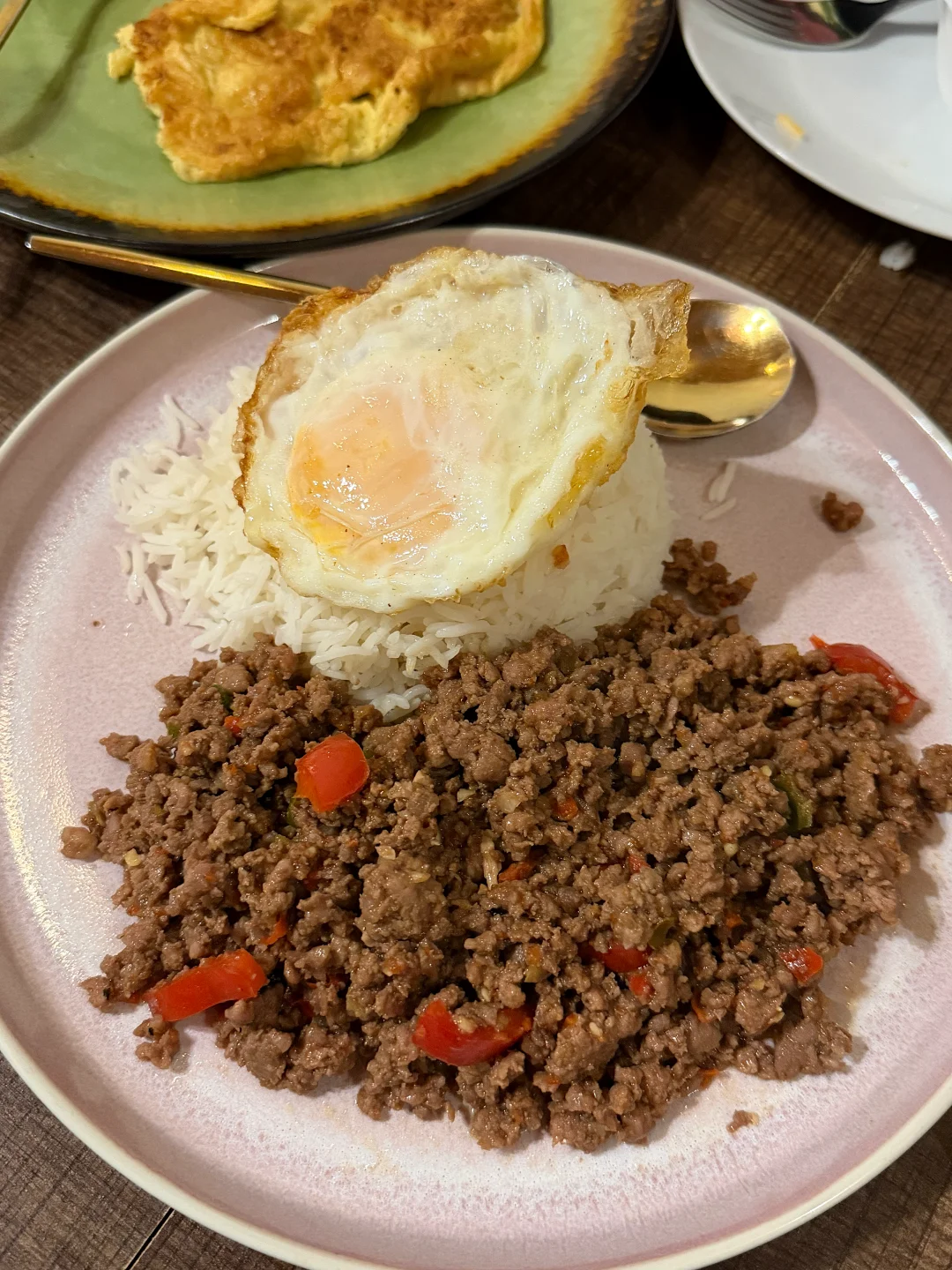 一个绿房子的泰国菜,吃腻了本地菜,一定要去吃下这家泰国菜,直接救赎你的胃,冬阴功汤+打抛饭,每一道菜都很绝,闪闪发光的,人均会比当地菜高一点,但是绝对上头,炸虾也不错的