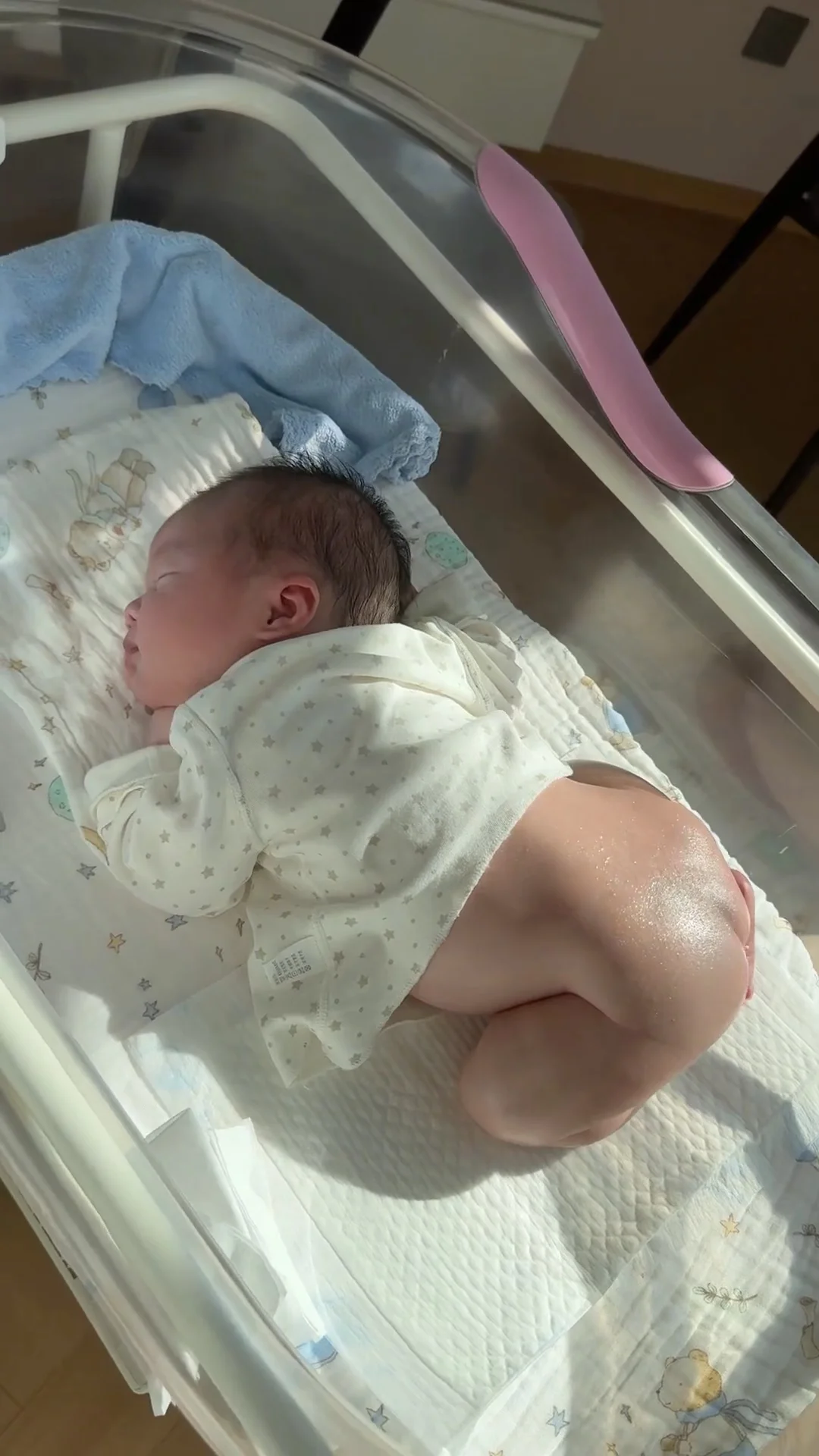 31.宝宝深睡眠之后会进入一段浅睡眠,浅睡眠阶段宝宝可能会突然大哭、惊跳、微笑、睁眼、翻白眼 等不是真的醒了,千万不要打断和唤醒宝宝哦