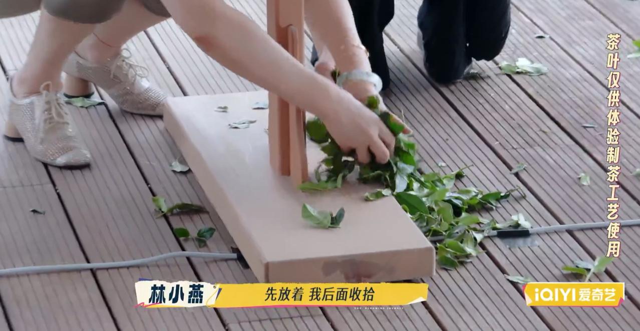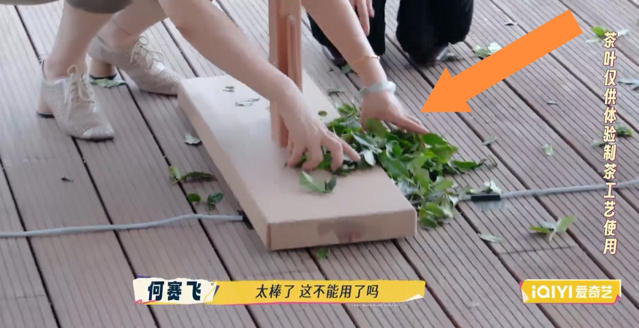 相比刘嘉玲, 就这样一个小细节, 何赛飞的真实人品就“暴露”了。 刘嘉玲在泉州体验茶叶的制作过程, 她体验摇青的过程中, 由于一开始没有掌握技巧, 把很多茶叶撒到地上, 她体验后就默默走开, 完全没有注意撒了一地的茶叶。 而何赛飞遇到相同的情况, 体验完摇青后, 看到一地的茶叶, 轻轻蹲下身子帮忙把茶叶捡起来 放进筐里。 就这样一个小动作, 可见何赛飞是很尊重他人的劳动成果的, 不会浪费采茶人的血汗的。 无论对方身边如何, 何赛飞都表示尊重, 珍惜东西, 不会随意浪费。 而刘嘉玲可能平时大手大脚惯了, 面对撒满地的茶叶也不在乎, 就算让她赔钱, 她应该也满不在乎吧。 一点茶叶钱她还是付得起的。 虽然这个茶叶是专门提供体验制茶过程的, 想必不会用很好的茶叶, 但是何赛飞的做法 让人感受到她平时应该是 一个崇尚节俭的人, 不浪费一点劳动成功果, 尊重劳动人民的血汗。 跟何赛飞这样接地气的人相处, 应该很舒服吧。