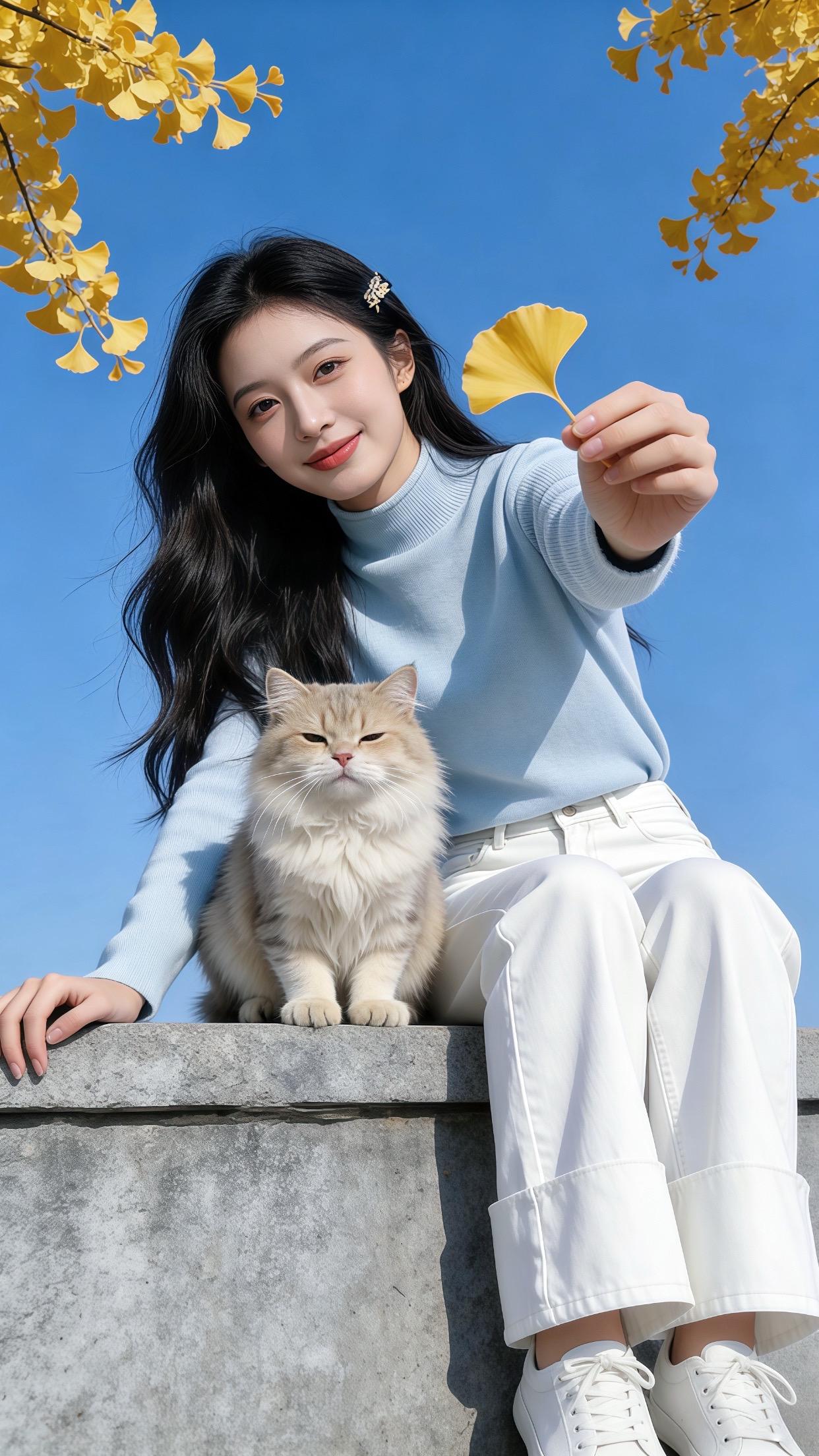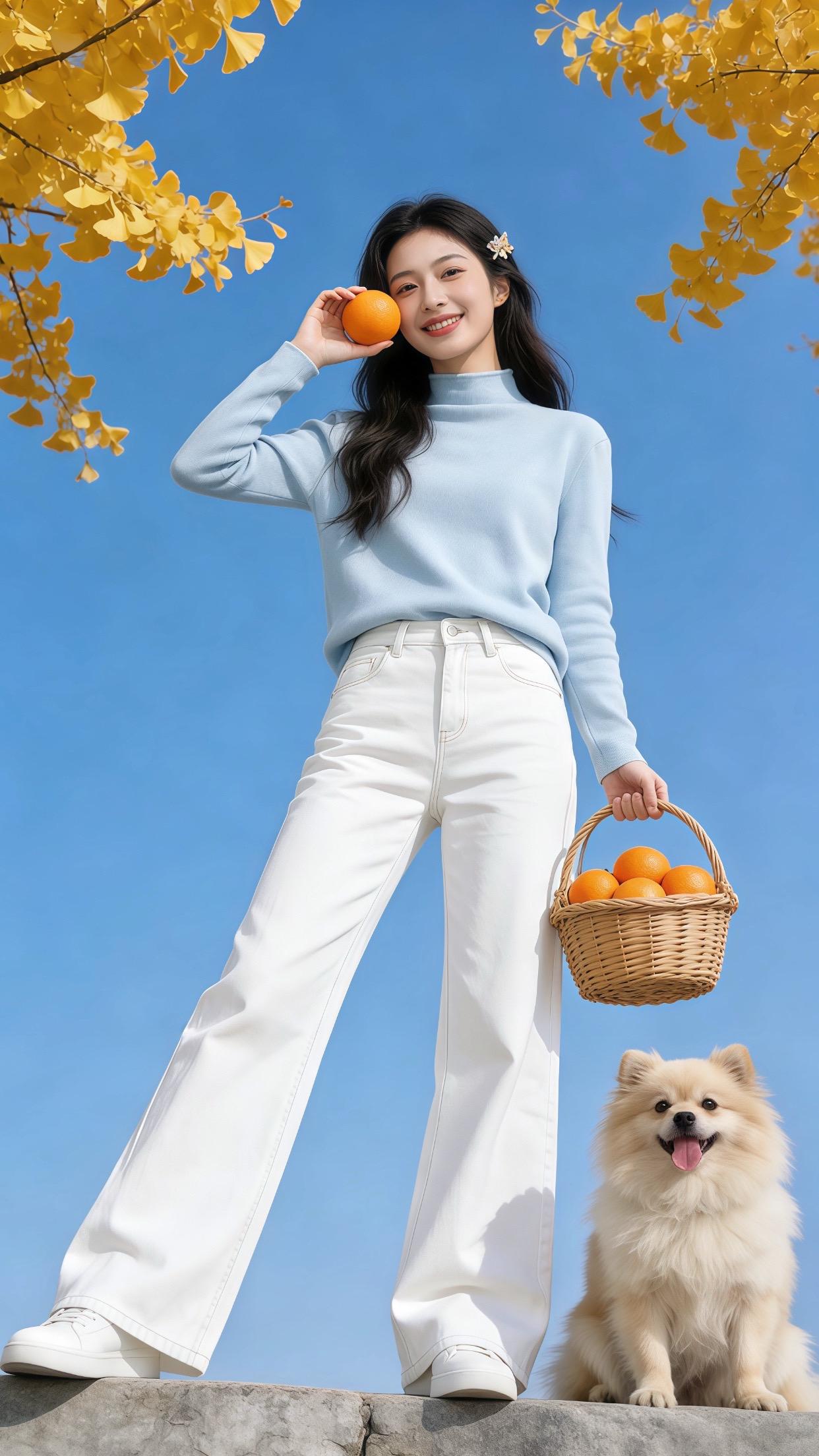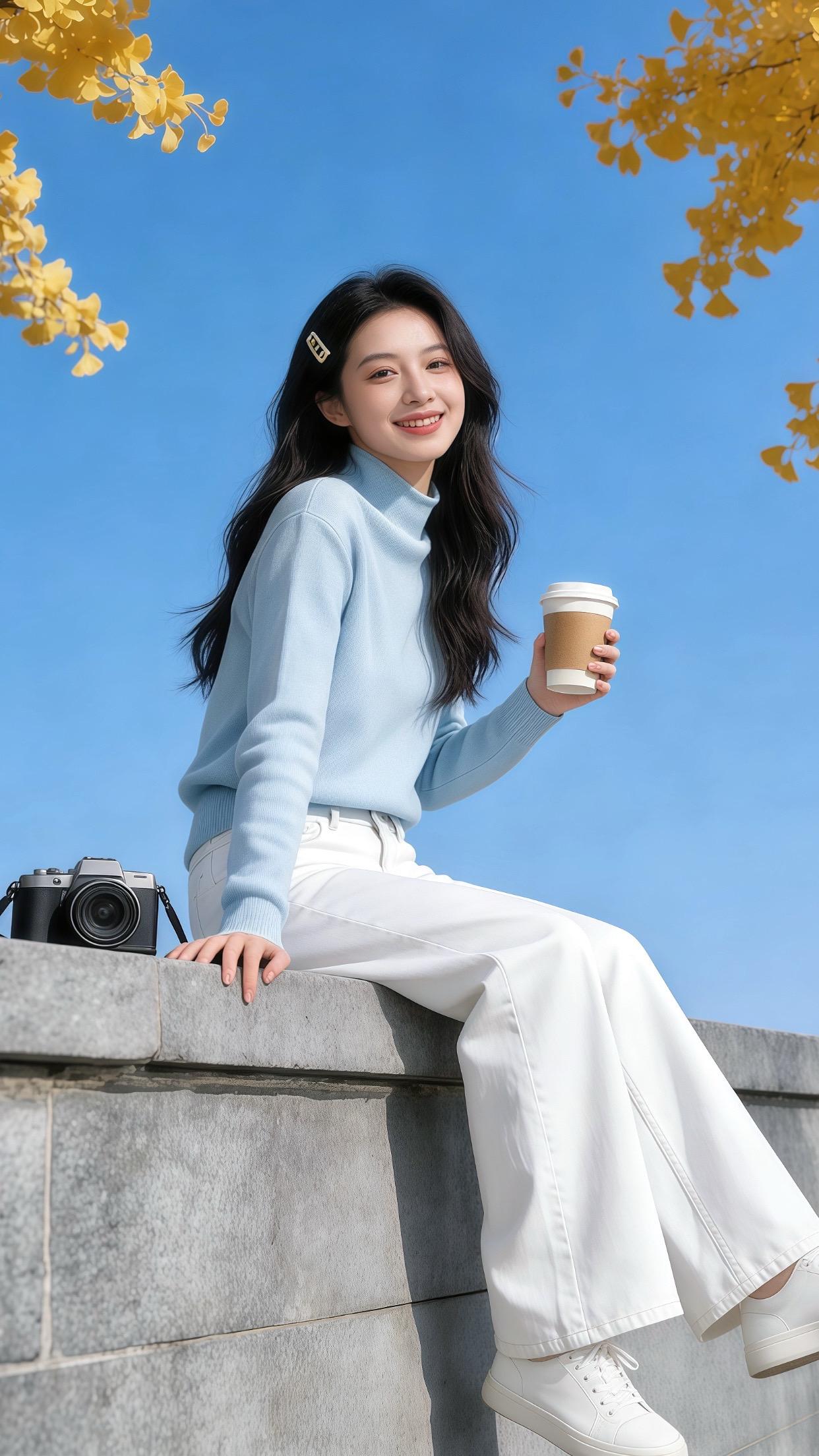 浅蓝高领打底衫➕奶白阔腿裤的搭配,清清爽爽的感觉像是把蓝天穿在身上,温柔感满满~外搭毛绒外套又甜又软糯,秋冬氛围感拉满啦!
