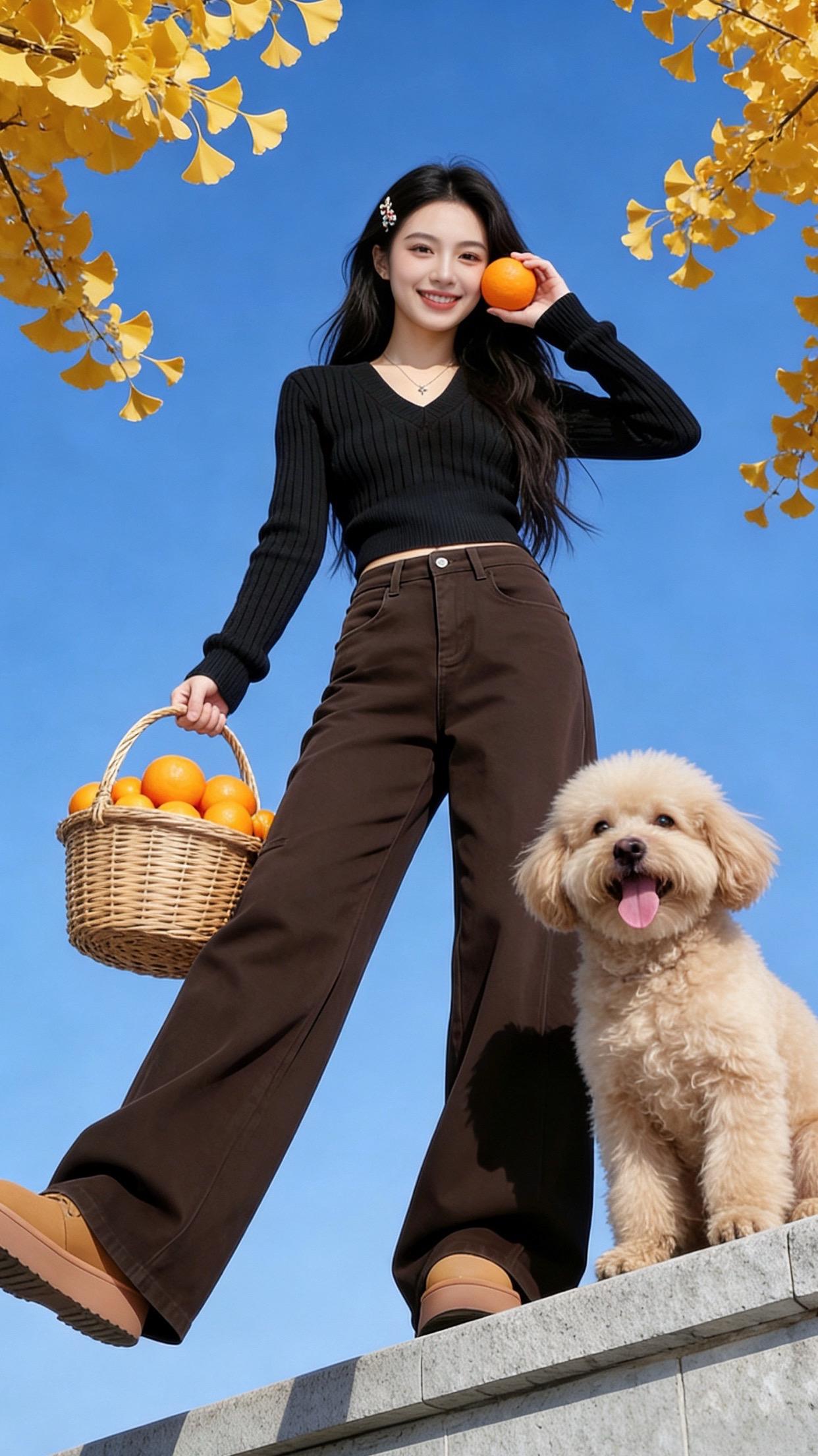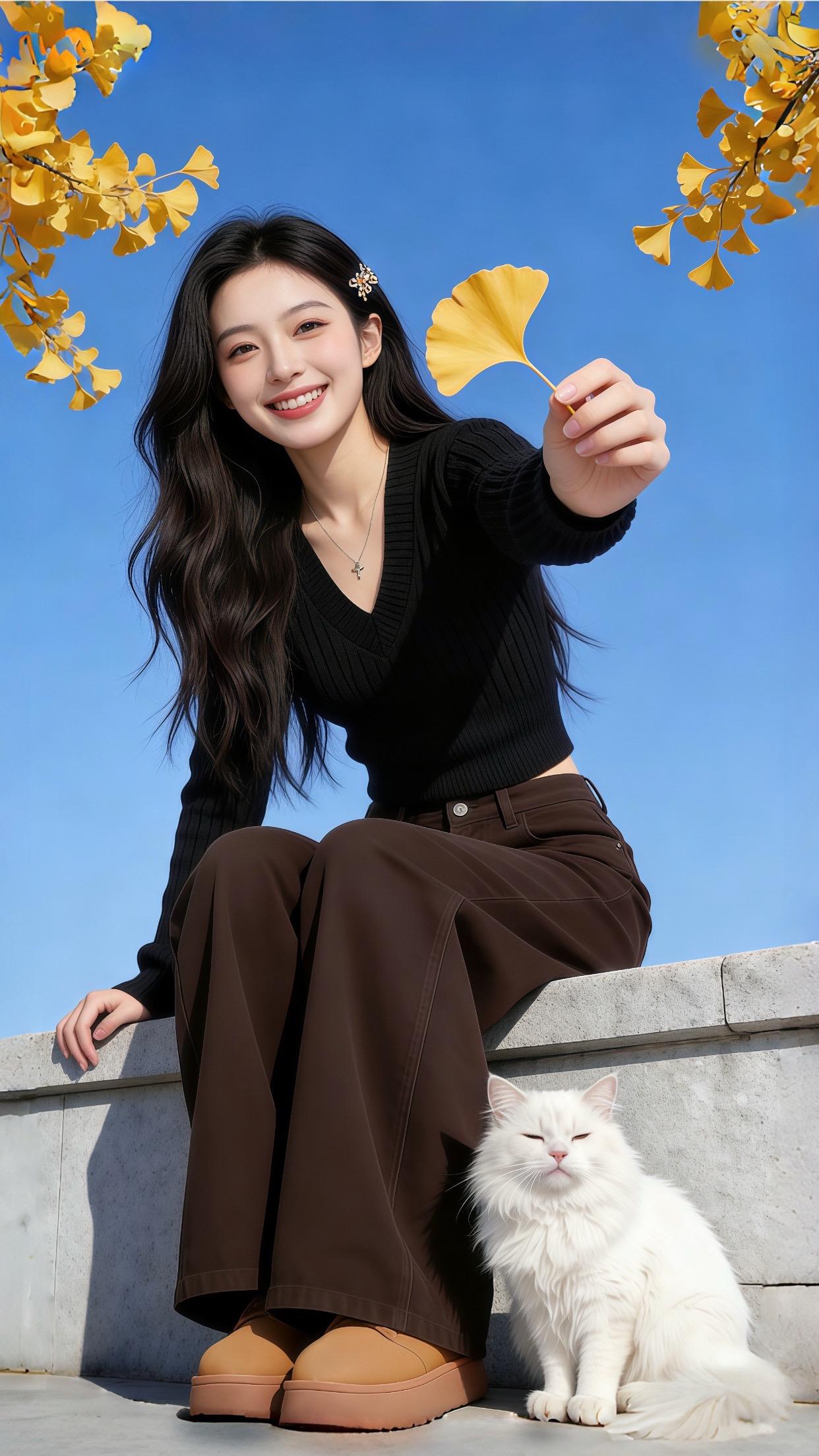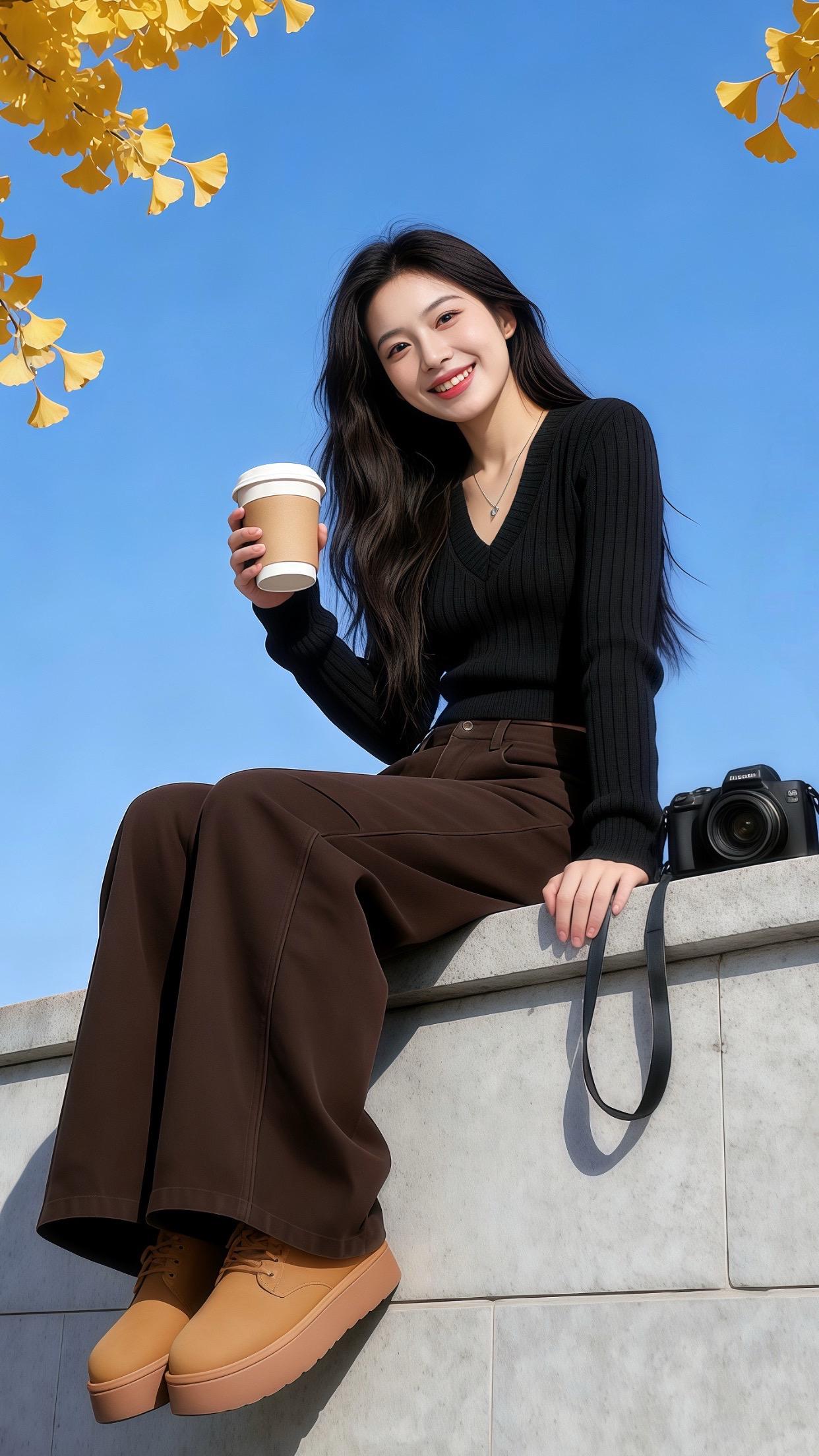 姐姐在溪边美得像幅自然画卷!黑色紧身衣勾勒出曼妙曲线,米色裤装衬得身姿挺拔,低丸