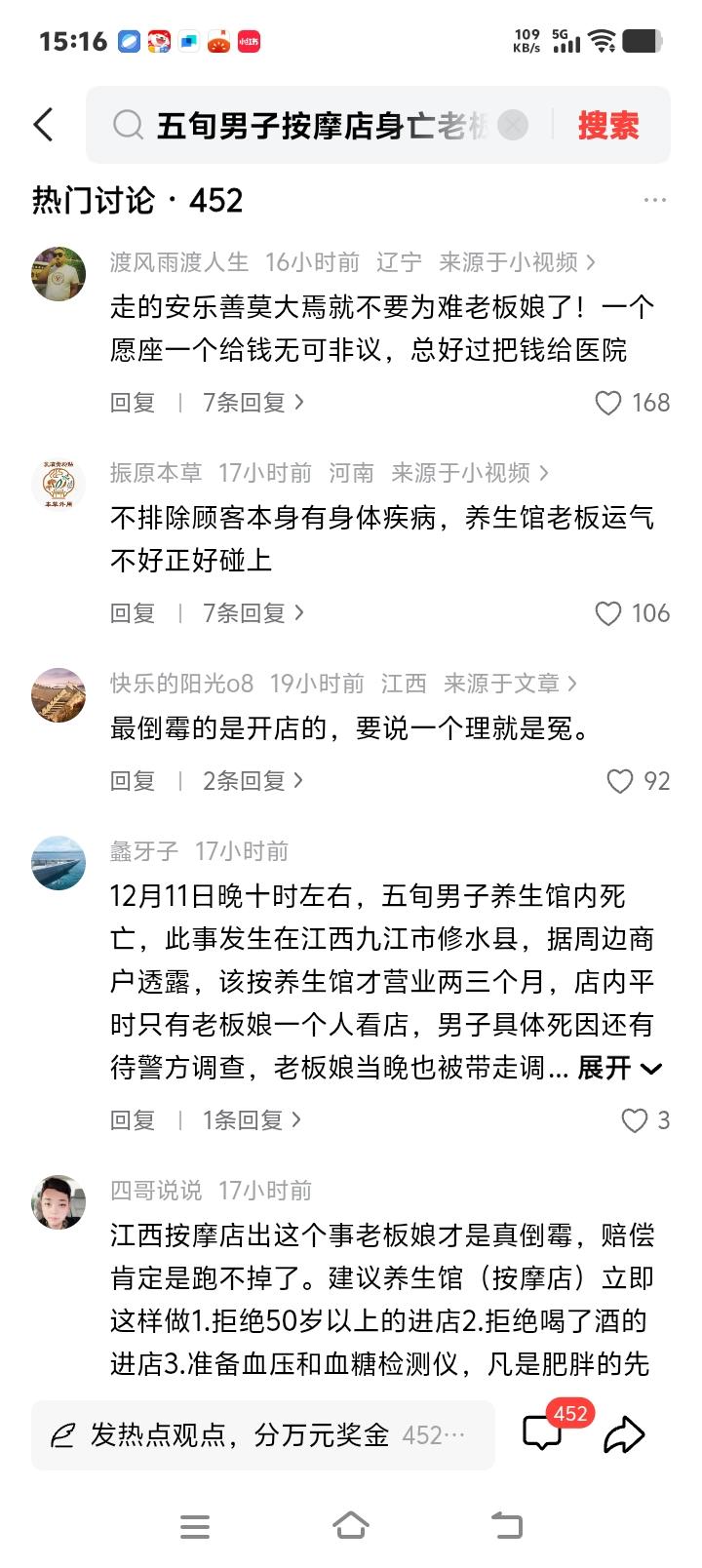 江西修水宁红大道“正规”养生馆惊魂夜:五旬男子按摩店内猝死,独守老板娘被带走,背后隐藏多少中年人的孤独与行业乱象? 夜幕下的修水宁红大道,霓虹灯依旧闪烁,一家招牌标着“正规”二字的养生馆却悄然拉上了卷闸门。12月11日晚,一名50多岁的男子在这里永远闭上了眼睛。周边商户低声议论:“店里平时只有老板娘一人,开业才两个月……”这起突如其来的死亡事件,像一块巨石投入平静的湖面,激起了无数涟漪。 据现场视频显示,这家养生馆门头鲜红,主打按摩、采耳、SPA等服务。谁能想到,这样一个看似寻常的放松场所,竟成了生命的终点站?附近商户透露,男子进店时并无异常,晚10点左右突发意外,老板娘随后被警方带走。店铺电话已成空号,唯有紧闭的大门诉说着当晚的诡谲。 警方迅速介入,事件原因仍在调查。是按摩手法不当,还是男子自身隐疾发作?网友的猜测如潮水般涌来:“洗头店按摩店喜欢拉脖子,咔嚓一下就要命”“50多岁的人,高血压冠心病哪经得起折腾?”一条条评论背后,折射出公众对养生行业安全性的深切担忧。 更令人唏嘘的是,这家开业仅两个月的私人店铺,全靠老板娘一人打理。如今,她成了事件漩涡的中心,而那位逝去的男子,或许只是无数渴望缓解疲惫的中年人缩影。他们拖着亚健康的身体,在生活压力下寻找片刻放松,却可能踏入未知的风险之中。 行业乱象再次被推上风口浪尖。所谓“正规”招牌是否真经得起推敲?按摩师资质是否齐全?养生馆是否成了监管盲区?有从业者无奈表示:“真正懂经络穴位的人少之又少,大多只是速成培训。”当养生变成“伤生”,谁该为生命负责? 中年人的孤独与压力,在这一事件中若隐若现。评论区有人叹息:“退休金花不完,去按摩店消遣消遣,竟成了永别。”或许,他只想在疲惫生活中寻一处喘息,却未料到意外先至。这种悲剧背后,不仅是行业漏洞,更是当代人精神与身体双重困境的写照。 警方调查结果尚未公布,我们不应妄下定论。但此事足以敲响警钟:养生行业亟待规范,从业者需专业培训,消费者更应警惕“野路子”服务。生命没有重来键,一次错误的按摩,一次侥幸的选择,都可能酿成无法挽回的结局。 修水的夜晚依旧灯火通明,但那条街上的红色招牌,或许再也不会亮起。我们等待真相,更期待此类悲剧不再重演。毕竟,养生本该是守护健康,而非埋葬生命的无声陷阱。 (来源:综合华商报大风新闻、西安晚报、潇湘晨报、网友评论等) 接摩安全 养生乱象