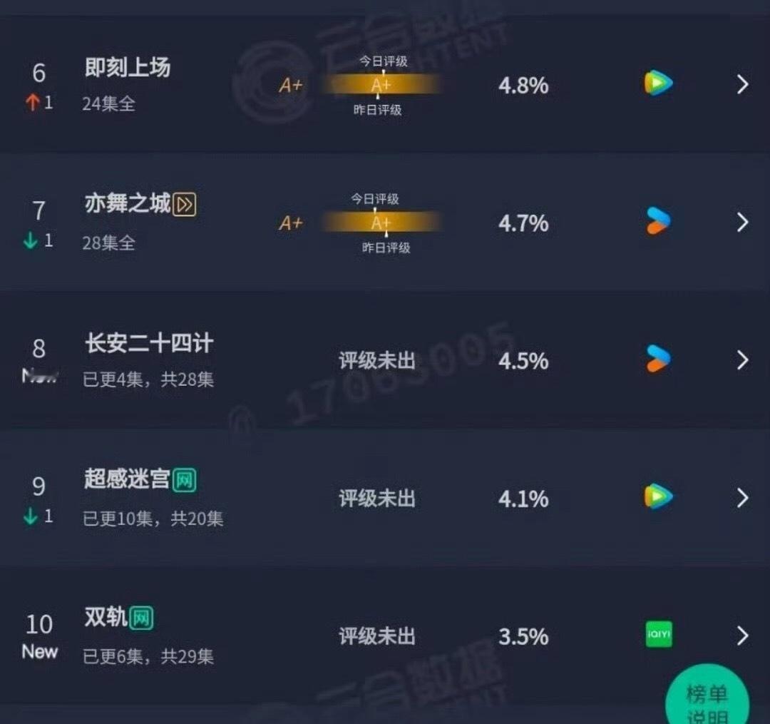 云合昨日云合来了成毅的长安二十四计4.5%,虞书欣的双轨3.5%,任嘉伦的风与潮6.9%,都扑了,扛剧果然是个伪命题,没有谁是绝对的扛剧