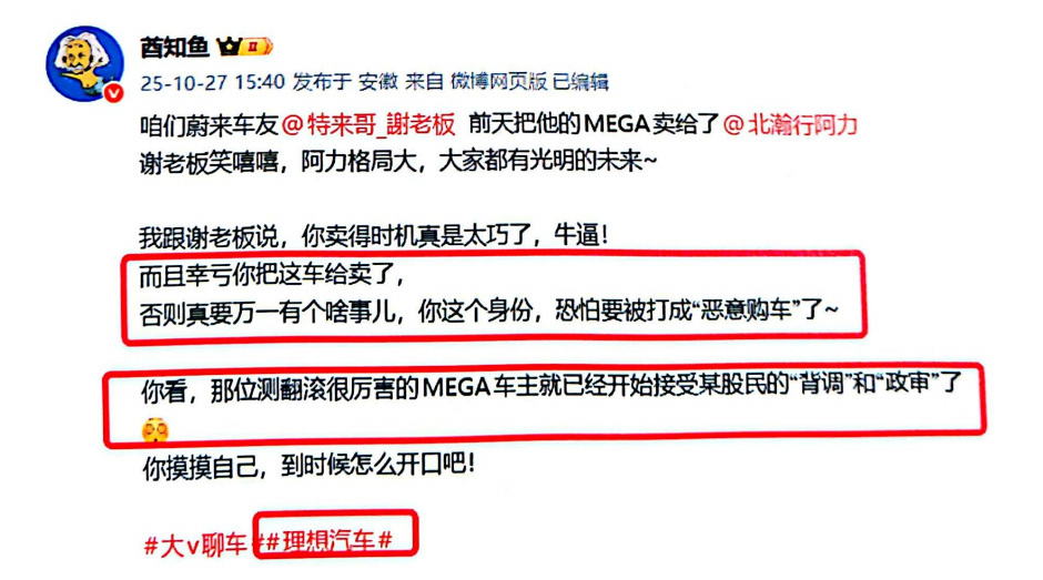 刚微博管理员发文,这几位被封(禁言90天)的原因来了。 新能源是国家支柱产业,大家要和谐,不要打架