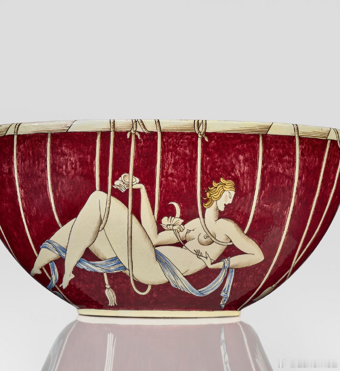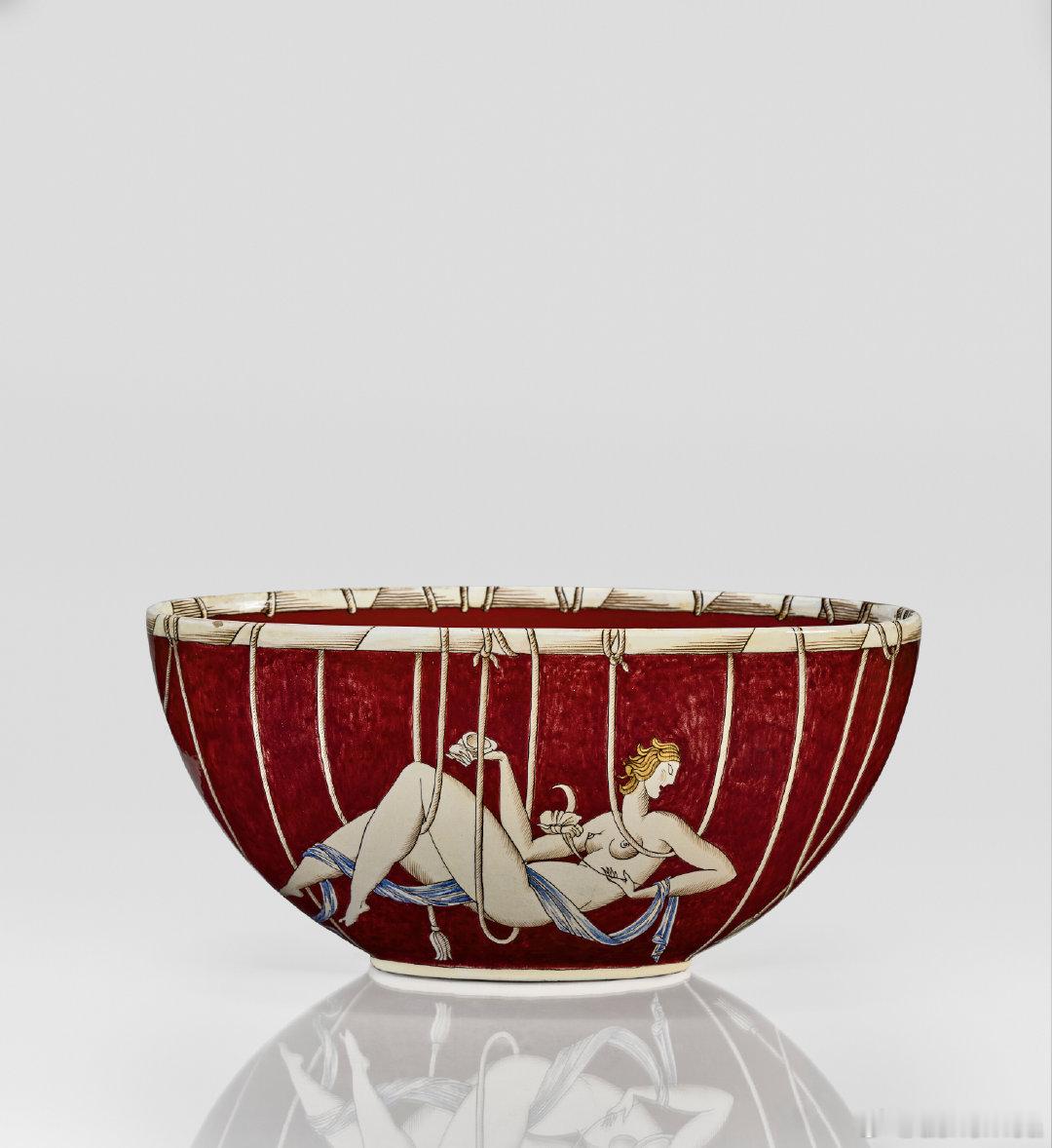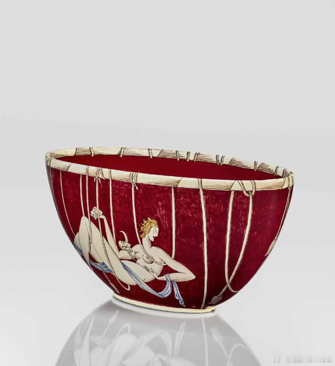 西洋历史文化鱼缸 意大利设计师、建筑师乔·庞蒂(Gio Ponti,1891-1979)1925年设计的“多纳泰拉”碗(锡釉陶器),尺寸为15 x 32 x 16.2厘米。