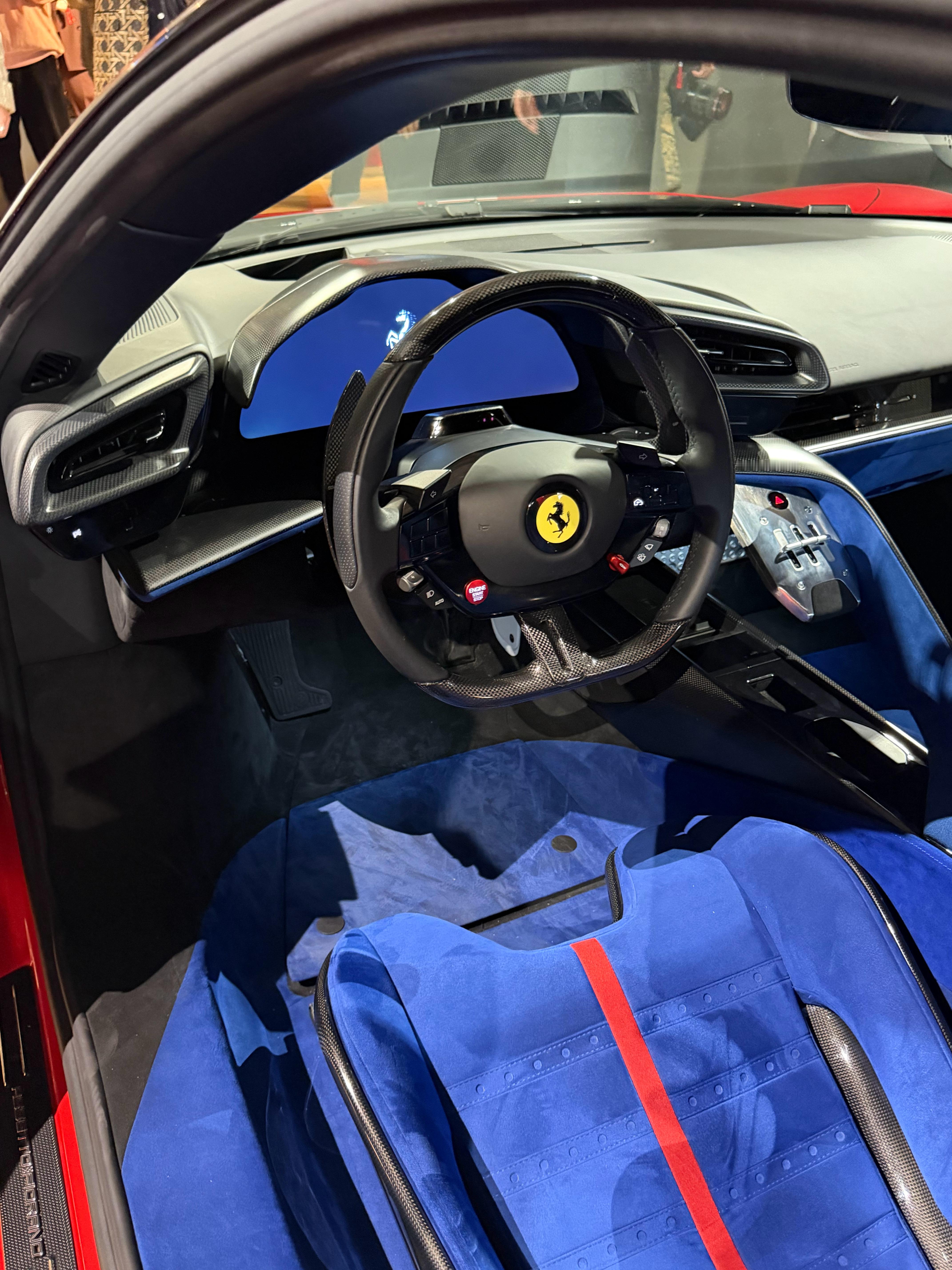 法拉利的下一代旗舰:849 Testarossa至此,法拉利所有车型完成更新换代。12c、849 、purosangue、F80这一代的设计语言可以说和以往法拉利的任何一个时期都不相同。十分激进。好看! 动力:V8双涡轮增压发动机+三台电动机,综合输出1050 cv,纯电续航25公里,0-100km/h<2.3秒,最高时速>330km/h。 设计:融合未来感与历史传承,双尾翼+主动式扰流板,250km/h时下压力达415公斤,冷却效率提升15%。 配置:搭载FIVE集成车辆预估系统、ABS Evo控制器,配多种驾驶辅助功能,提供Assetto Fiorano专属配置与个性化定制选项。 服务:七年免费保养及混合动力延保方案,易手车客户也可享受。是的,这台展车毫不意外的也有副驾屏…… (你懂吗)