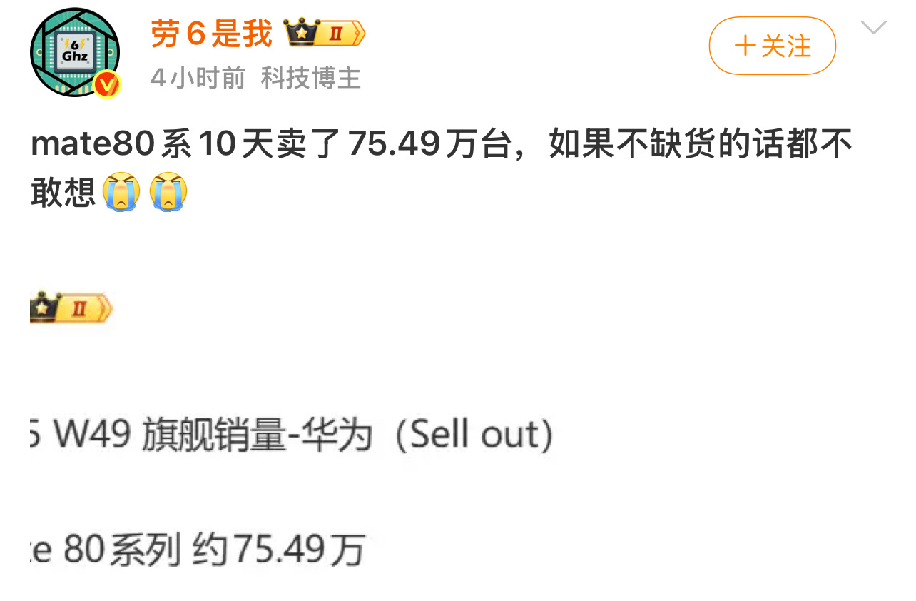 华为mate80系10天卖75万台,太猛了。我更喜欢Pro系列,相信有很多朋友跟我一样更喜欢mate80 Pro系列。可惜Pro系列一直缺货,不然我觉得标准版+Pro+Pro Max加起来10天能干到250万台