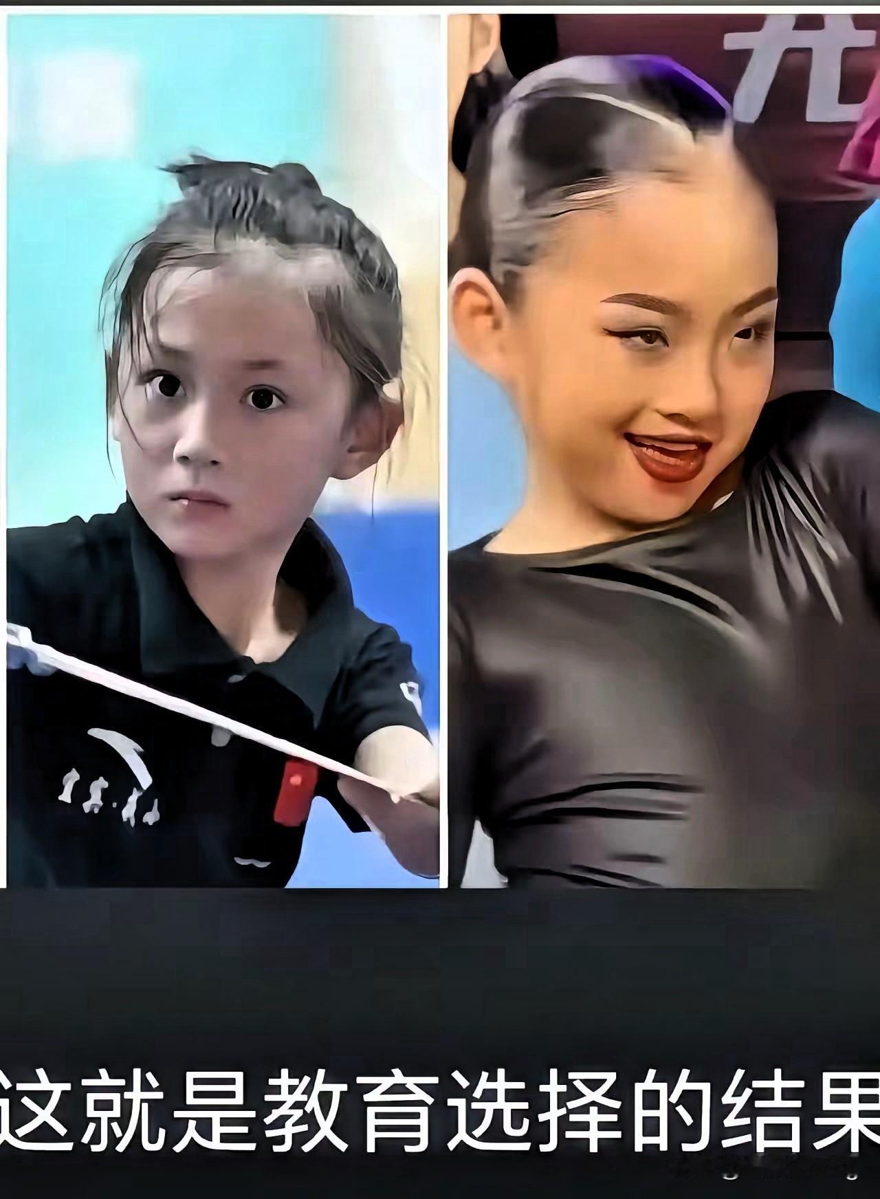 两张小女孩的对比图太戳人!练武术的眼神清澈又坚定,跳拉丁的却透着迷离,这哪儿是舞蹈差异,分明是教育内核的碰撞。 武术讲究“内外兼修”,练的是筋骨,磨的是心志,藏着中国人刚毅含蓄的底色,教孩子自立自强、守护自己。而拉丁舞虽有健身社交的好处,却被资本包装成“高端噱头”,过度强调外在展示,反而丢了教育该有的本真。 不是外国的东西不好,而是有些文化内核本就和我们的传统相悖。盲目跟风照单全收,只会让孩子丢了骨子里的精气神。教育的关键从不是追潮流,而是选贴合我们根脉的方式。 你觉得给孩子选兴趣班,该优先传统文化还是外来潮流?来评论区聊聊~