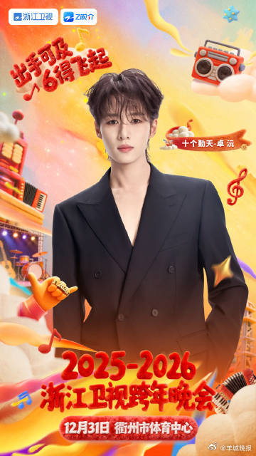 【#浙江卫视跨年晚会阵容官宣#,你最期待谁?】浙江卫视2025-2026跨年晚会将于12月31日19:30在衢州市体育中心举办,以“6得飞起”为主题,通过创意宣发和强大阵容引发全网期待。 ……你期待谁?欢迎在评论区分享~~#内娱三大名场面##曝知名导演疑似与年轻女子同居##曝papi维嘉团队争番##曝王耀庆蔡国庆闹掰##这还是当年演小燕子的李晟吗##静音都能看出来白鹿在说啥#(编辑:郑宗敏;审签:周乐瑞)