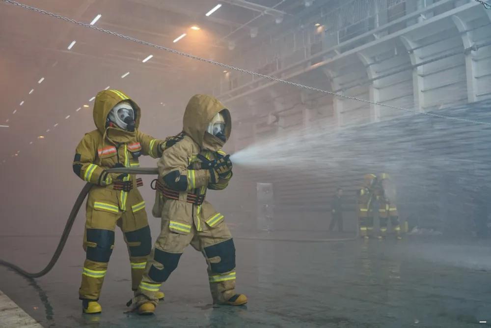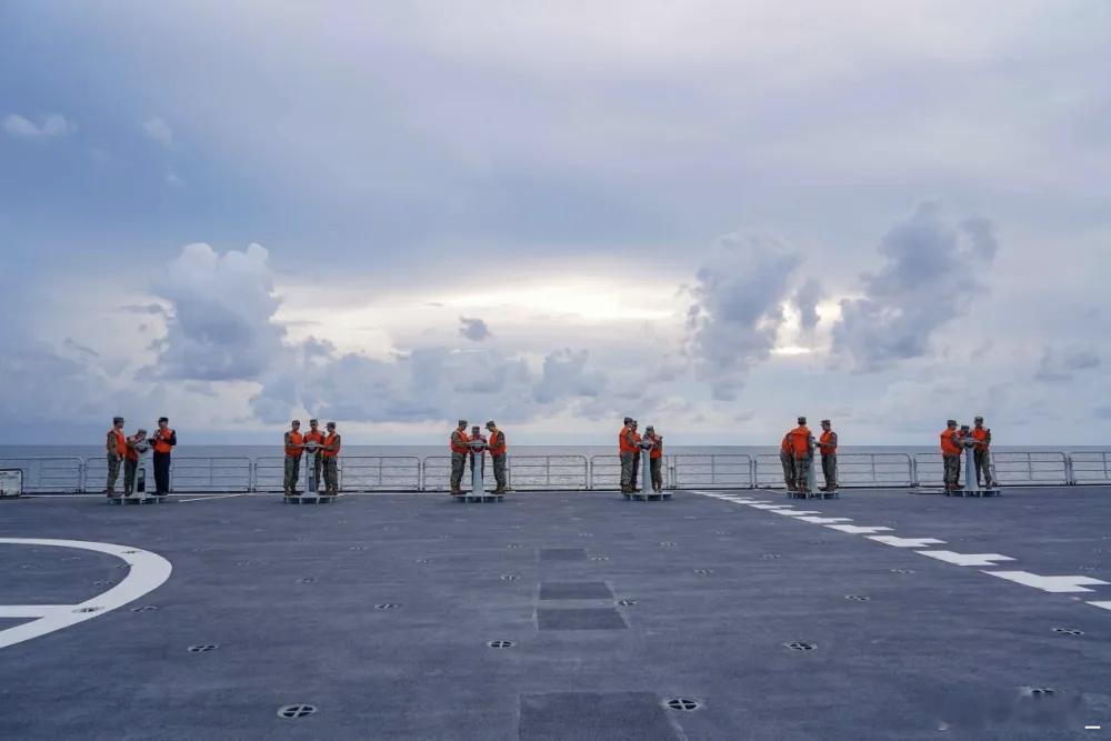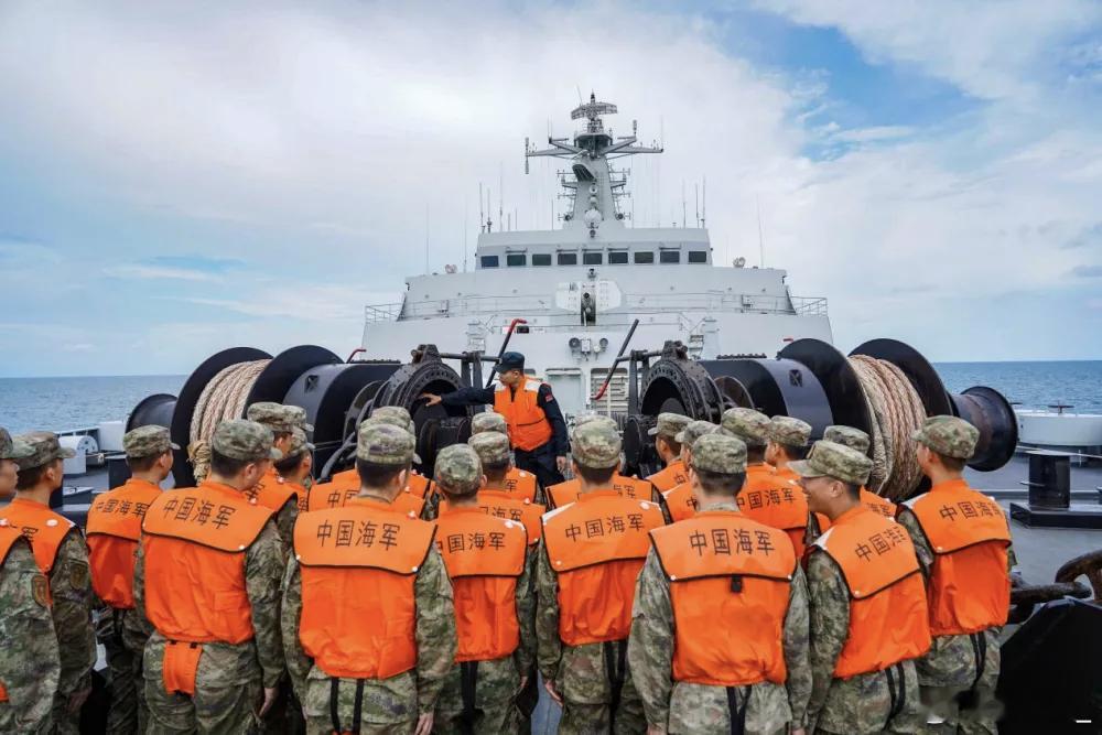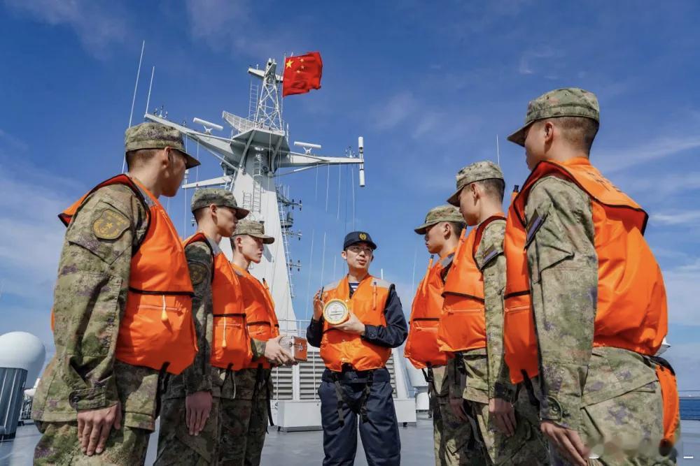 989长白山舰执行此次远海实习任务中的镜头,图一为在坞舱进行损管实操演练。