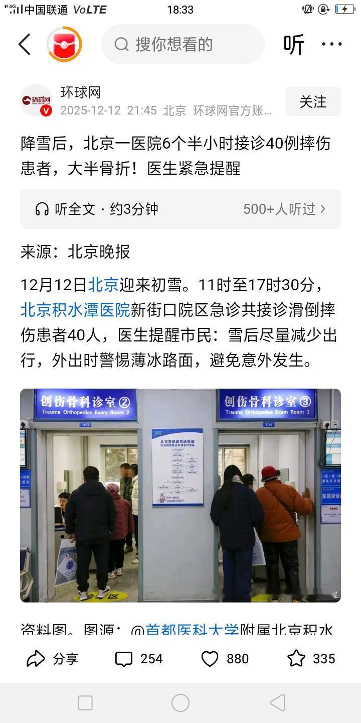 给南方的小伙伴提个醒: 去北方看雪的人一定要注意安全啊!特别是南方的老年人!一定要穿防滑鞋,如果出门带个防滑柺就更安全了! 雪就像一个双刃剑,让人爱恨不得,爱它是因为好玩,恨它是因为危险,太滑了! 走雪路的时候,特别是刚下的时候,一定不要走在瓷板砖上,一定要走在水泥路上上,如果是外出游玩,年轻人最好跟在老年人身边搀扶着!防止摔倒!因为老年人真的不能摔了,骨头很脆弱的~