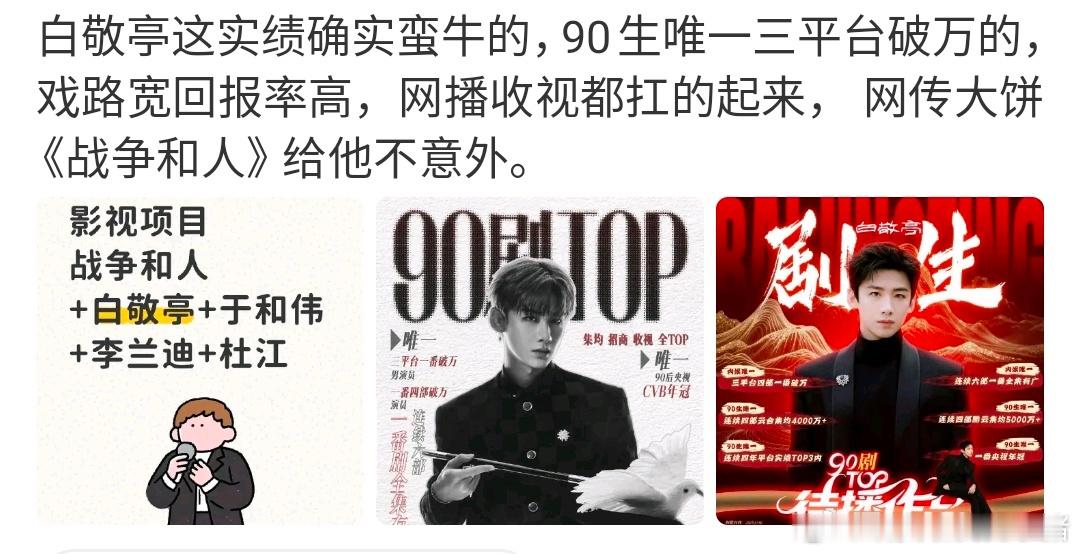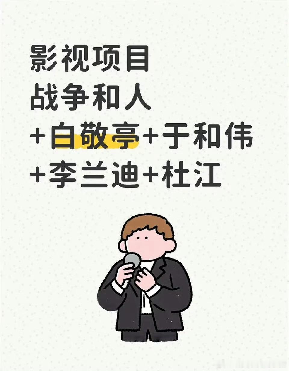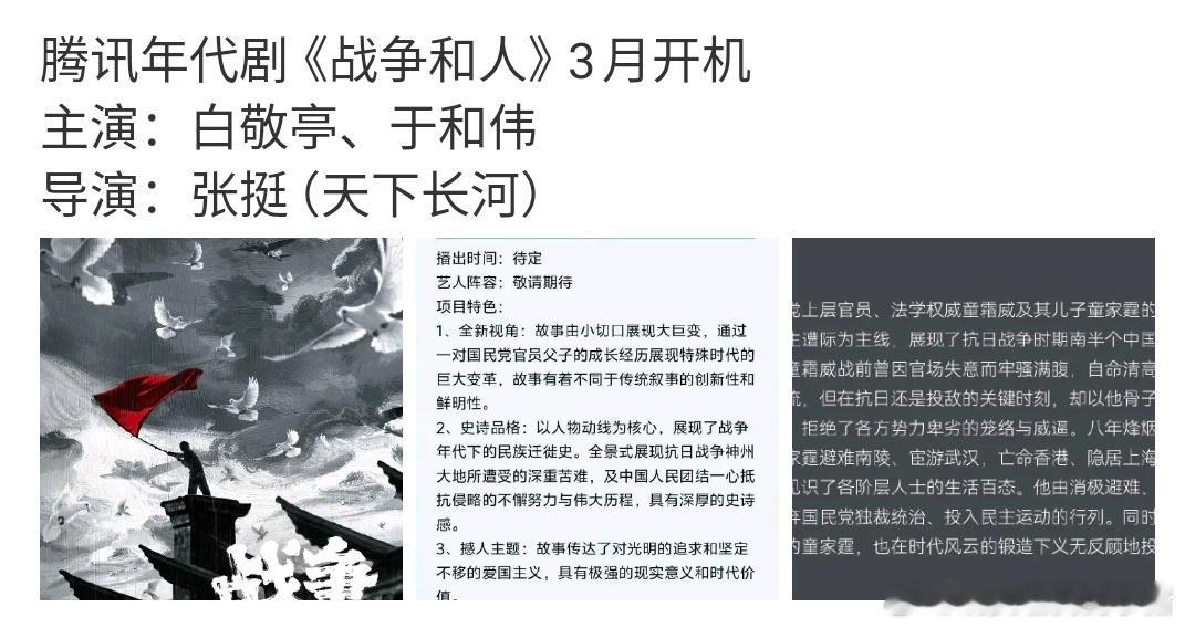 又一个大饼定了白敬亭,战争和人 3 月开机,你觉得合理吗?💧