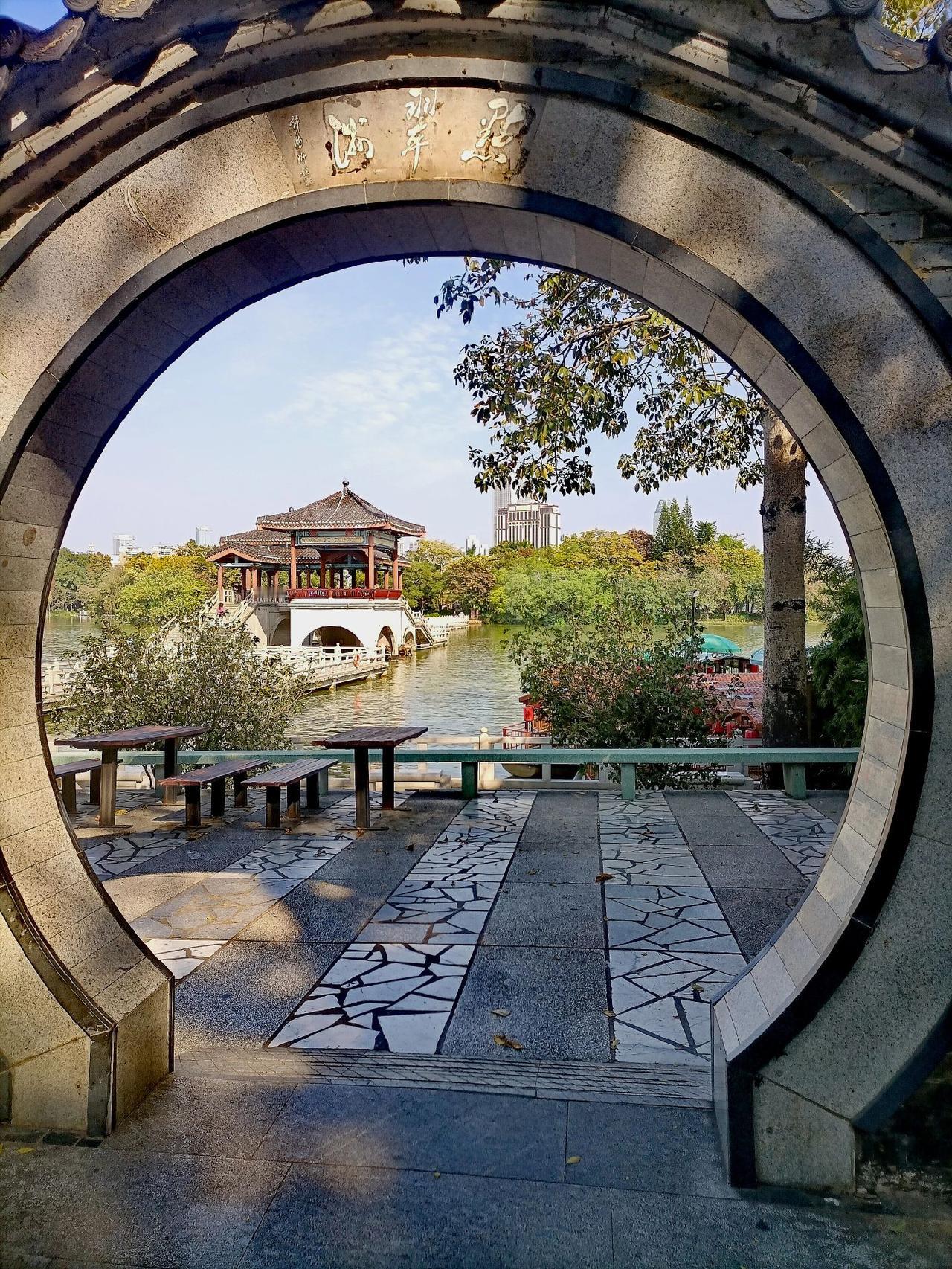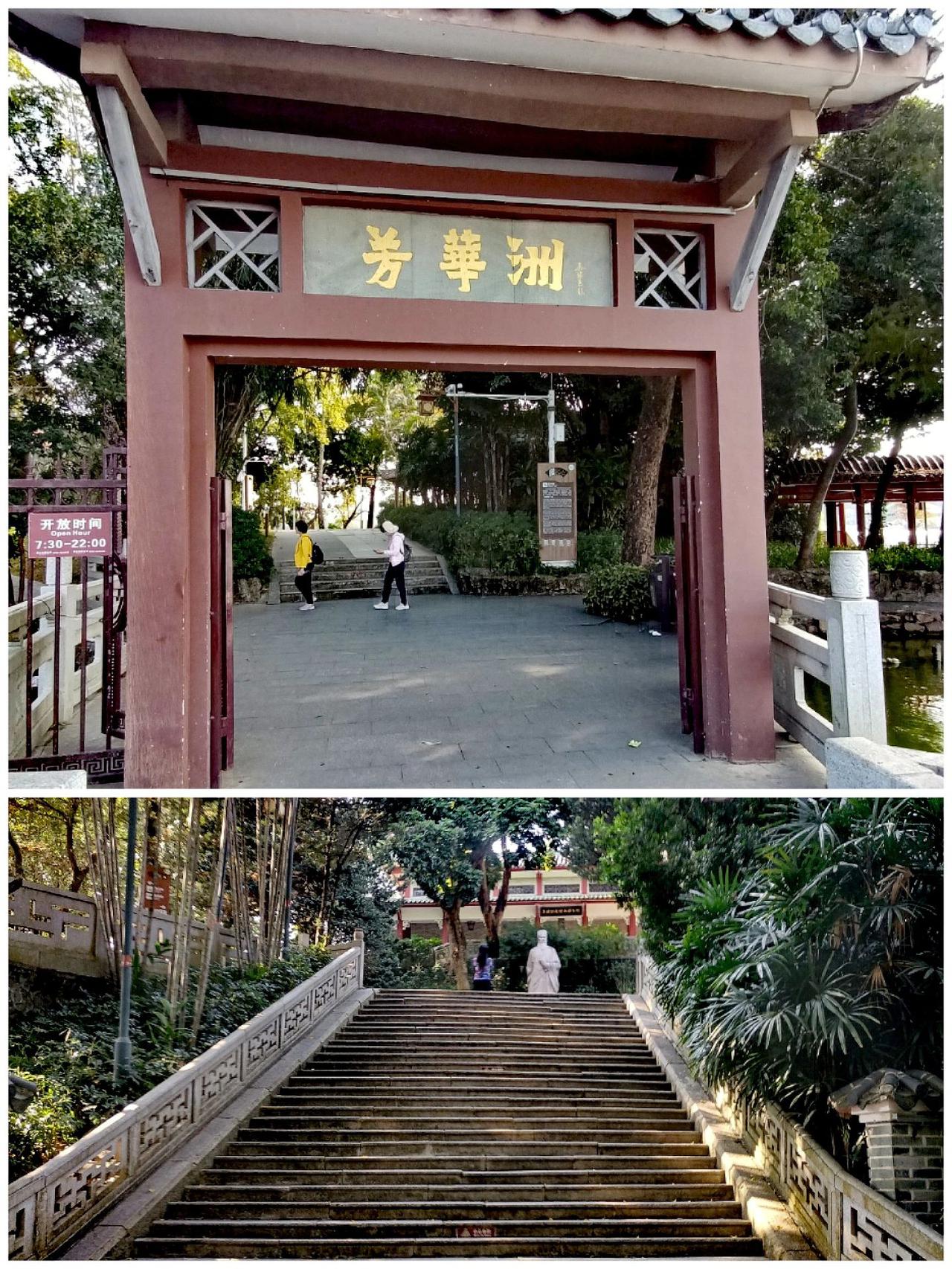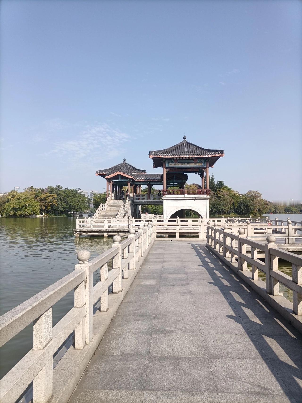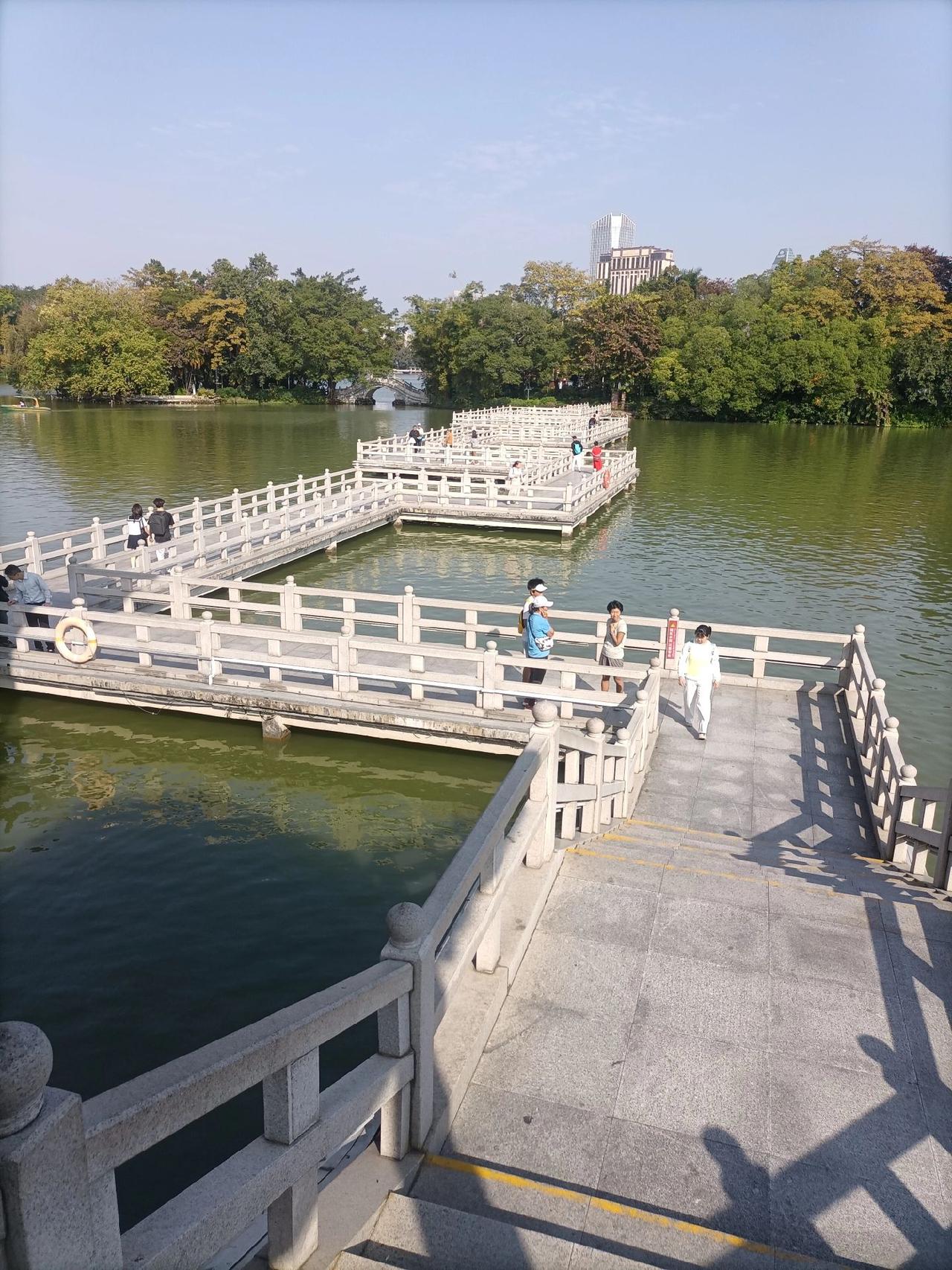 从杭州西湖来到了惠州西湖(图1-2)。不经意以为是同一个西湖。看!这里是惠州西湖的苏堤景区(图3),也有类似杭州苏堤的桥(图4右),只是泗洲塔与众不同(图3上右.图4左.图5上右),图5下的那棵树很有情调。 走过惠州西湖苏堤,透过古色圆门(图6),风景秀丽,水榭亭台;走进去廊亭高耸,九曲奇景(图7-8),最妙的是惠州西湖也有孤山,山上有苏东坡纪念馆,慢慢踱过去,芳华洲湖景也很好看(图9)。 惠州 西湖 名胜古迹 风景