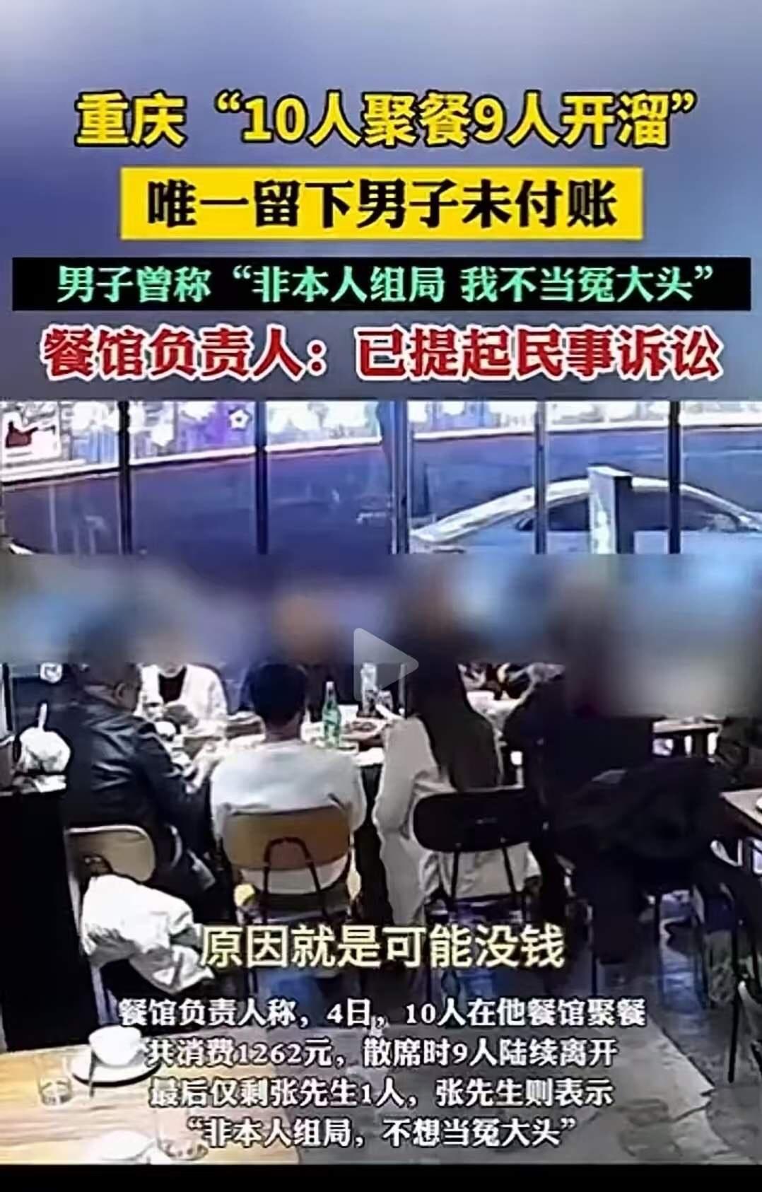 “霸王餐不是这么好吃的!”10个人聚餐消费1262元,结果 9 个人脚底抹油开溜,留下最后一人大喊:“不是我组的局,不想当冤大头!”那么,餐费究竟该谁来付?网友:把10个人吃饭的视频发出来,让大家都认识认识!没钱还出去吃饭,怎么好意思? “霸王餐不是这么好吃的!”这句话看似调侃,实则折射出一个令人深思的社会现象——在现代快节奏、压力山大的生活中,部分人的价值观出现了偏差,甚至开始模糊了责任与道德的底线。 这次聚餐事件,10个人消费1262元,结果9个人“溜之大吉”,只剩最后一人站出来喊:“不是我组的局,不想当冤大头!”这样的场景令人愤怒,也让人心疼。我们不禁要问:这些“逃兵”的心理在哪?他们是否意识到,这不仅仅是钱的问题,更是诚信与责任的问题。 有人会说:“都知道吃饭是朋友间的情谊,谁愿意多付?”但真正成熟的人,懂得在朋友关系中,责任感和诚信才是最重要的纽带。难道“吃饭”就变成了“试金石”吗?如果连这点责任都无法承担,又怎能期待别人对你真心? 网友们纷纷发声:把他们吃饭的视频发出来,让大家都认识认识这些“逃兵”。其实,这背后折射出的,是一种对于“公平”与“尊重”的缺失。社会的和谐,难道不正是建立在每个人都愿意为共同利益付出的一点点努力上吗?当有人轻视这些基本的伦理,整个社会的底线就会被动摇。 更令人愤慨的是,有些人明明经济紧张,却还硬着头皮出门吃饭,事后却选择“偷偷溜走”。这不是“不懂事”,而是一种“自私”的表现。面对生活的压力,他们选择了逃避责任,却忘了,这样的行为只会让自己变得更加孤立无援。 我们每个人都曾在生活中遇到过类似的事情,也许是一次聚餐,也许是一次合作。但无论何时,责任感和诚信都应该是我们坚守的底线。试想,如果每个人都像那些“溜走”的人一样,只顾自己不顾别人,社会的信任将何去何从?人与人之间的关系,又如何能建立在真正的理解和尊重之上? 这次事件,虽然看似一场普通的聚餐纷争,但其实它折射出一个更大的社会问题——我们是否还在坚守那些“做人最基本的底线”?我们是否还在用诚信去对待每一份情谊?答案也许让人失望,但更需要每个人的反思和行动。 朋友们,下一次当你面对类似的场景时,不妨多想一想:你愿意成为那个“用责任和诚信”撑起一片天的人吗?还是会像他们一样,选择“抹油溜走”,让这个社会的温度变得冰凉?让我们一起用行动,捍卫那份属于我们每个人的尊严和底线。毕竟,只有在责任与诚信的土壤上,社会的花朵才能开得更加绚丽夺目。聚餐账单 重庆吃霸王餐 饭店欠账 霸王餐试吃 灰太狼霸王餐 饭店不明消费 外卖霸王餐