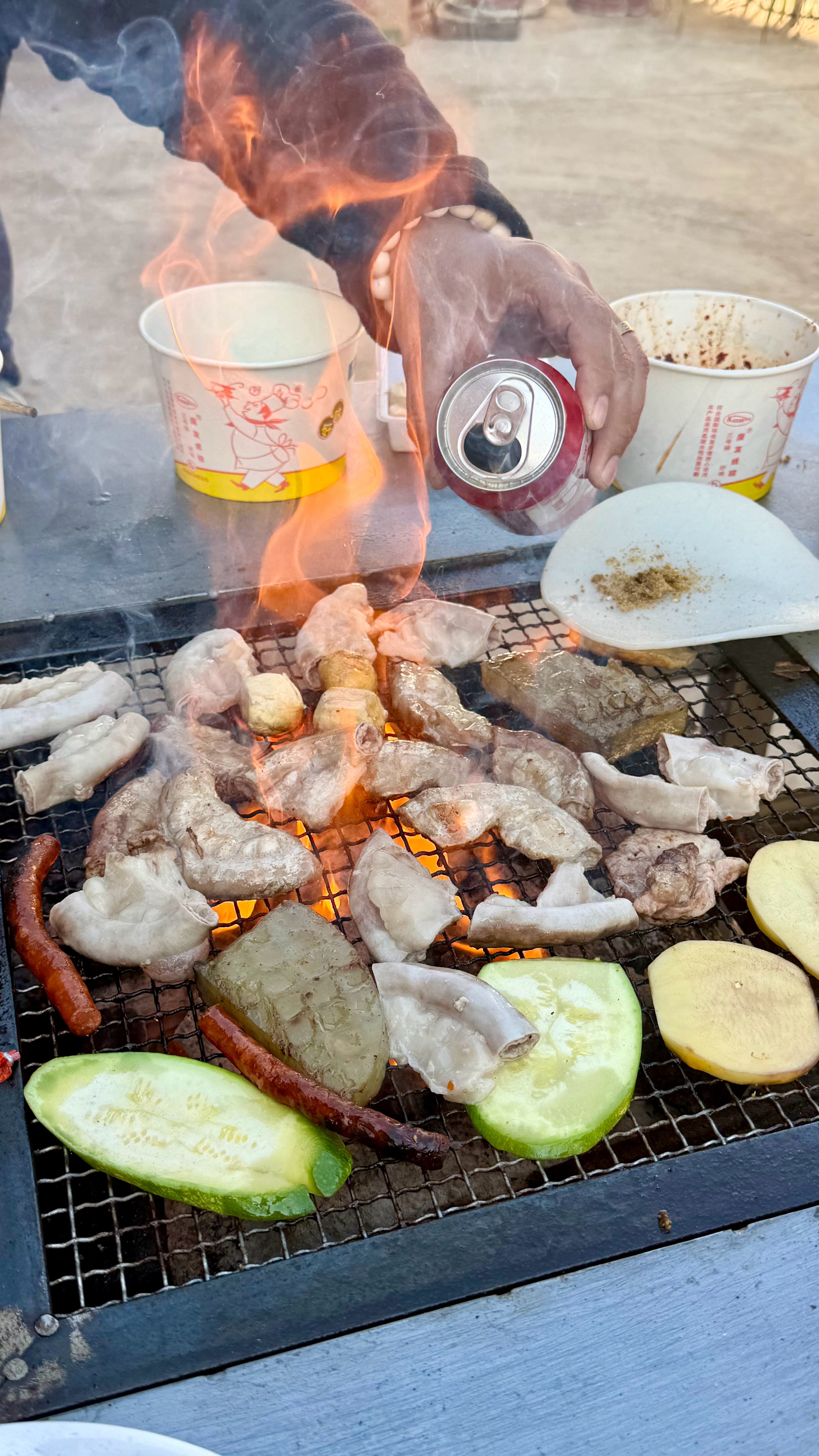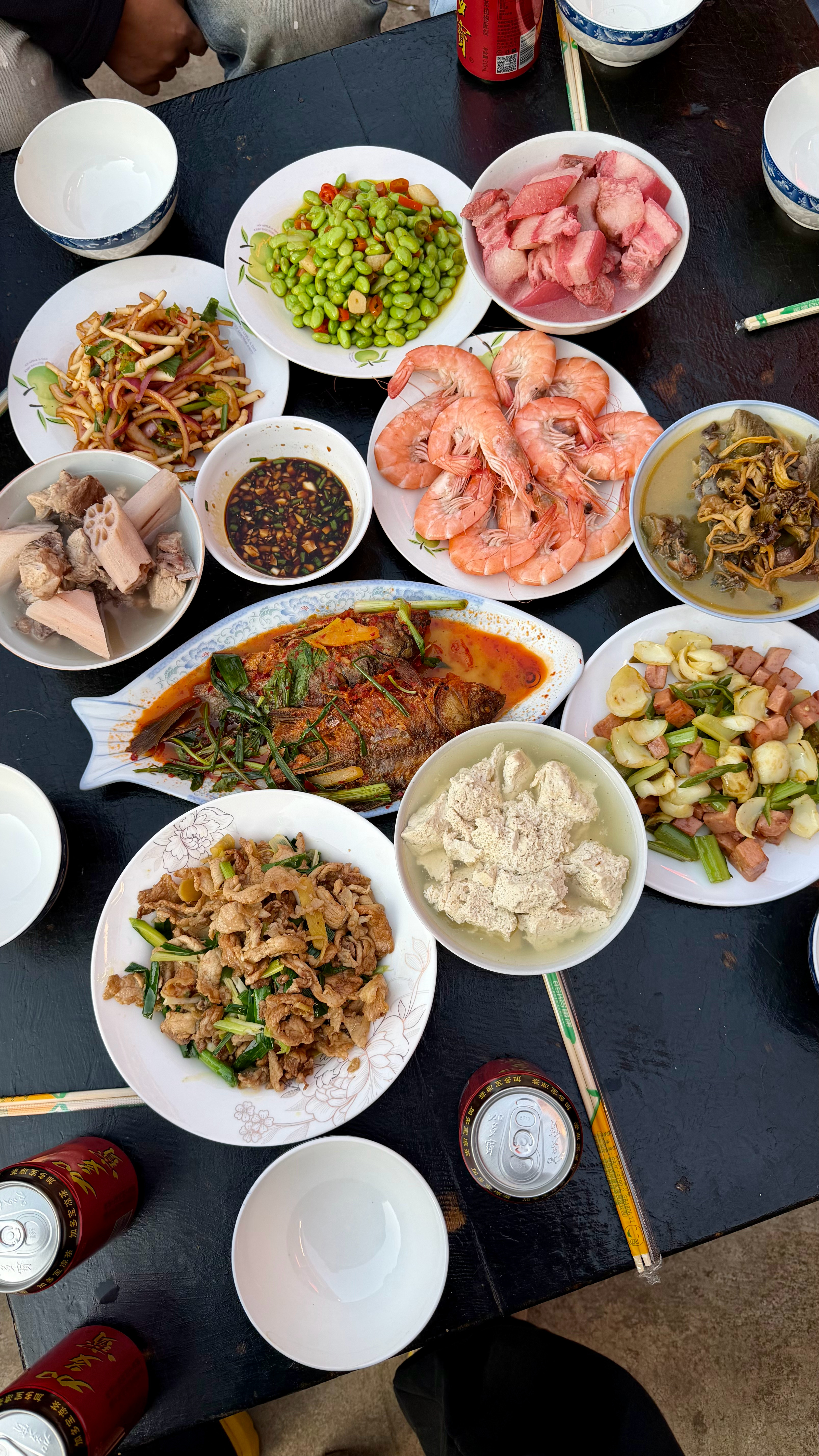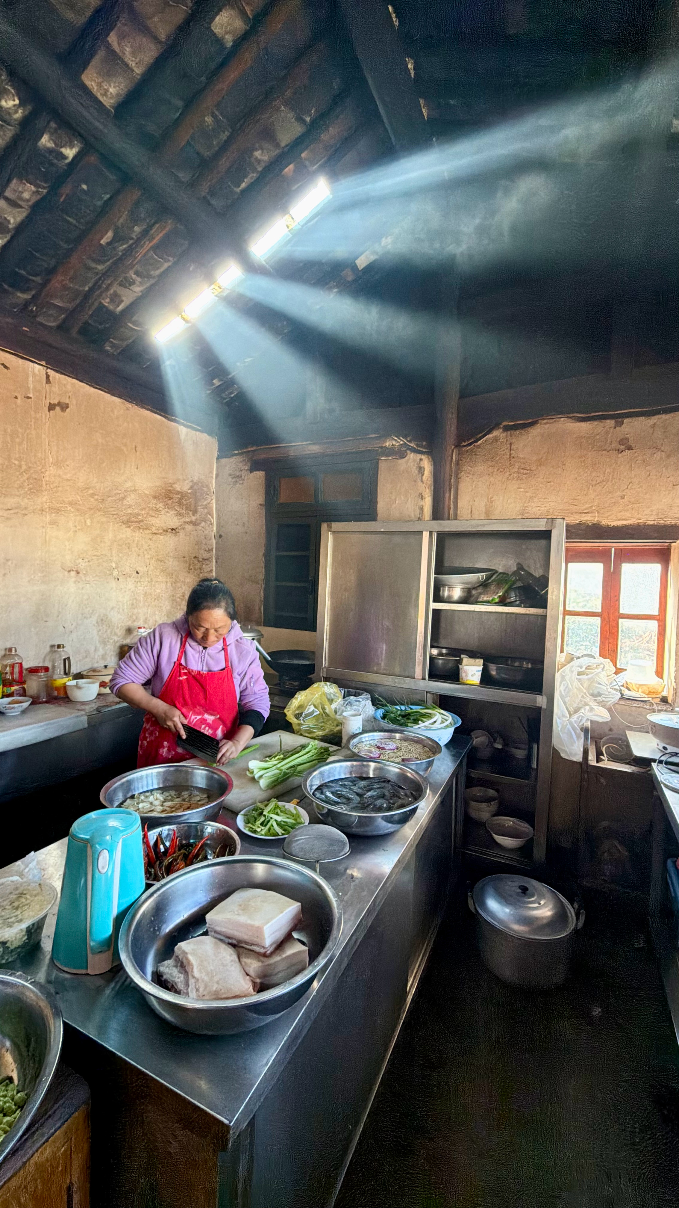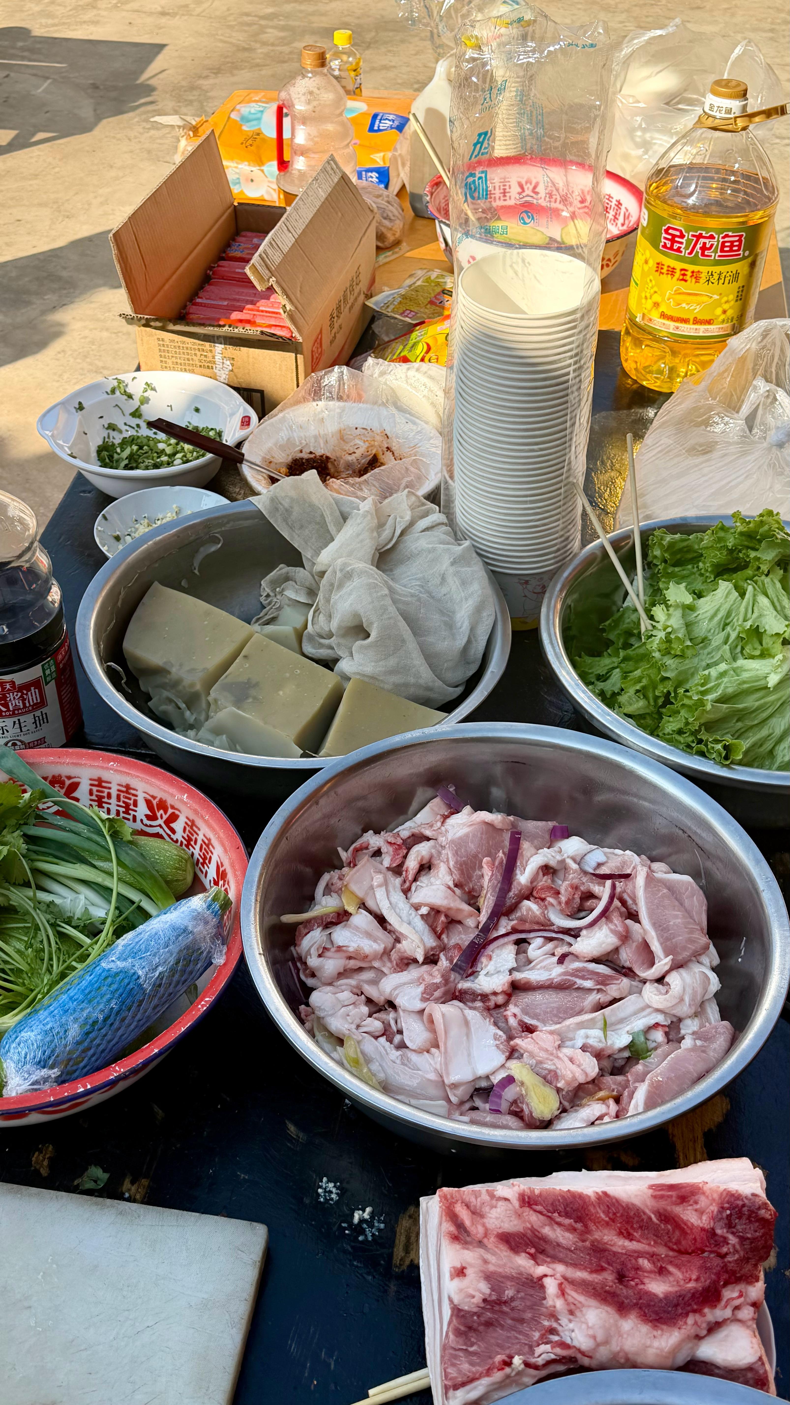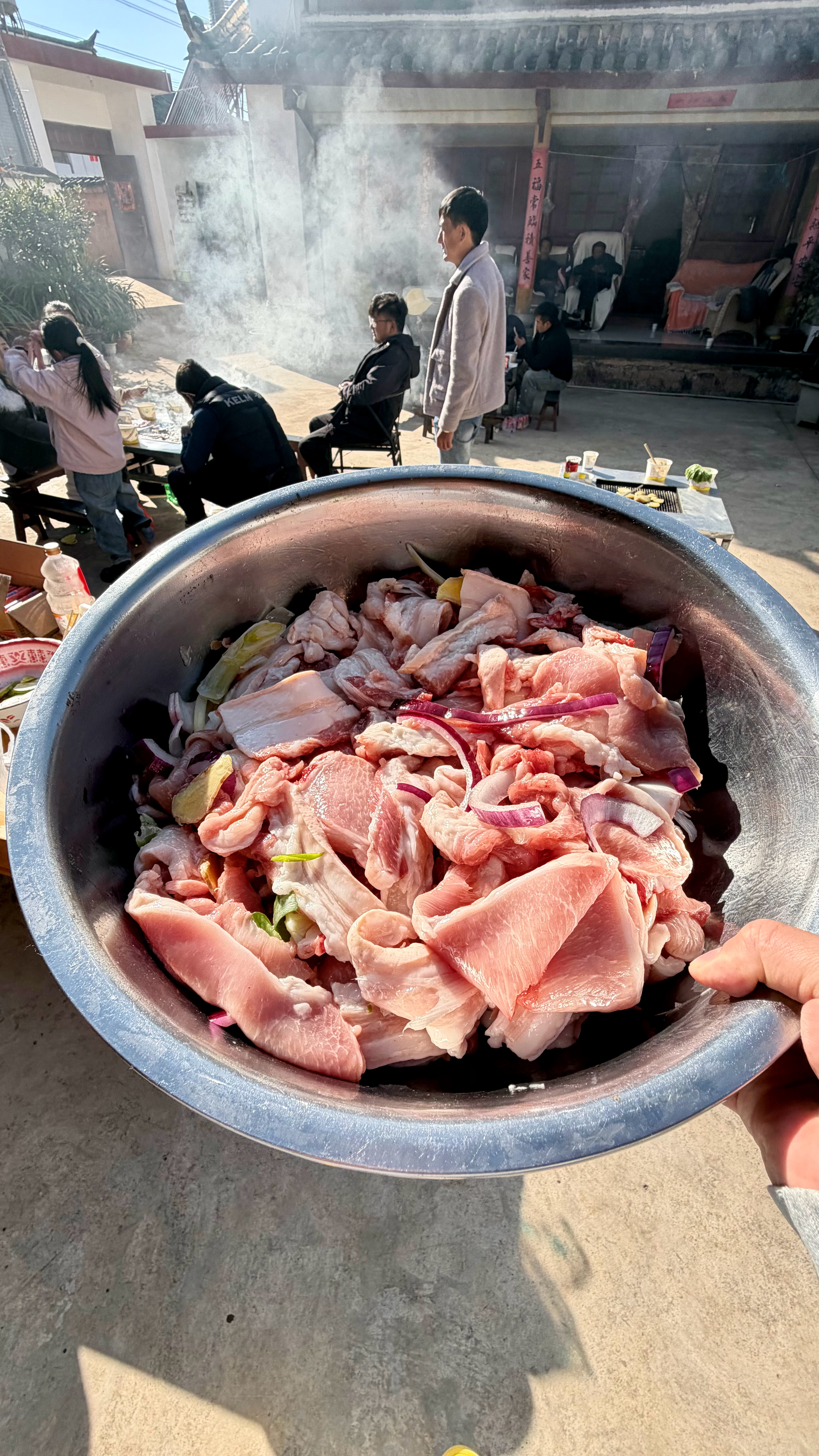 丽江一年一度的杀猪饭🐷,今天老姚家的猪肉,肉质太好了,切得时候刀工也讲究得很。都是切得很薄很大片,瘦肉里都带有油线纹路,不需要烤得很熟,吃起来保留有水分口感才棒,全肥的也是薄大片,烤熟透了吃起来就跟贵州脆哨似的,沙肝切下来的时候带了点油,吃起来就弥补了沙肝原本口感上的一些“干”的缺陷,非常得弹爽又有油香,粉肠也是弹劲十足,还拿出了石屏的臭豆腐,非常好评!入口感觉像是往嘴里塞了个屎泡子,一口咬下去,屎泡子在嘴里炸开,其臭至爽,非常好吃,关键是蘸料黄辣椒粉也是我在云南目前非常喜欢的一款辣椒面!整日味蕾体验很好的一天,满足😌对了,这两天晚上丽江有流星雨哦🌠豆花名宿吃货团云南旅游攻略君丽江旅行 丽江·北高寨村