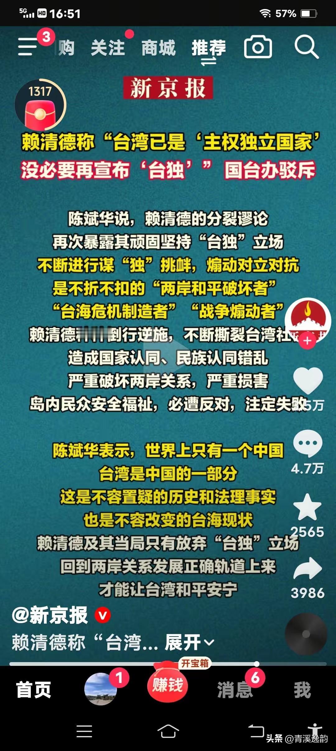 台湾赖清得说:“台湾已是,‘主权独立国家’”这让中华人民共和国情以何堪? 简直是把国际社会的智商按在地上摩擦!一个从2017年就自封“务实台独工作者”的政客,嘴里喊着“反共不反中”的鬼话,转头就抛出“主权独立”的谬论,这种自相矛盾的表演,说白了就是拿台湾民众的身家性命当政治赌注。赖清德心里比谁都清楚,他这套分裂话术既站不住历史脚,也经不住法理考,却偏要一条道走到黑,无非是想靠炒作“台独”拉拢深绿选票,转移岛内民众对高失业率、蛋价暴涨的不满。 历史早就把台湾的地位钉死了!1943年《开罗宣言》明确规定日本必须归还窃取的台湾,1945年《波茨坦公告》更是死死咬定这一条,当年台北受降仪式上,中国政府已经正式恢复对台湾行使主权,这是二战胜利的核心成果之一。更别说1971年联大2758号决议,以压倒性多数承认中华人民共和国是全中国唯一合法代表,把台湾当局的“代表”扫地出门,联合国官方文件至今都明确称台湾为“中国的省” 。赖清德想把台湾从中国分裂出去,先问问这些国际文件答不答应,问问世界上183个与中国建交的国家同不同意! 他所谓的“主权独立”,不过是自导自演的政治骗局。2025年3月,这家伙刚开完防务会议,就把大陆定为“境外敌对势力”,抛出17项分裂策略,又是恢复军事审判,又是限制两岸交流,甚至要推动女性服兵役,把台湾往“准戒严”的方向推 。可这些动作骗不了台湾老百姓——台南的果农还在为大陆市场的准入发愁,青年们找不到工作只能背井离乡,连超市里的鸡蛋都涨到四十多新台币一斤,这些民生难题,哪一个是“台独”能解决的?岛内民调早就给出答案,超过五成民众不满意他处理两岸关系的表现,罢免运动此起彼伏,这才是真正的台湾民意。 法理上更是漏洞百出!台湾作为中国的省级行政区,其地方政权根本没有资格谈“主权”。联合国秘书处的法律意见写得明明白白,“台湾作为中国的一个省没有独立地位”,赖清德口中的“主权”,不过是偷换概念的政治把戏。他一边说“台湾独立是事实”,一边又不敢搞正式“公投”,怕触发大陆的反分裂红线;一边喊着“维护民主”,一边又打压异见声音,一年起诉64起所谓“间谍案”,较往年激增三倍,这种“绿色恐怖”,哪里有半分民主的样子? 更阴险的是,赖清德还想勾连外部势力“倚外谋独”。他积极配合美国“以台制华”战略,推动半导体产业向美国转移,大肆购买美国军火,把台湾变成外部势力遏制中国的棋子。可他忘了,美国从来只把台湾当“提款机”和“挡箭牌”,一旦台海真的爆发冲突,最先抛弃台湾的就是这些所谓的“盟友”。岛内48%的民众都在担忧战争风险,55.9%的人觉得台海局势越来越危险,这就是对赖清德“台独”路线最直接的否定。 他这套分裂操作,本质上是权力至上的政治投机。赖清德很清楚,只要绿营支持率不下滑,他就能继续靠“台独”续命,可他根本不管台湾的经济民生,不管两岸和平稳定。岛内专家早就点破了,他的“台独”只是手段,权力才是最终目的,为了保住自己的位置,哪怕把台湾拖进战争深渊也在所不惜。这种置民众利益于不顾的政客,还好意思谈“主权”“民主”? “台独”是死路,这是铁律!从李登辉到陈水扁,再到现在的赖清德,每一个搞“台独”的政客都没有好下场。大陆东部战区的联合军演已经明确释放信号,任何分裂国家的行为都将遭到坚决反制,中国人民捍卫国家主权和领土完整的决心坚如磐石,绝不可能给“台独”分裂活动留下任何空间。赖清德要是真敢迈出实质性“台独”的一步,等待他的必将是历史的审判和法律的严惩。 各位读者你们怎么看?欢迎在评论区讨论。