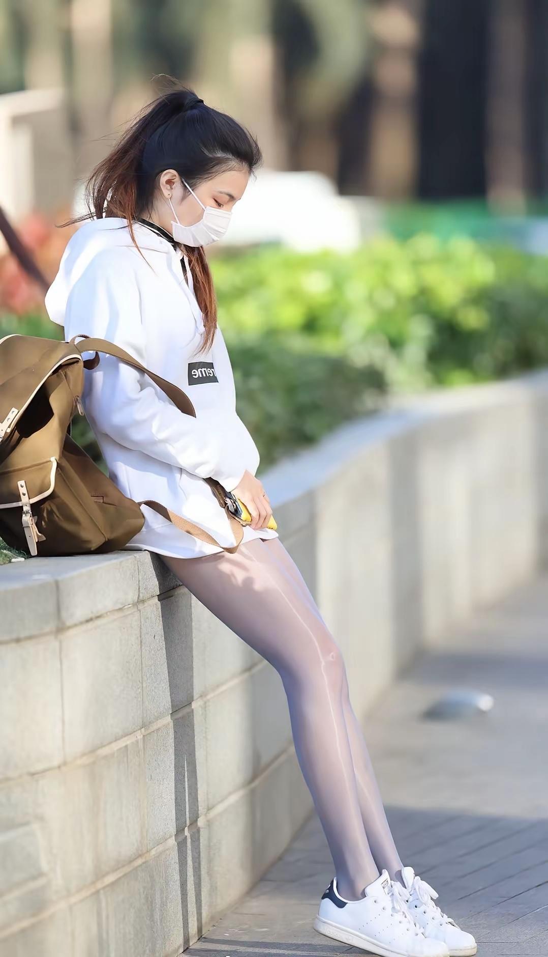 白色卫衣搭配透明丝袜,青春活力满满!😊👟💼