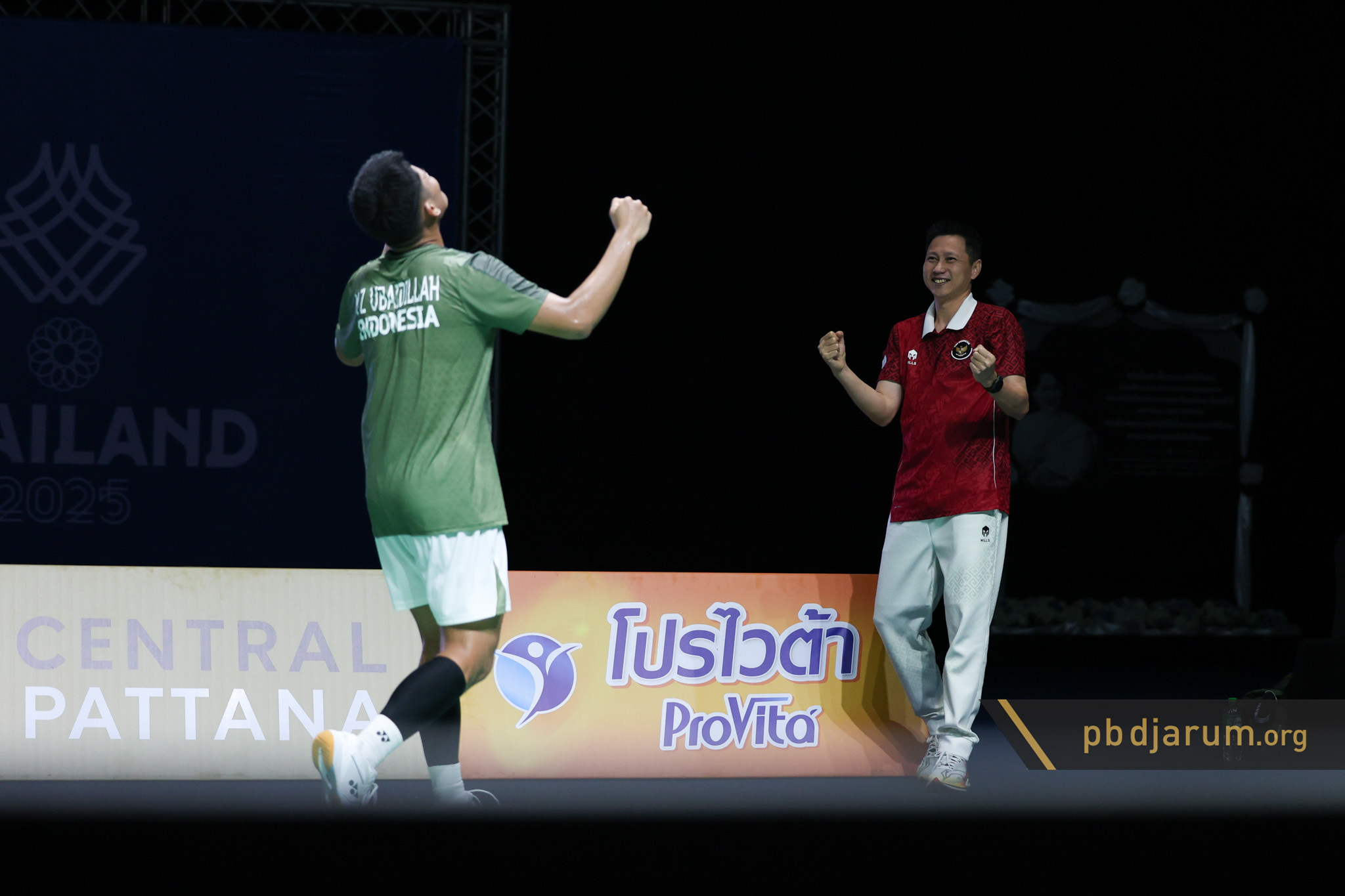 印度尼西亚在2025年东南亚运动会羽毛球男子单打项目中确保获得一枚金牌。在Moh Zaki Ubaidillah跟随Alwi Farhan晋级决赛后,这一结果得以确认,从而创造了一场印度尼西亚队内决赛。周六(12月13日)在Thammasat University Rangsit Campus Gymnasiums 举行的半决赛中,Ubed(Moh Zaki Ubaidillah)成功击败马来西亚代表Leong Jun Hao,比分为21-18、21-13。Ubed的胜利补充了另一位印度尼西亚选手Alwi Farhan的成功,后者此前通过三局比赛以21-10、15-21、21-14击败马来西亚羽毛球选手Justin Hoh后,已率先确保决赛席位。凭借这一结果,印度尼西亚确定在男子单打项目中获得金牌。Ubed表示,尽管比赛初期面临压力,但他对所取得的成绩感到感激。“首先我要感谢真主,感谢能够让我发挥出色并获得胜利。起初比赛一度很胶着,但在中途比分取得领先。从那之后我打得太小心了,所以当对手改变节奏时有些害怕。”Ubed说道。他也承认在关键分上有运气因素。“在他追赶时也有运气成分。在20-18时有一个半场球被拦截,但我还是能够碰到并回球得分。如果变成20-19就相当危险了。幸运的是我能够完成比赛。”他补充道。此外,Ubed表示他并未对能走得这么远抱有太高期望。“虽然没有期望也能进入决赛,这么快就能获得奖牌,因为去年还在参加系列赛、挑战赛和Super 100级别的比赛。我也觉得未能在两届世青赛实现夺金目标而产生了影响,这成了我追求更好表现的动力。”他解释道。面对与Alwi Farhan的决赛,Ubed认为心理准备将是关键。“在决赛中对阵Alwi,必须重新调整心态。如果能控制好情绪和思绪,保持冷静,比赛肯定会顺利进行。每个人都想获得金牌,但我将它托付给真主,并会为明天全力以赴。”他说道。他还强调了印度尼西亚男子单打团队与教练陈甲寅的团结。“Indra教练肯定也没想到会有这场印度尼西亚队内决赛。但我们在男子单打项目中确实非常团结。在他的带领下,我们能够愉快地执行所有训练计划。”Ubed总结道。2025年东南亚运动会男子单打决赛将于明日举行,由Moh Zaki Ubaidillah对阵Alwi Farhan,这也将是印度尼西亚的金牌争夺战。©️针记