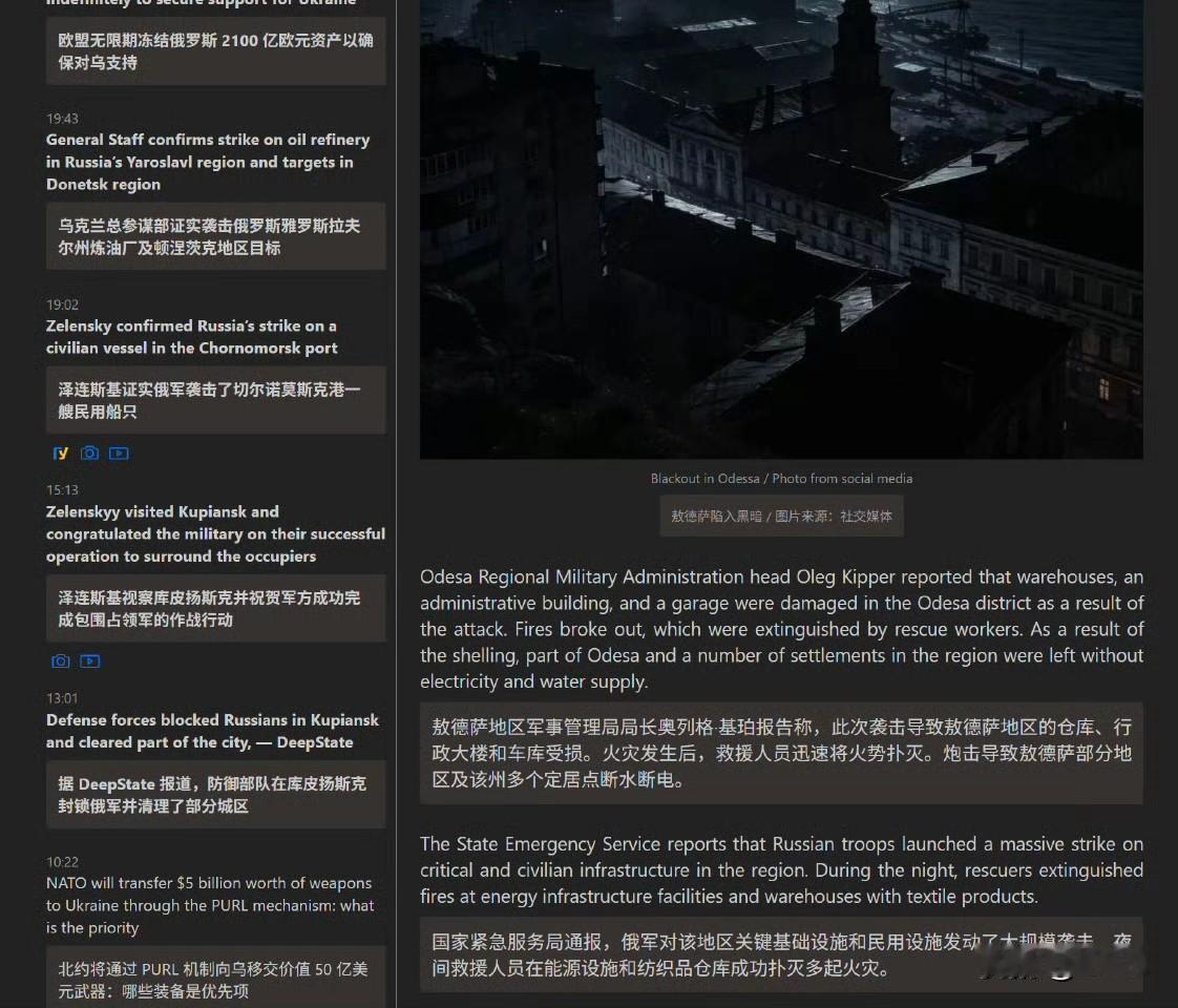 RT、glavnoe.in.ua 等俄乌媒体共同报道,“犹如恐怖片场景”——敖德萨彻夜遭袭后陷入全面停电乌克兰媒体发布这些照片后,随即引发是否 AI 合成的争论。根据当前的月相看,虽然这些照片很可能是伪造的——但敖德萨市大面积停电却是千真万确的。