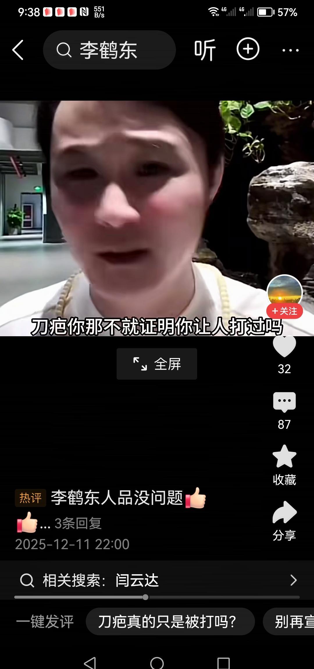 你说的那道疤,是他的盔甲,也是他的软肋。 昨天,郭德纲早年弟子闫云达,直接把李鹤东脸上那道著名的刀疤撕开了。 他说那是被打留下的,不是江湖传说。 他放话:李鹤东在他面前过不了三招,要给他添道新的。 业内人一听就懂,这哪儿是刀疤的事。 这是桌子底下的东西,被端上了台面。 闫云达是郭德纲“云”字科的早期徒弟,按老规矩,这是吃过苦、熬过冷板凳的。 李鹤东是“鹤”字辈,年轻,但势头猛:影视、综艺、商演,流量一个没落下。 老派的“论资排辈”,撞上了新派的“流量为王”。 这道疤,过去是李鹤东“社会东哥”人设的钢印,现在成了闫云达攻击的靶心。 闫云达一句话,把李鹤东从“江湖人设”摁回了“被打的演员”这个原形。 他在用最传统的方式,质疑新规则的合法性。 相声界讲究“台上无大小,台下立规矩”。 今天,有人把台下的规矩,砸在了全网脸上。 这巴掌,抽疼的不是一个人,是一个时代变形的关节。 脸上那道疤,不是勋章,是伤疤;心里的那道坎,不是辈分,是时差。