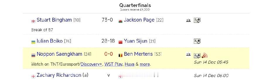 袁思俊无缘四强! 12月14日,斯诺克单局限时赛1/8决赛,袁思俊单杆126分击