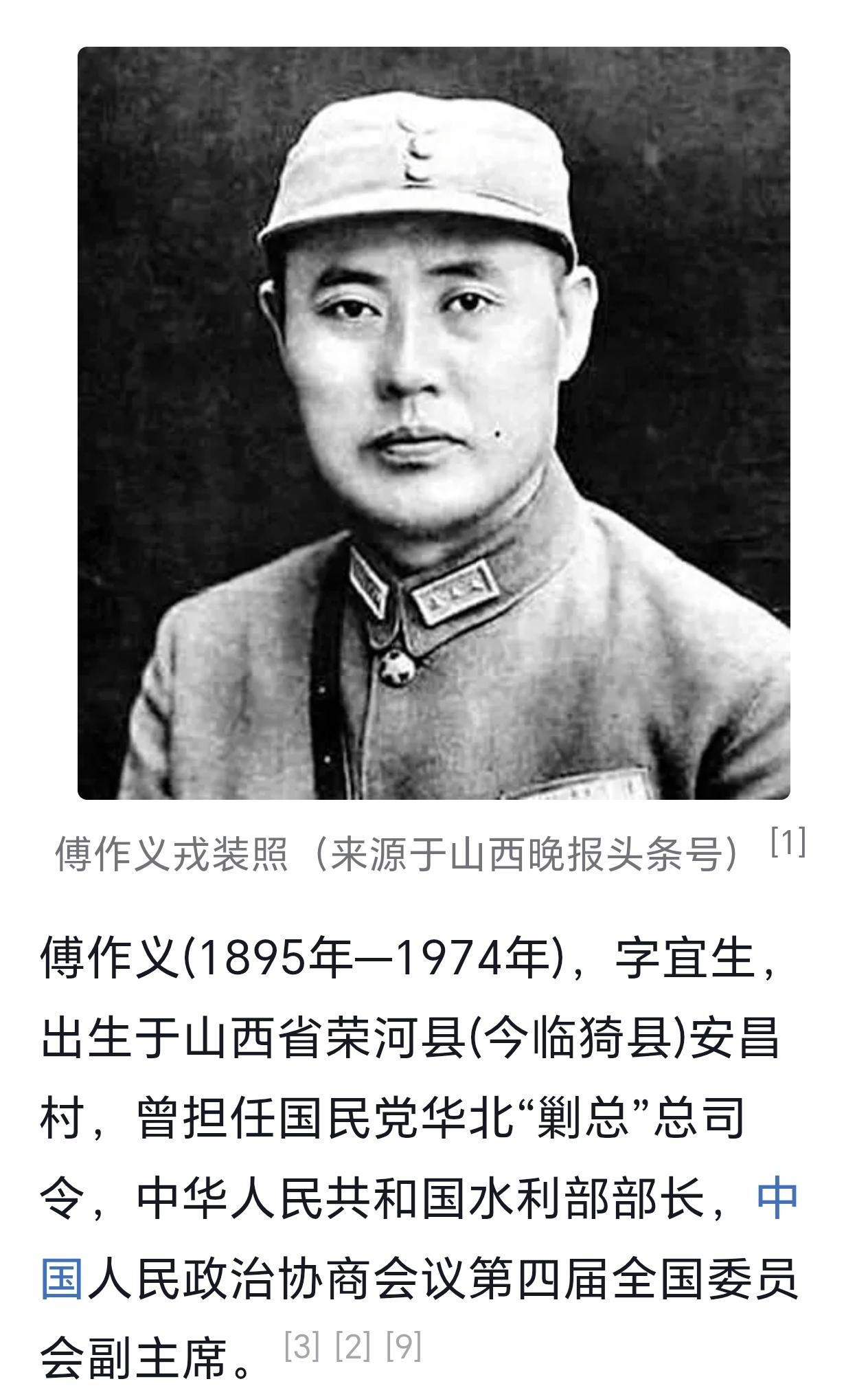 为什么孙子的籍贯不是爷爷的籍贯?傅作义将军是山西省原荣河县(今临猗县)安昌村人,祖上几代人生活于此,如今临猗黄河大桥从其故居南侧东西横跨黄河,雄伟壮观。将军之孙傅川高级工程师,公开简历介绍其为山西芮城人,不知道来龙去脉,看的人糊里糊涂。