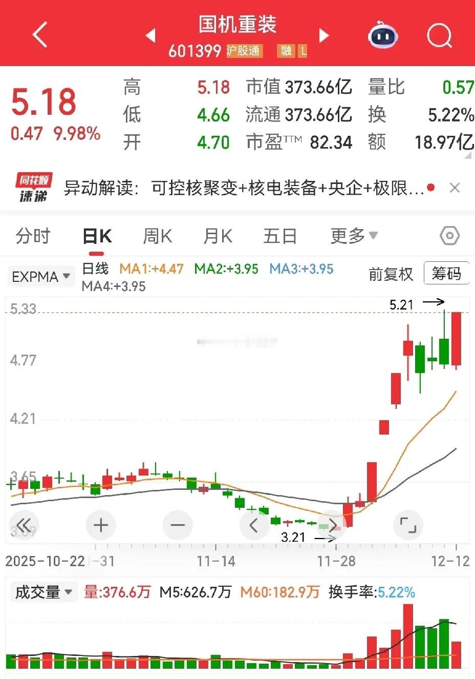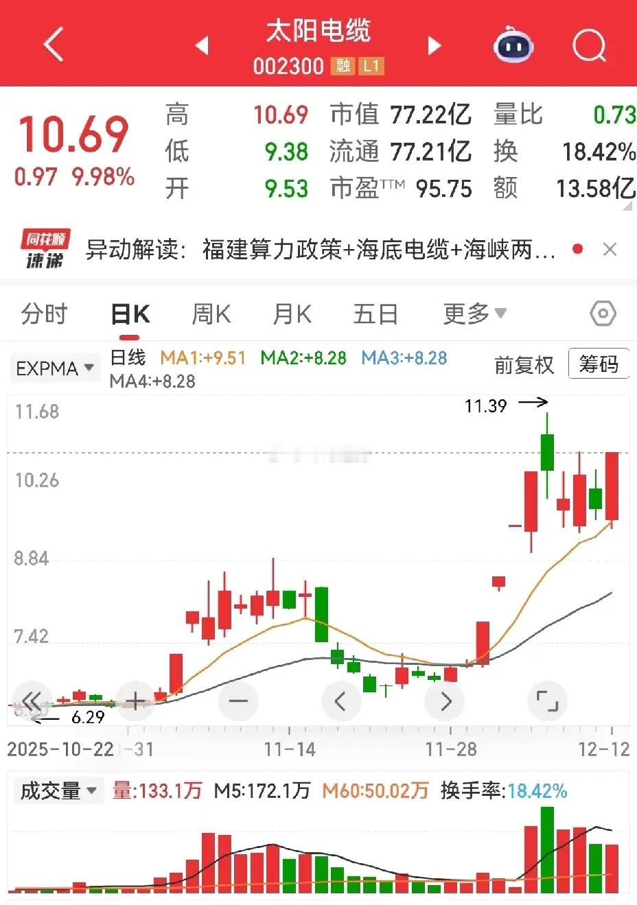龙洲股份,国机重装,太阳电缆。三人都是横盘整理,一个三天,一个五天,一个六天。这里形成一个平台,周五运行至平台顶端,面临突破,能否突破,周一见分晓。龙洲股份,六连板上来,此处量能过大,有力竭之态。如果在两天内再有涨停,将会成为异动管理标的。由此看来,想作为龙头,竞争力有点疑问。国机重装,三板后的空中加油,第五天能缩量涨停,潜力或将被挖掘出来。太阳电缆,四板后,开始箱体震荡,周五的涨停板,有一定想象空间。特别提醒:贴图欣赏,并非推荐,据此操作,风险自担。财经A股今日看盘今年下雪为啥不撒融雪剂了