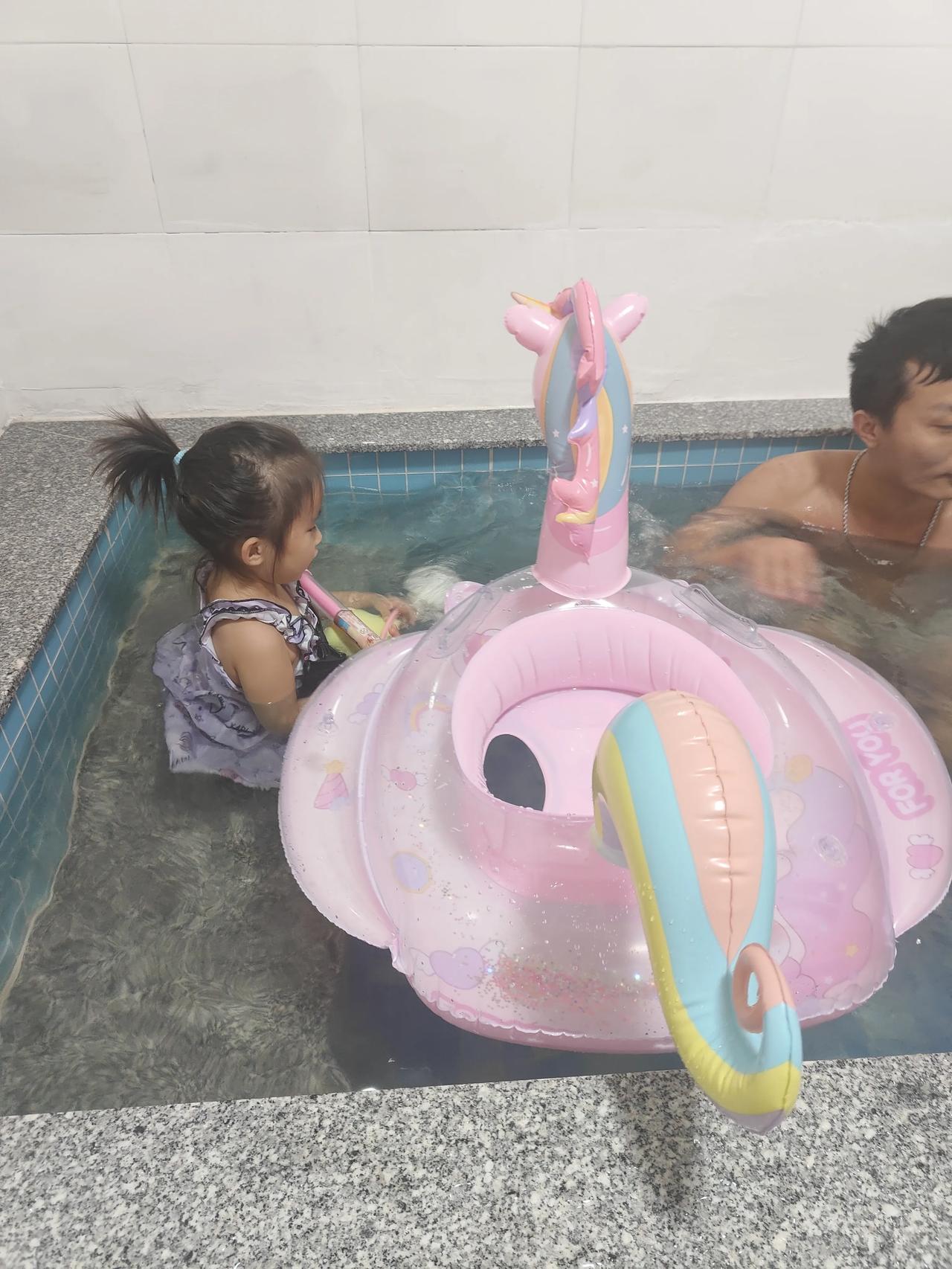 冬天泡温泉也太舒服啦!暖融融的泉水裹着身子,寒意一下子就跑没了。娃的粉色独角兽泳圈在水里飘着,粉嫩嫩的超吸睛,小家伙扒着泳圈小手扑腾水,玩得眼睛都亮晶晶的。旁边娃爸守着,时不时伸手扶一下,看着娃撒欢的样子,心里也跟着软乎乎的。泡在温泉里,听着娃的笑声,连空气都是暖的,这大概就是冬天最惬意的亲子时光了吧~