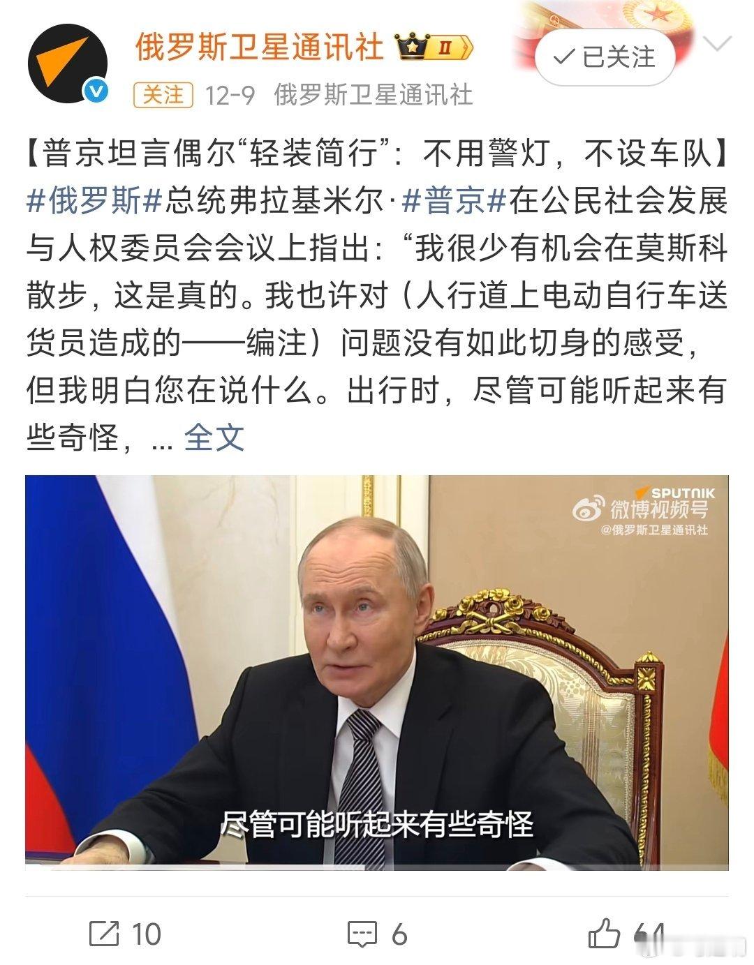 普京总统很低调,他说在莫斯科“很少有机会散步,这是真的”。反观泽连斯基,竟然跑到哈尔科夫州库皮扬斯克距离前线1.15公里的地方拍视频,太高调了。