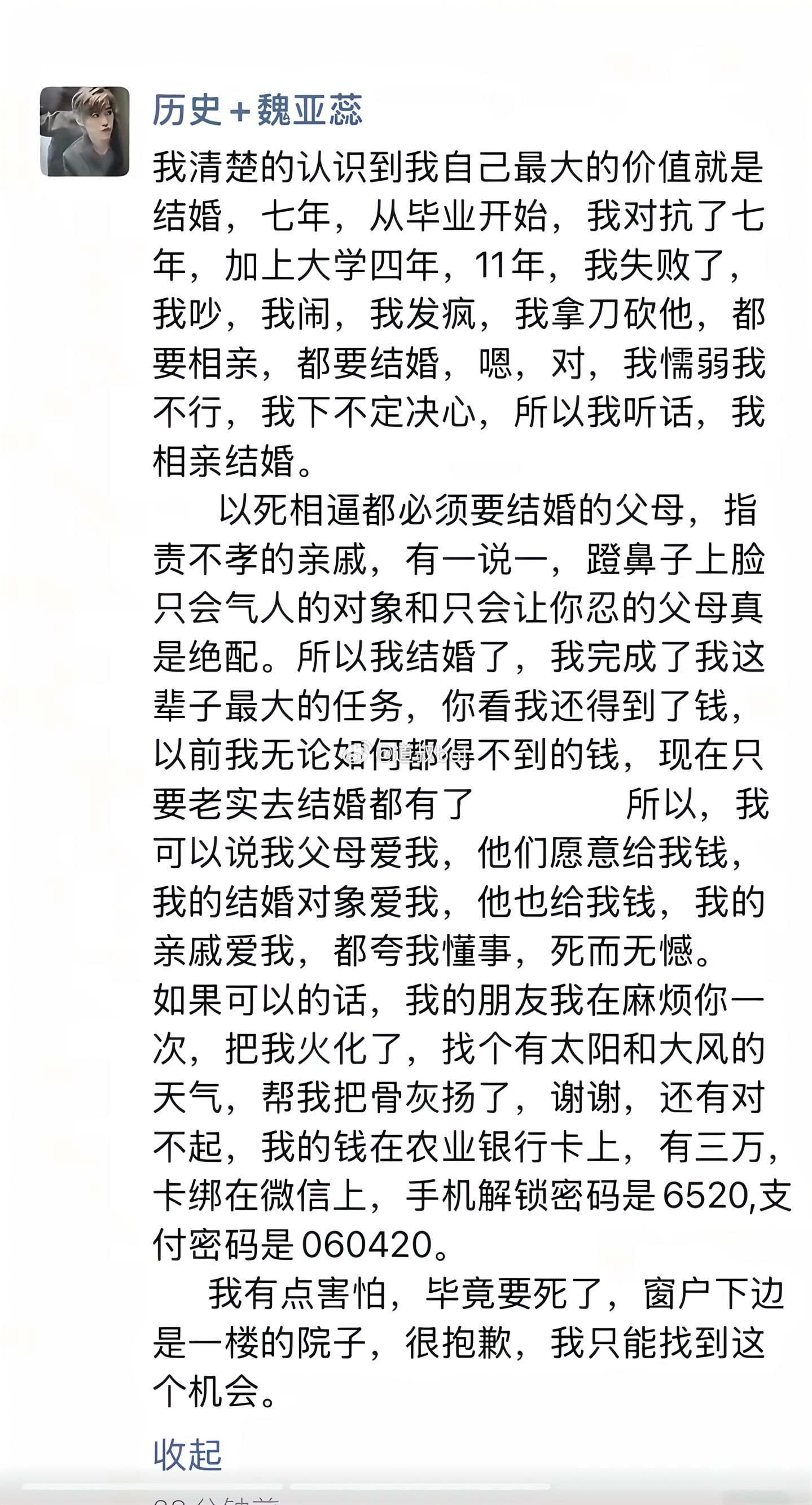 河南28岁女教师新婚当天坠亡,生前发朋友圈称并不想结婚! 比起健康平安,结婚算啥?