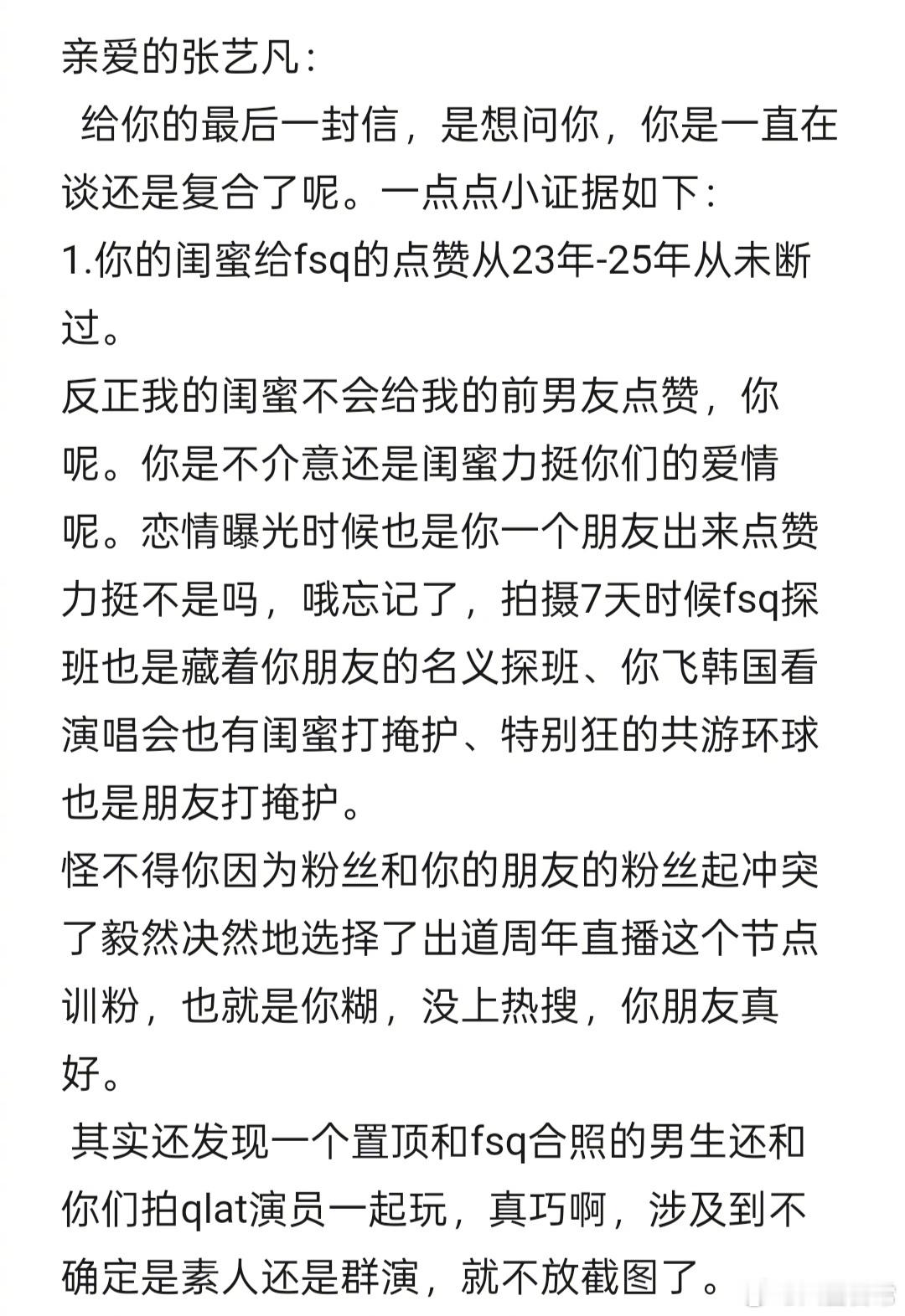 知道后援会为啥突然半夜发张艺凡单身声明了,原来是有粉丝扒张艺凡恋情证据