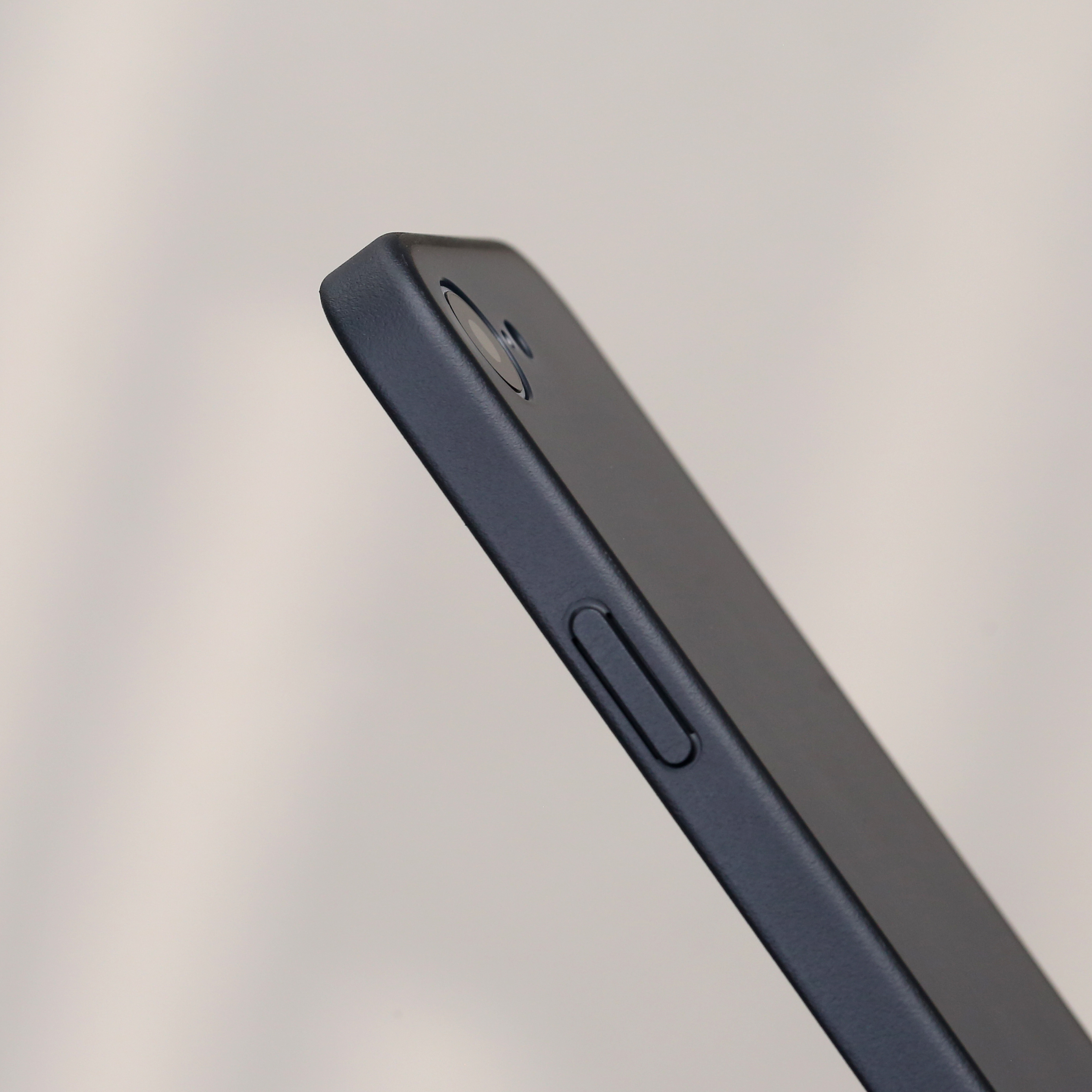 16e 013 平嵌壳已上库存熟悉的平嵌设计,摄像头、麦克风、闪光灯精孔包裹,优雅好看。整个背面平整舒服,放置于桌面也不会有跷跷板的情况。边框砂纹工艺,握持体验更加舒服。经典的碳黑,还有新增的蓝色,沉稳大气,一共两款配色。磁吸款也在做货了,还需要再等等
