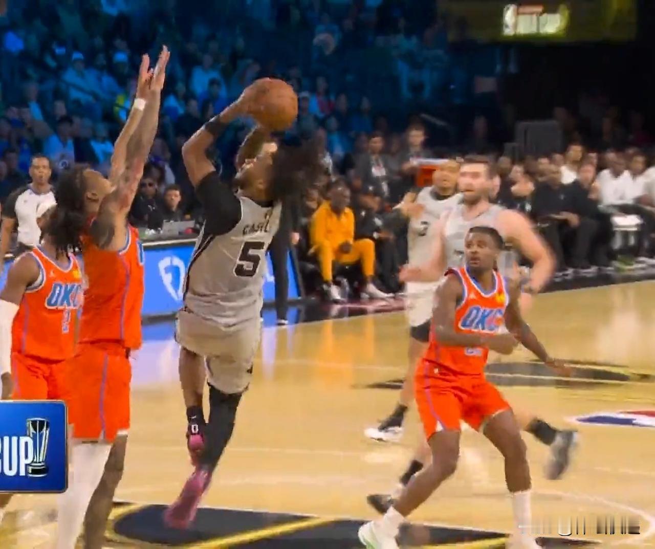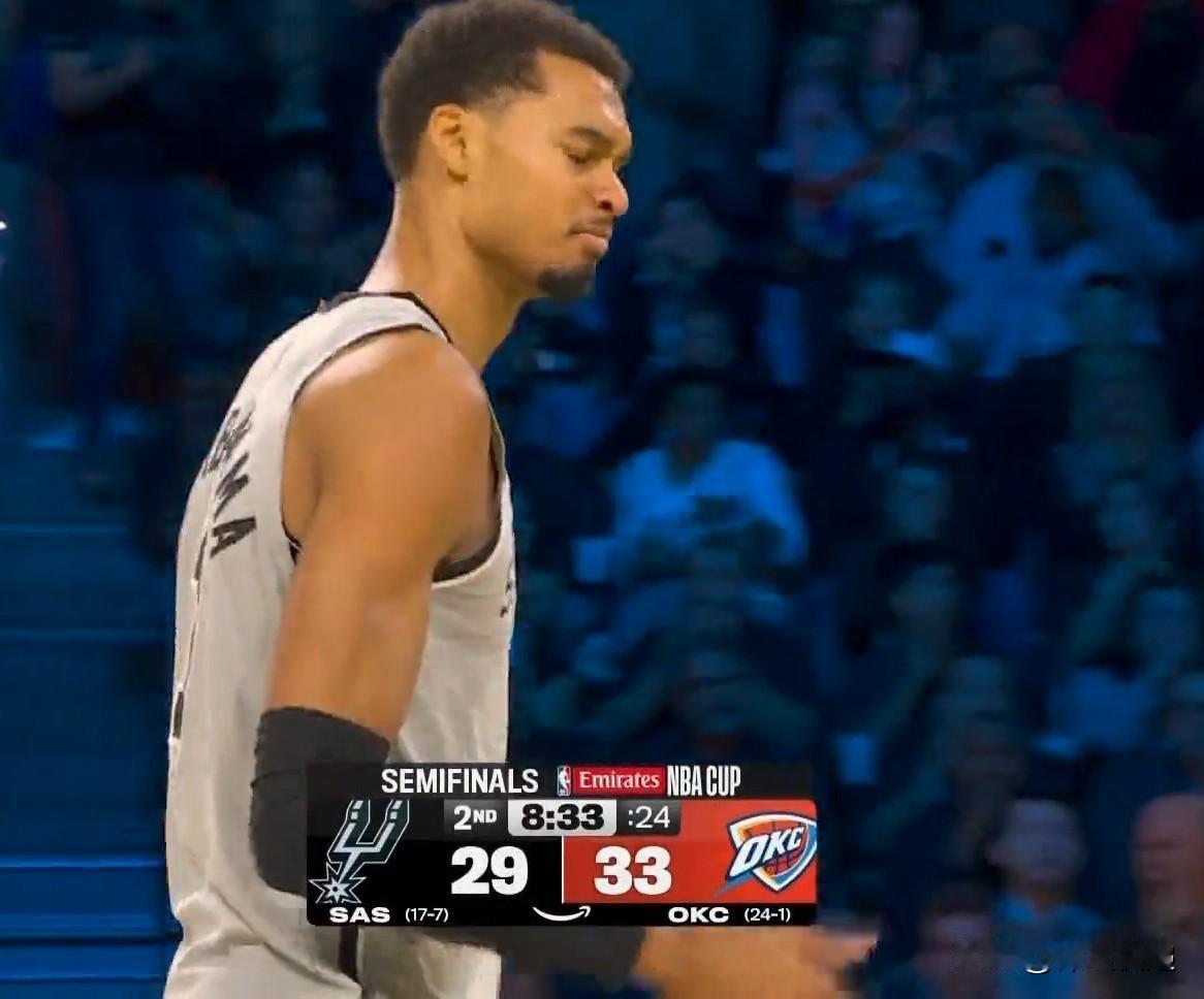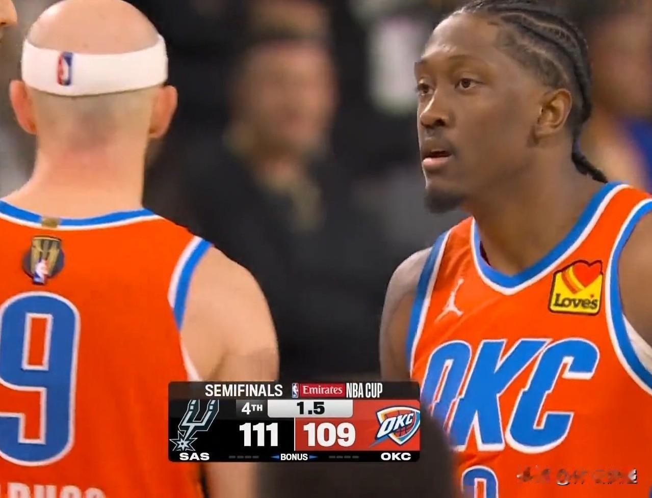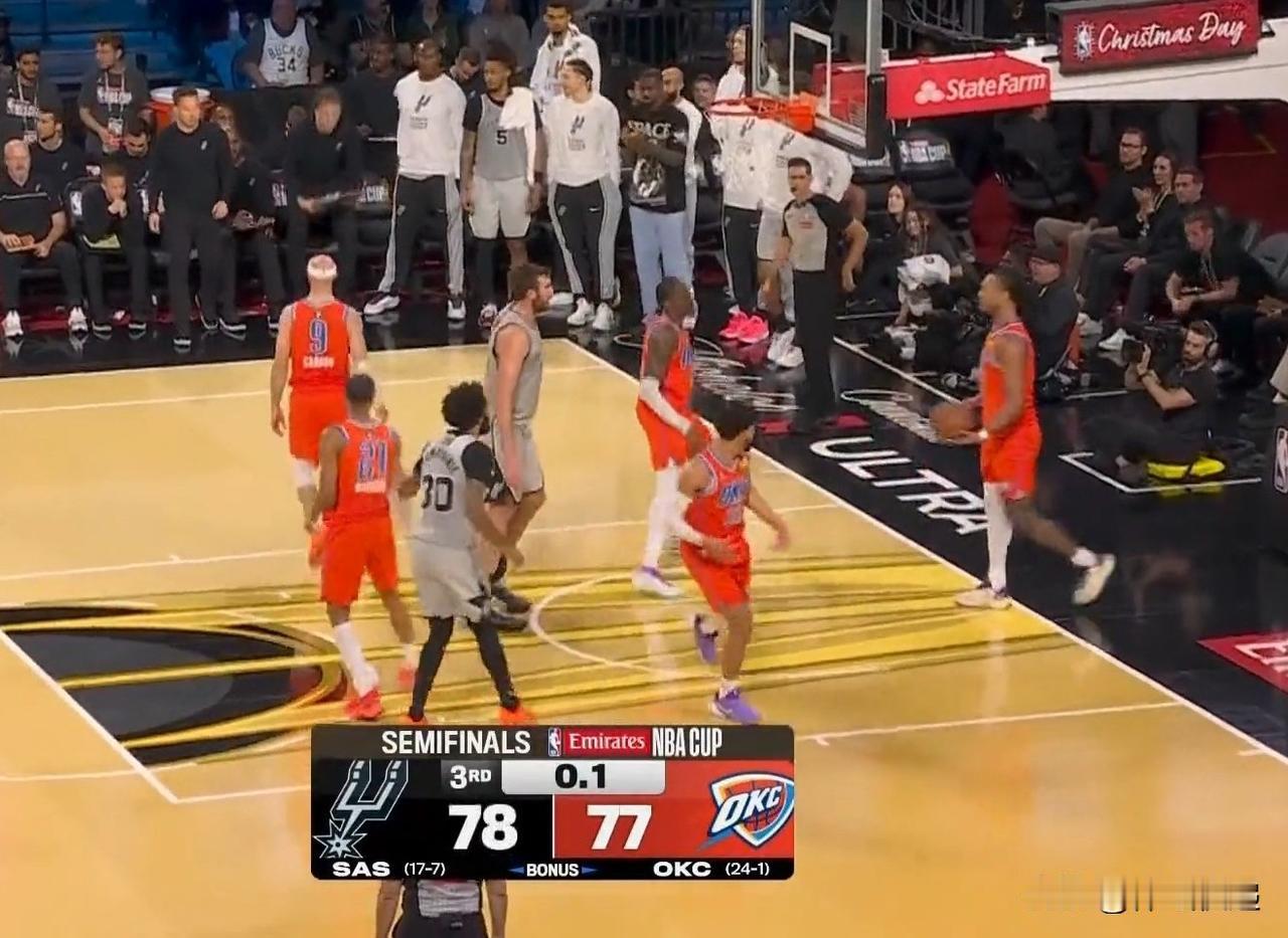 NBA杯半决赛马刺险胜雷霆。本场比赛也是两队伤病复出之战。雷霆哈腾多特复出,马刺文班亚马复出,正是兵强马壮的一场比赛。首发方面,雷霆派出最强阵容,而马刺方面文班亚马因医辽组上场时间要求未能进入首发。首节比赛,雷霆打的更加游刃有余,在攻防两端更加有效,首节结束以31:20领先。次节文班亚马登场,将分差缩小到个位数。雷霆暂停后再次拉开分差。文班亚马登场后一波13:0,再次将分差缩小到个位数。半场结束,雷霆49:46继续领先。第三节开局,马刺反击内外开花,将比分反超,雷霆叫暂停。暂停回来,亚历山大内突外射缩小分差。马刺叫暂停。暂停回来马刺再次拉开分差。比赛末段,文班亚马下场休息,雷霆趁机缩小分差。三节结束马刺78:77将比分反超。第四节开局。文班亚马攻守两端贡献巨大,帮助马刺保持领先。雷霆反击内外开花追平比分,马刺叫暂停。暂停回来,双方各有进攻高潮,比分胶着。最后5分钟文班亚马上场。两队进入最终决战。比赛还有4分钟。文班亚马追平比分,亚历山大中投命中,马刺高炮台命中反超1分。雷霆暂停。暂停回来,文班亚马两罚中一,马刺领先2分。杰伦高炮台命中,文班亚马中投命中,继续领先1分。马刺两罚中1,领先2分。文班亚马遭侵犯,两罚全中,马刺领先4分。切特两罚全中,马刺领先两分。比赛结束还剩10秒,马刺领先3分。随后双方主教练斗智斗勇,连续暂停。全场比赛结束马刺111:109雷霆,2分险胜挺进决赛,将对阵纽约尼克斯。