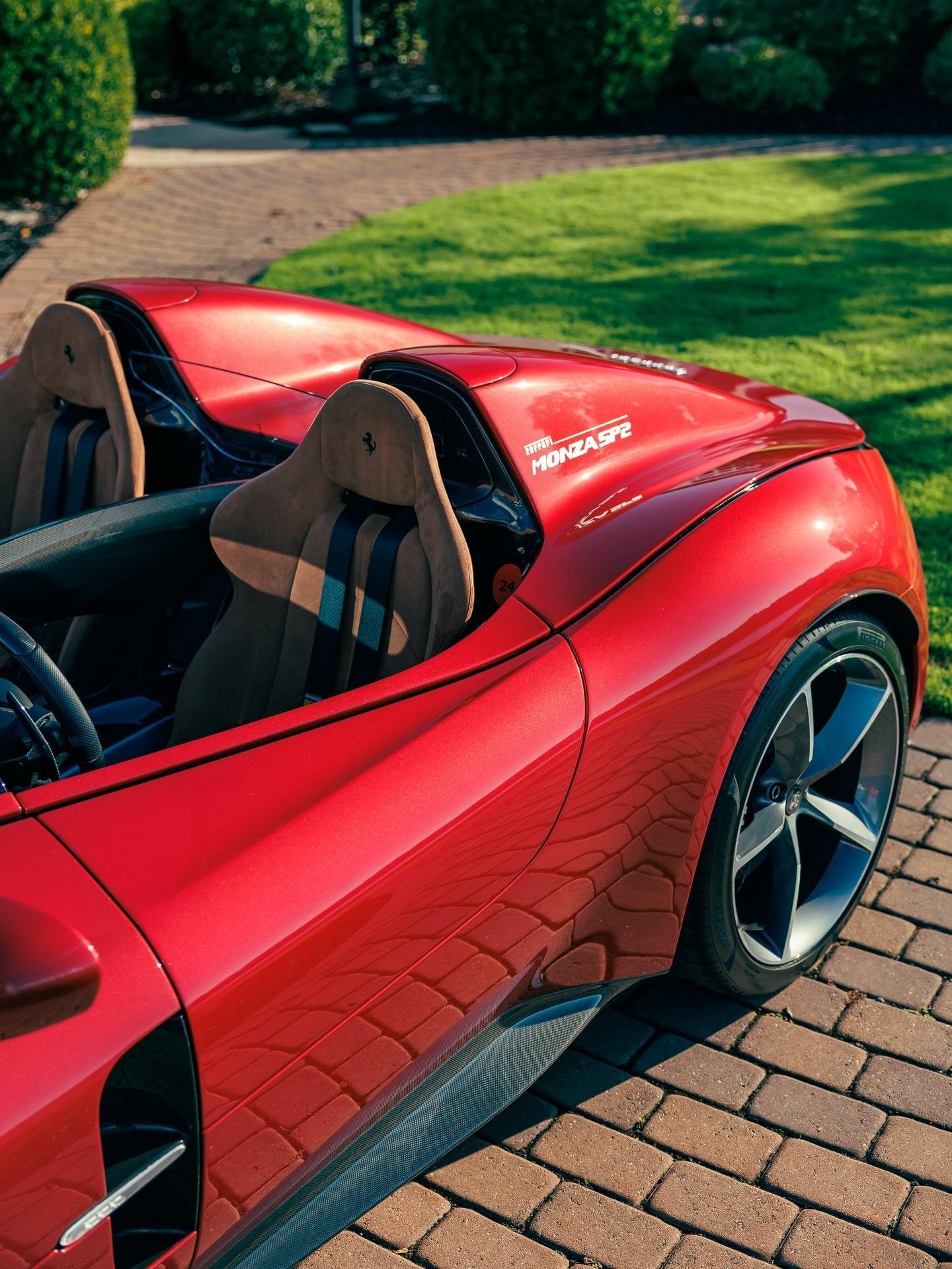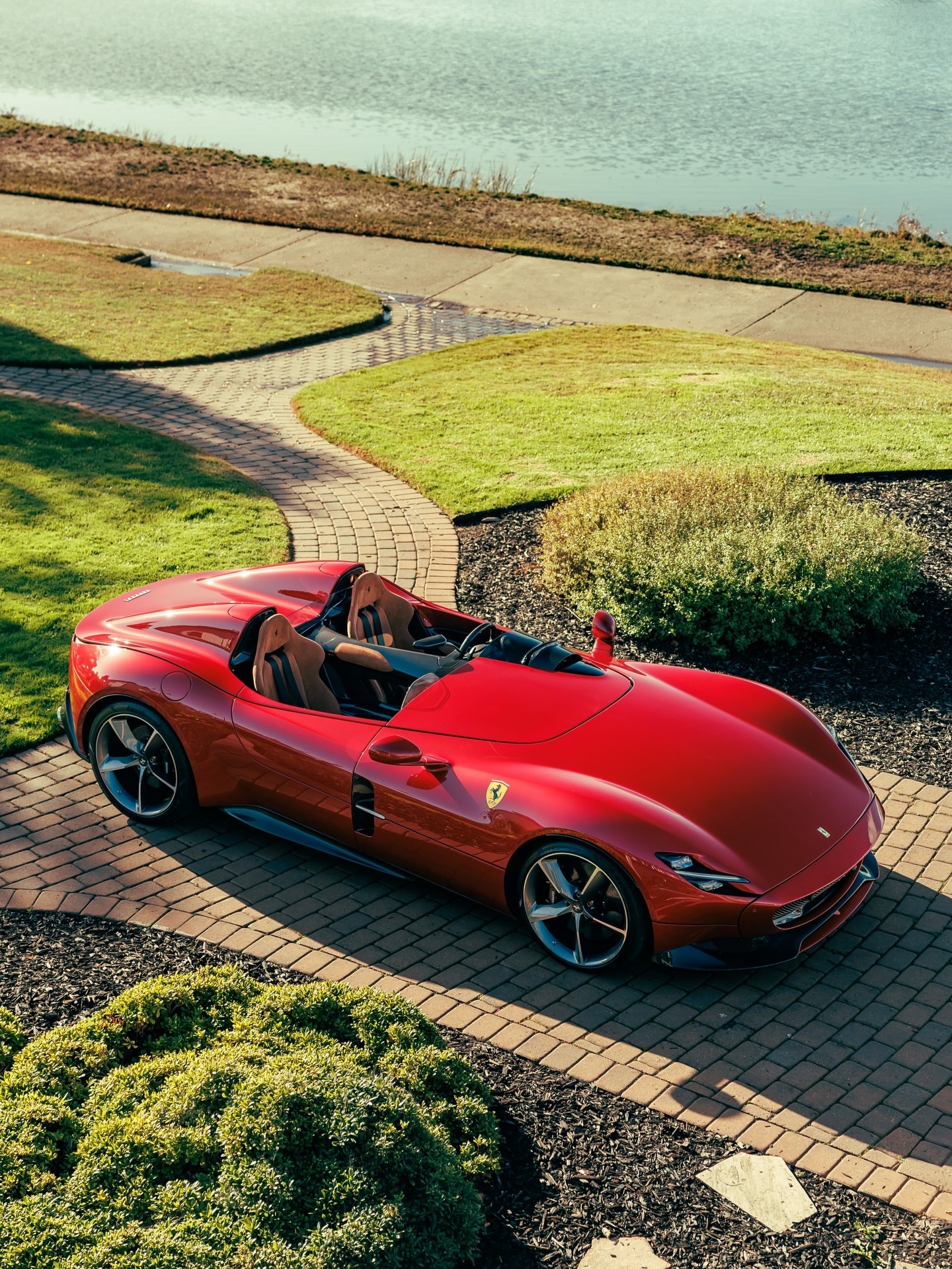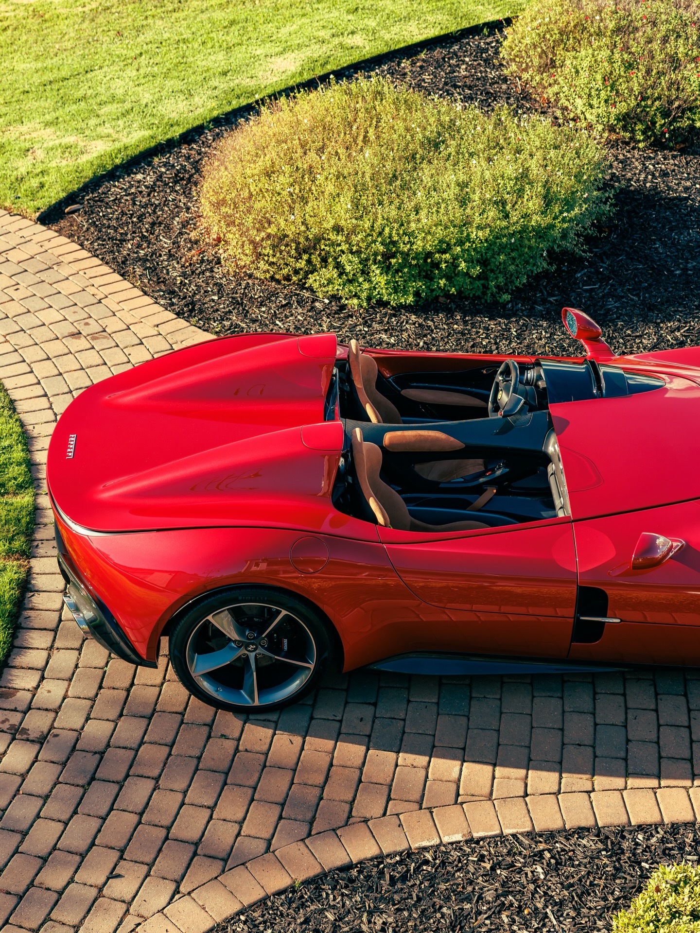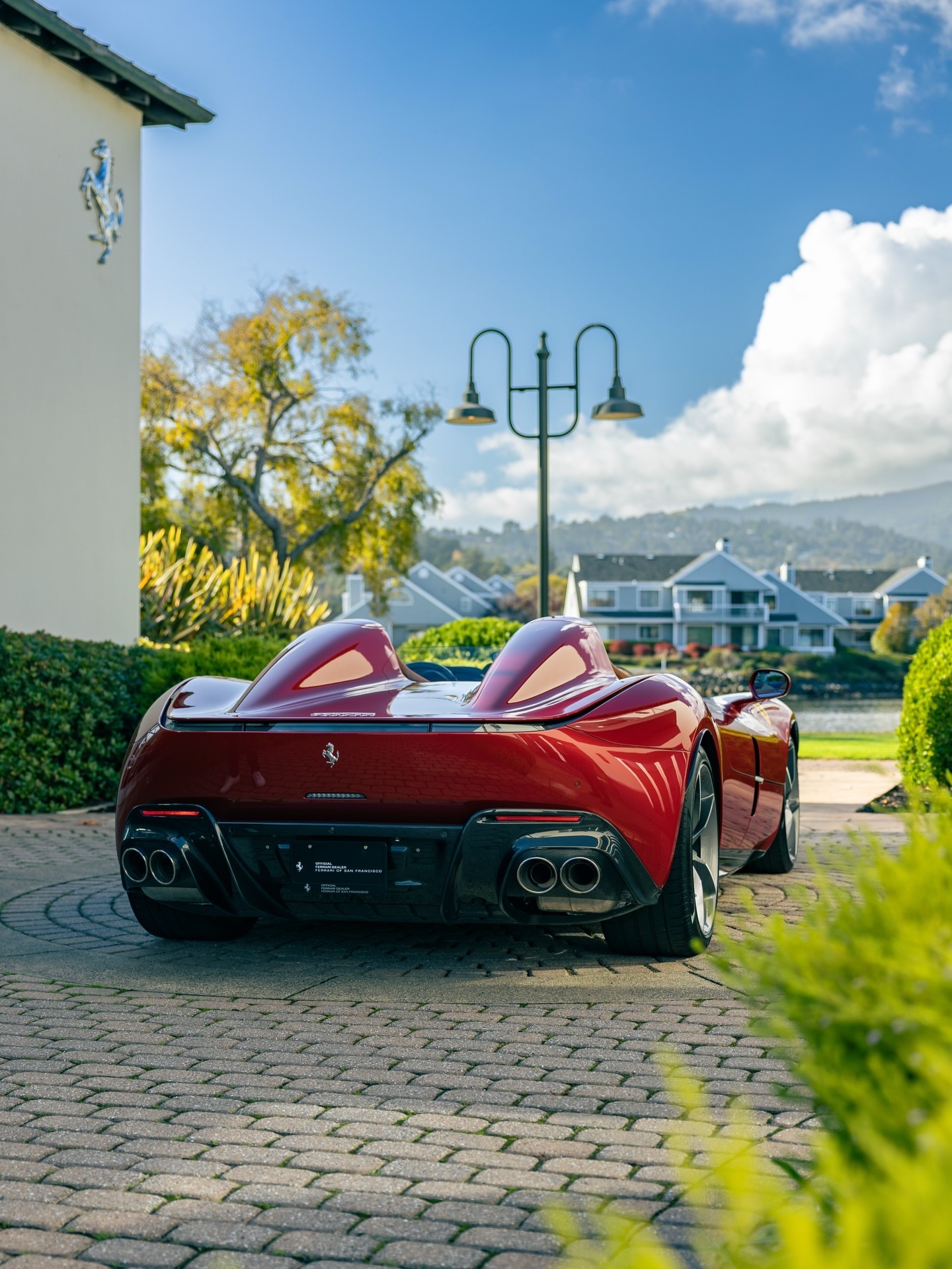 法拉利SP2 Monza法拉利限量版“Icona”系列中的一款罕见无顶双座“巴切塔”,灵感来源于20世纪50年代的赛车,配备809马力自然吸气V12引擎,独特的“虚拟挡风玻璃”以提高舒适性,以及碳纤维车身,可在3秒内完成0-60英里加速,最高时速可达300公里,总共仅生产了499辆SP1/SP2车型,专为独家收藏家打造。法拉利monzasp2老纪侃车豪车超跑