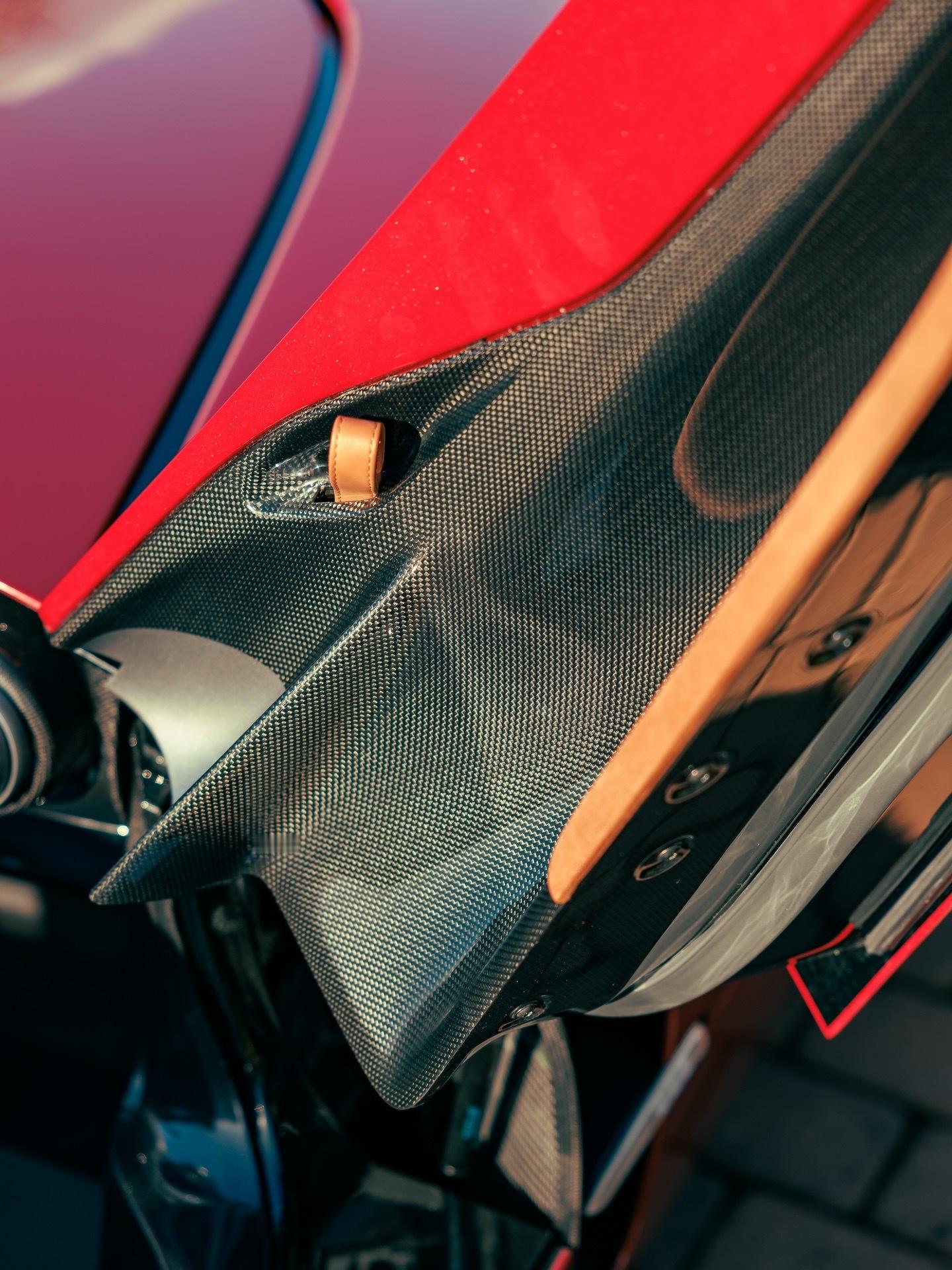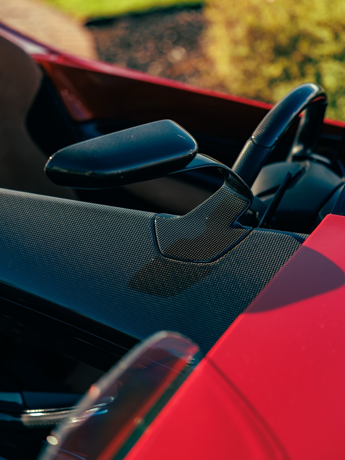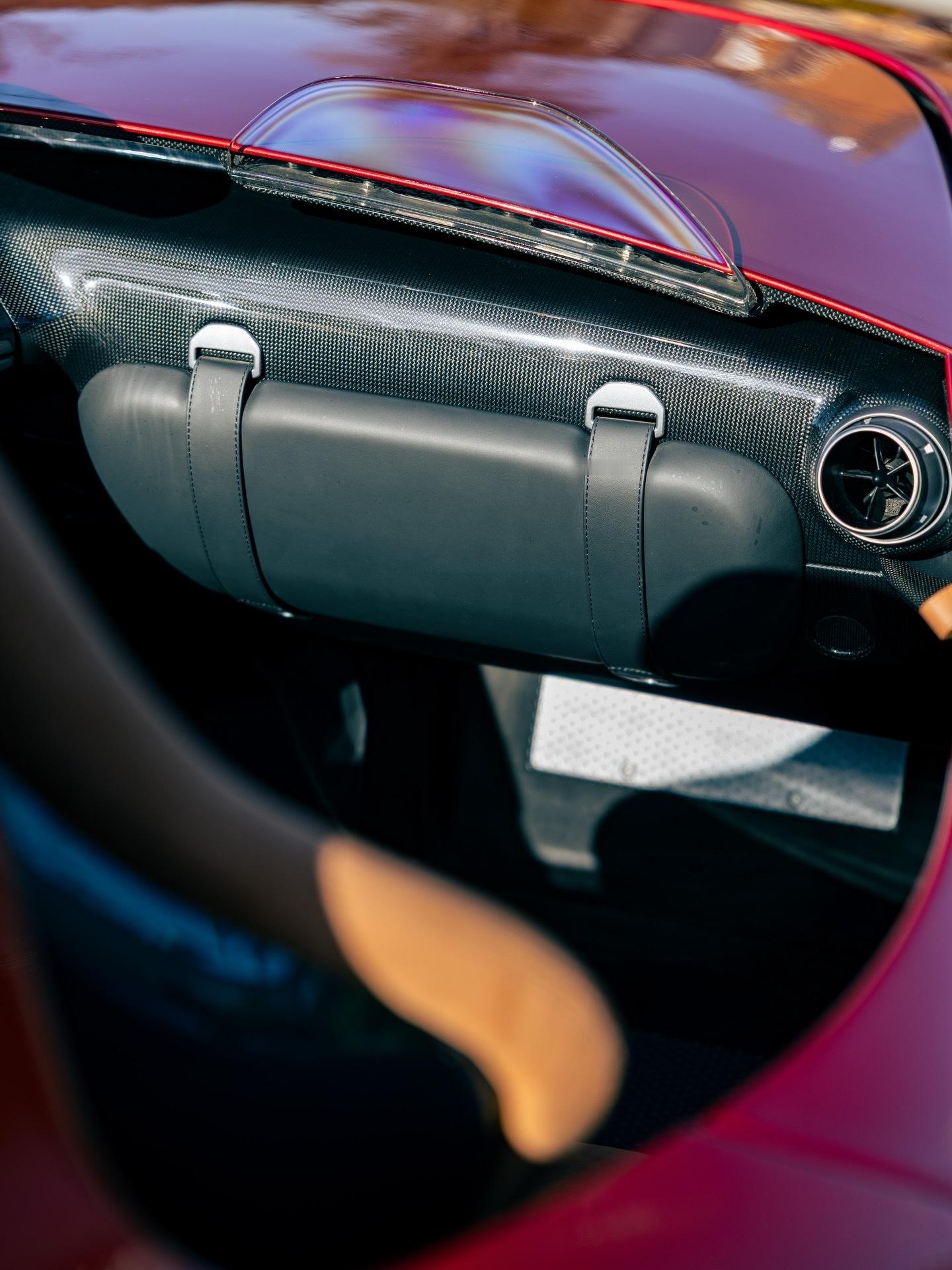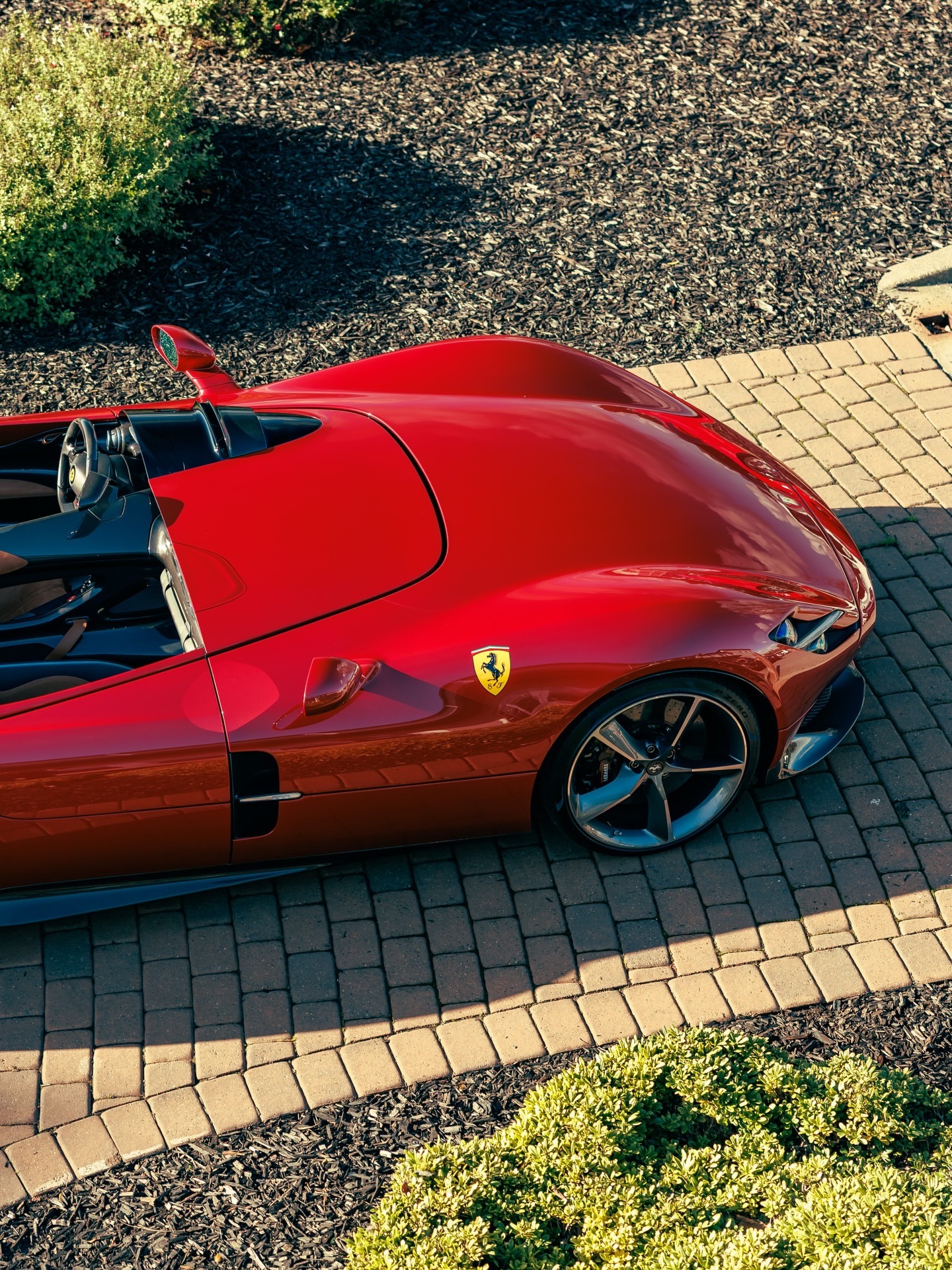 法拉利SP2 Monza法拉利限量版“Icona”系列中的一款罕见无顶双座“巴切塔”,灵感来源于20世纪50年代的赛车,配备809马力自然吸气V12引擎,独特的“虚拟挡风玻璃”以提高舒适性,以及碳纤维车身,可在3秒内完成0-60英里加速,最高时速可达300公里,总共仅生产了499辆SP1/SP2车型,专为独家收藏家打造。法拉利monzasp2老纪侃车豪车超跑