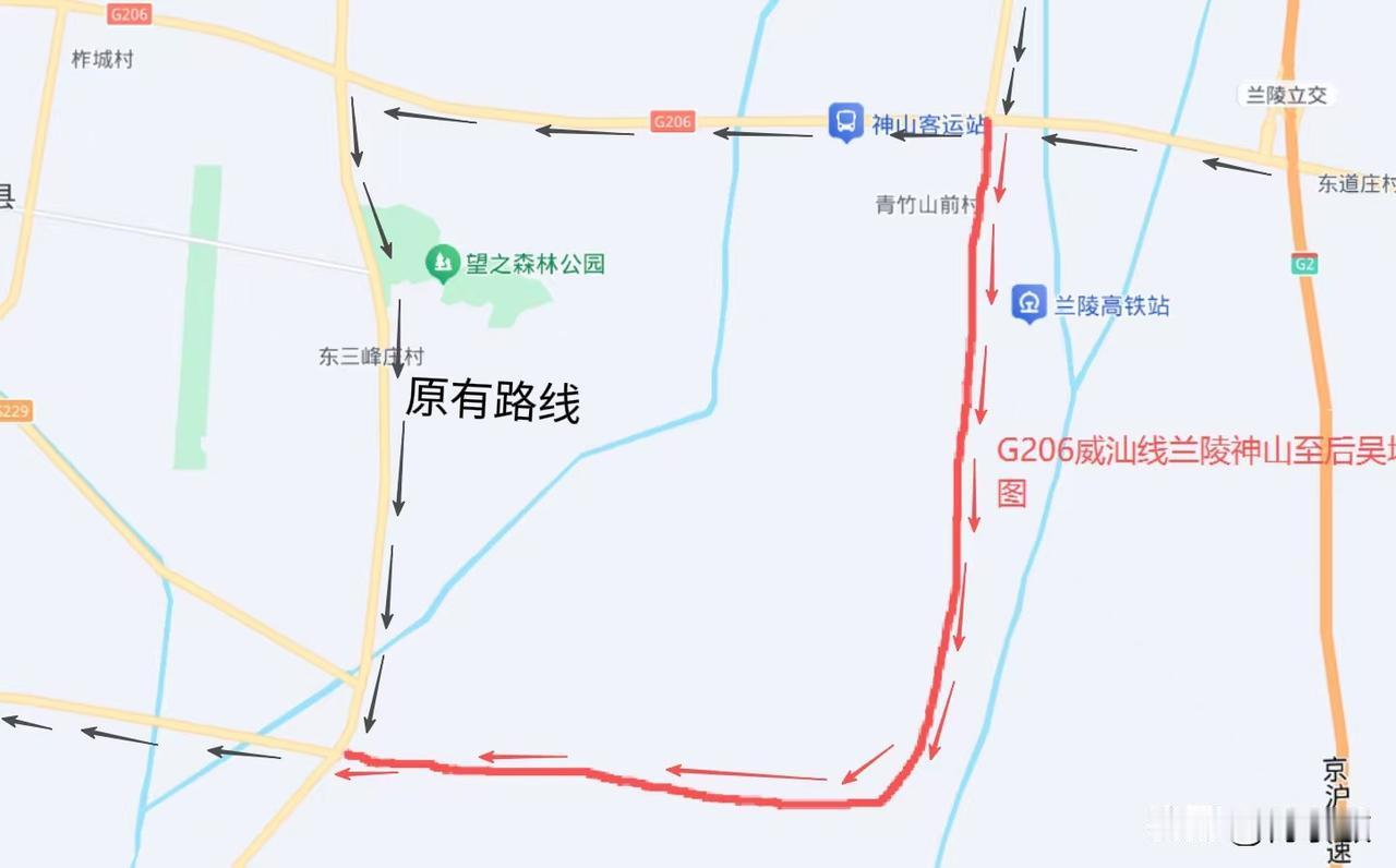 G206 国道威汕线兰陵神山至后吴坦段改建 项目起点为兰陵县神山镇 G206 与迎宾路的交叉口,终点为芦柞镇后吴坦村东北侧的 G206 与 S229 交叉口 该项目全长约12.157 公里,采用一级公路技术标准建设,设计速度为 80 公里 / 小时。 G206 威汕线兰陵神山至后吴坦段改建工程意义重大。其一,优化区域路网结构,升级为一级公路后消除原有通行瓶颈,提升干线道路通行效率,串联支线形成高效交通网络。其二,强化公铁联运,路线紧邻兰陵高铁站,畅通高铁站与周边乡镇的连接,完善综合交通体系。其三,带动沿线神山镇、磨山镇等乡镇发展,改善货物运输条件,助力特色产业对外流通,吸引投资促进产业升级。其四,便利沿线群众出行,缩短城乡时空距离,推动城乡资源共享与融合发展,为县域城镇化建设提供坚实交通支撑。