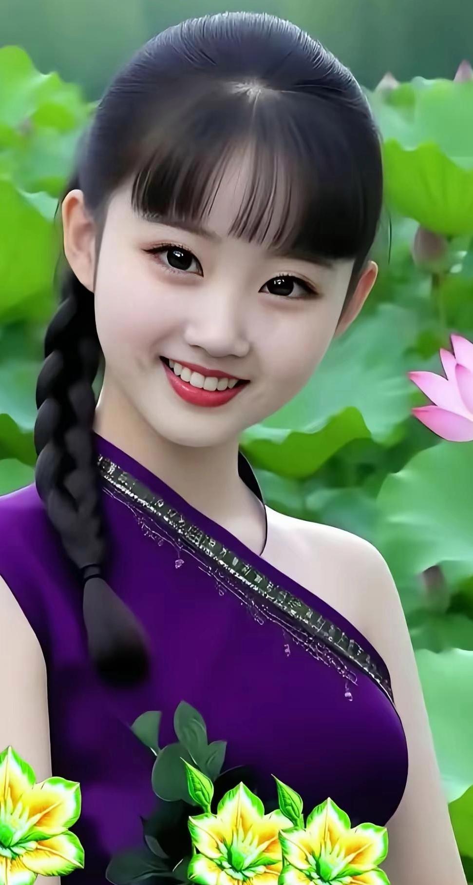 长发飘飘,笑靥如花。